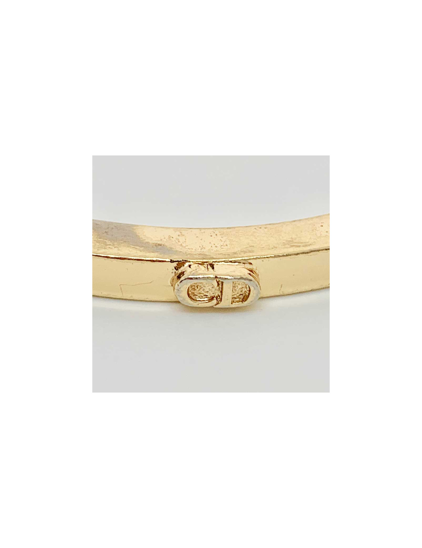A porter seul ou cumulé à d'autres bracelets. Bracelet rigide en métal doré de la Maison CHRISTIAN DIOR. Les initiales CD se situent sur le pourtour, en relief. Bijou vintage datant de la période Gianfranco Ferré (années 80).