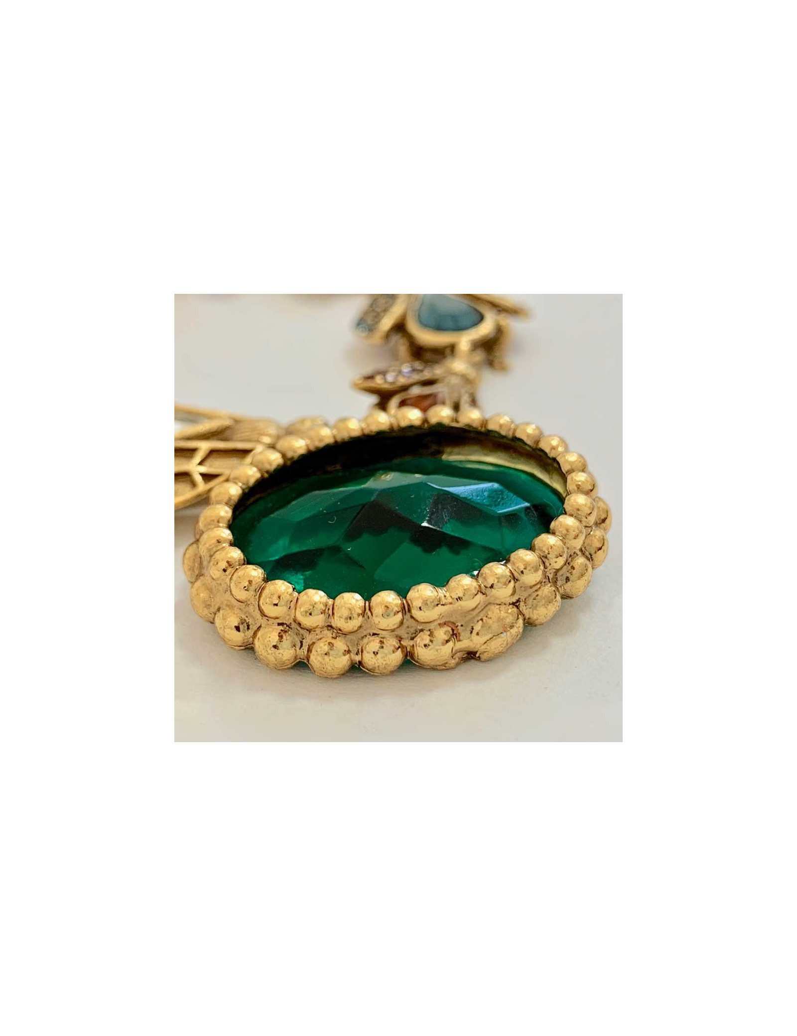 Il a également une pierre fantaisie facettée en résine vert transparent. Son fermoir est un fermoir en T.