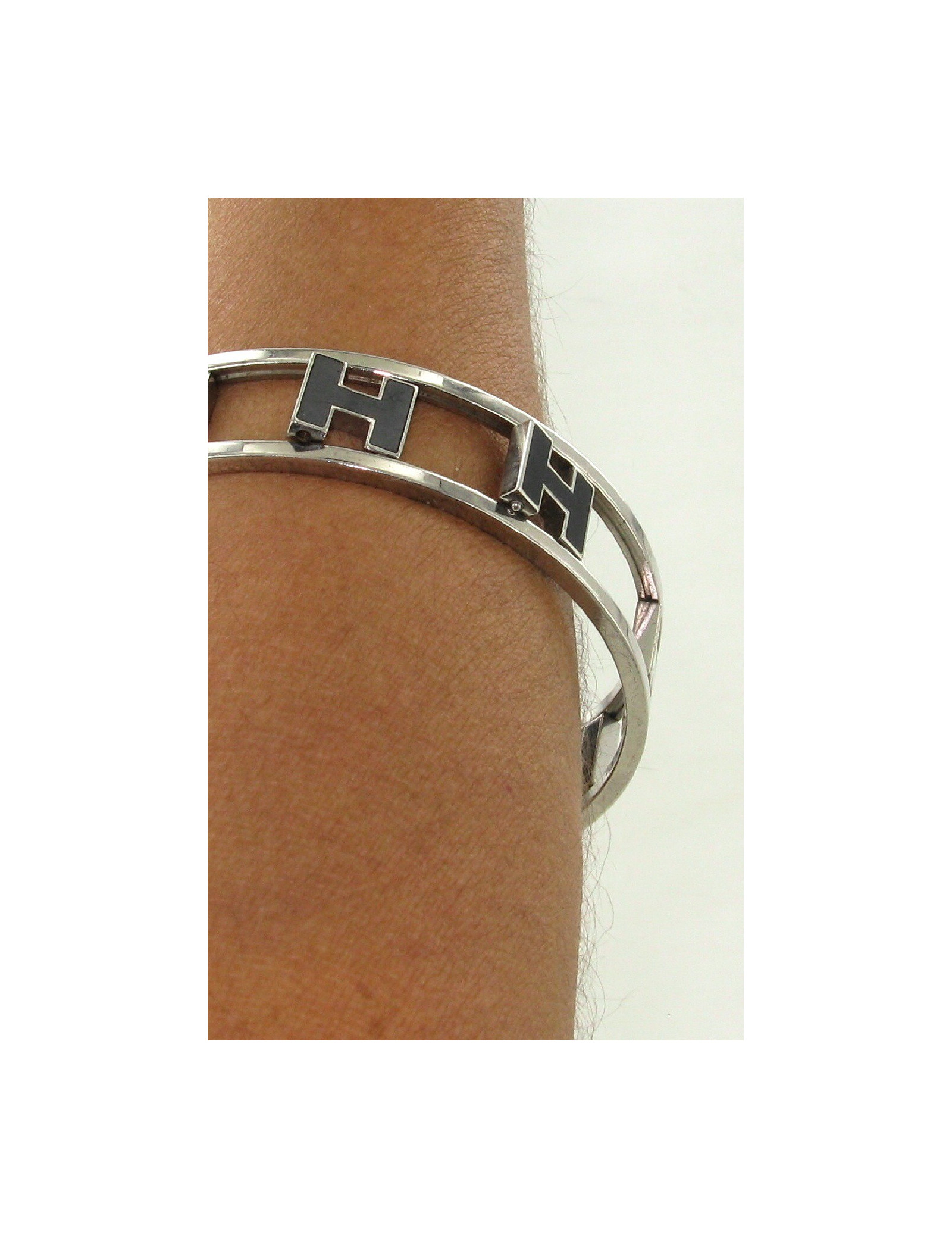 Bracelet HERMES H pivotant, acier et émail noir,très original.