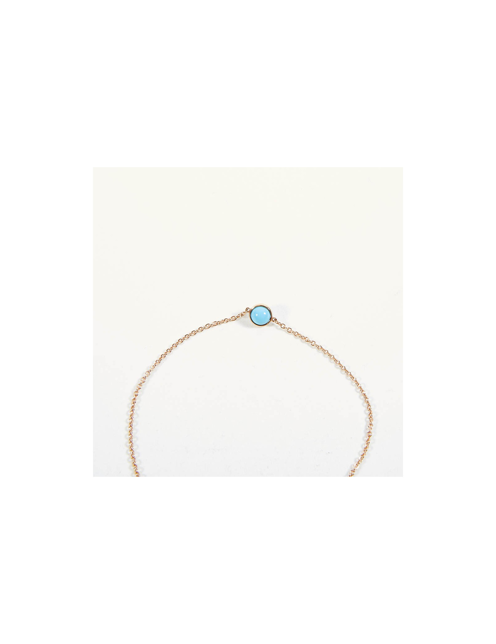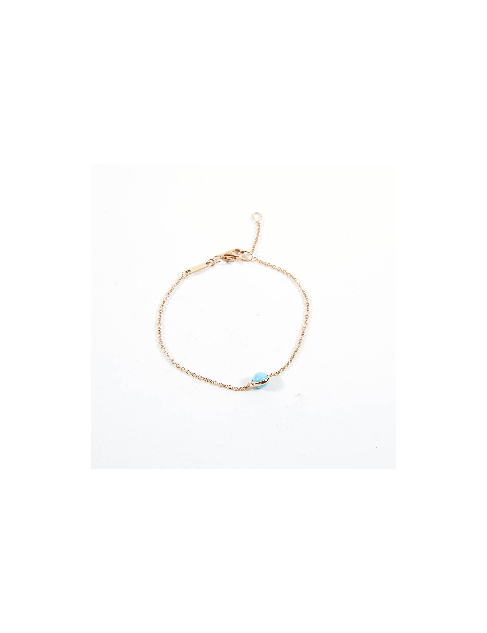 Il est neuf. en or rose; Il est serti d'une Turquoise stabilisée. Longueur de la chaine 16 cm au plus court et 18 cm au plus long.