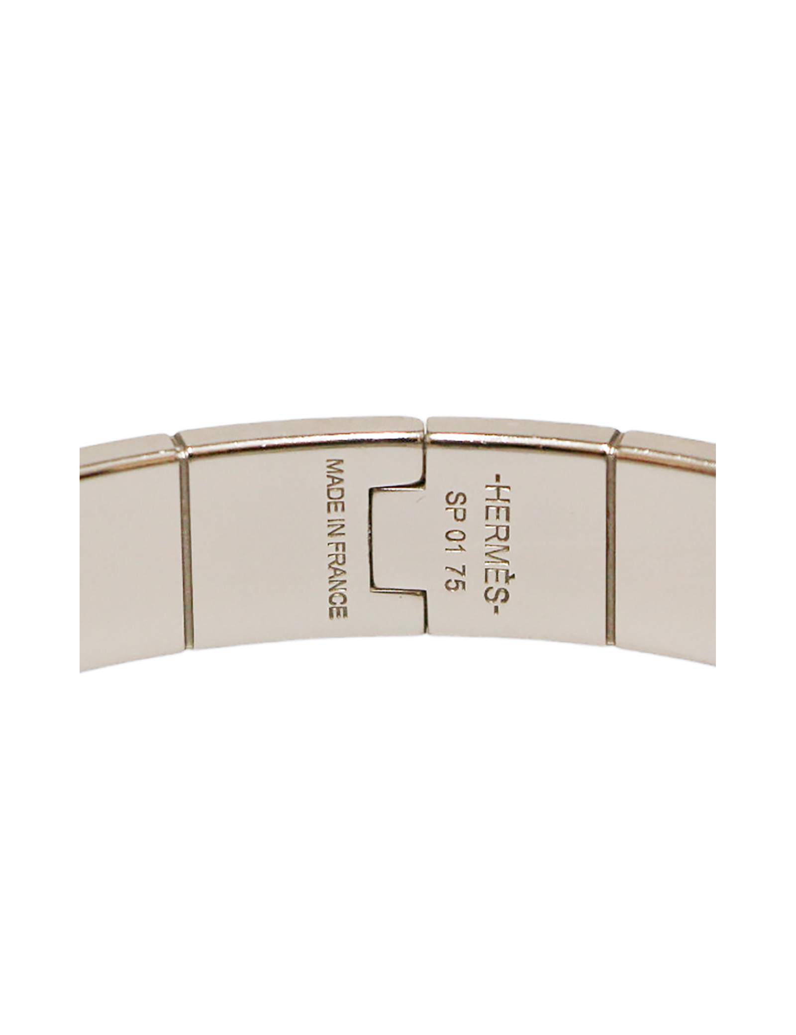 Nouveau Vendu BRACELETS/MANCHETTES Bracelet Hermès Ex-Libris petit modèle HERMES 40699 900,00 € Bracelet Hermès Ex-Libris argent massif Condition : très bon étatPays de fabrication : FranceModèle : Ex-LibrisMatière : argent massif 925/1000 , or rose 750/1000Couleur : argentDimensions : longueur 18 cm, pendentif 1.3 cmStamp : ouiBijouterie : argent massif Détails : modèle intemporel fermoir anneau bâtonnet Le + Valois Vintage Paris : livré dans sa... Voir