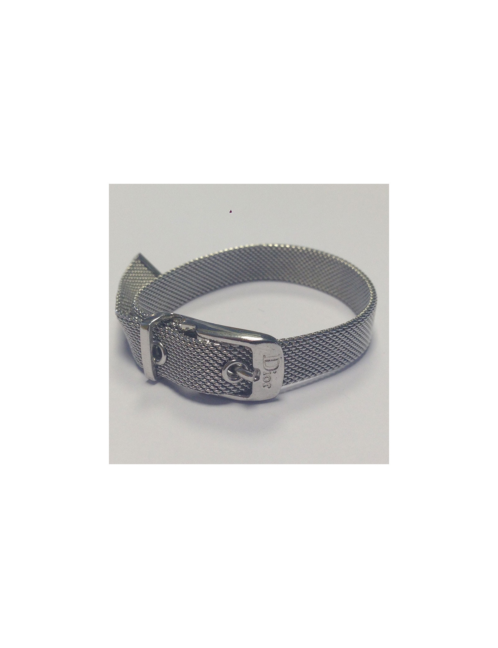 Parure Dior collier et bracelet en métal argenté. Fermoir ceinture à crans. En très bon état.