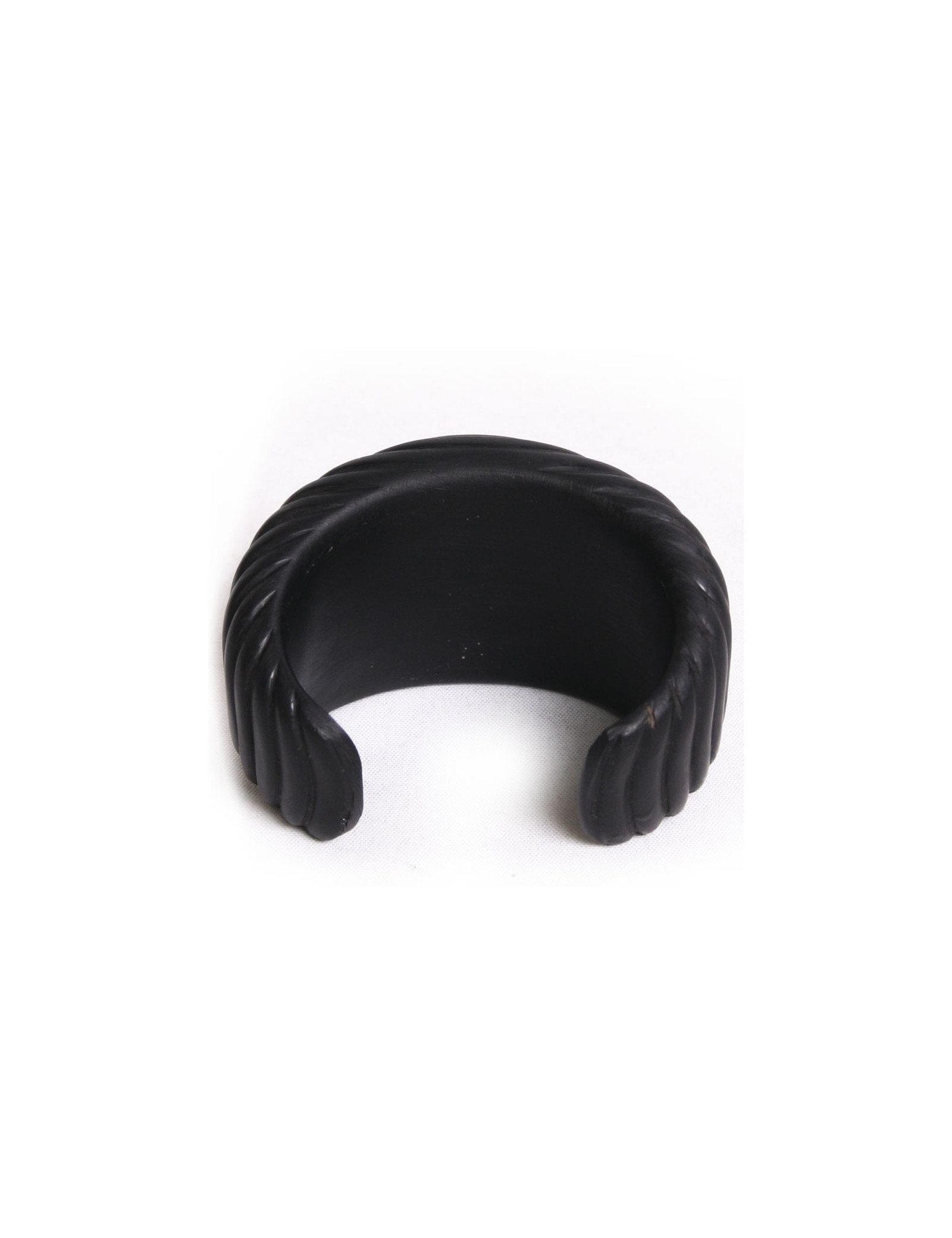 Manchette CHANEL en résine noire et au centre une demi-perle nacrée blanche. la signature est gravée "Chanel" sur le côté, en très bon état.