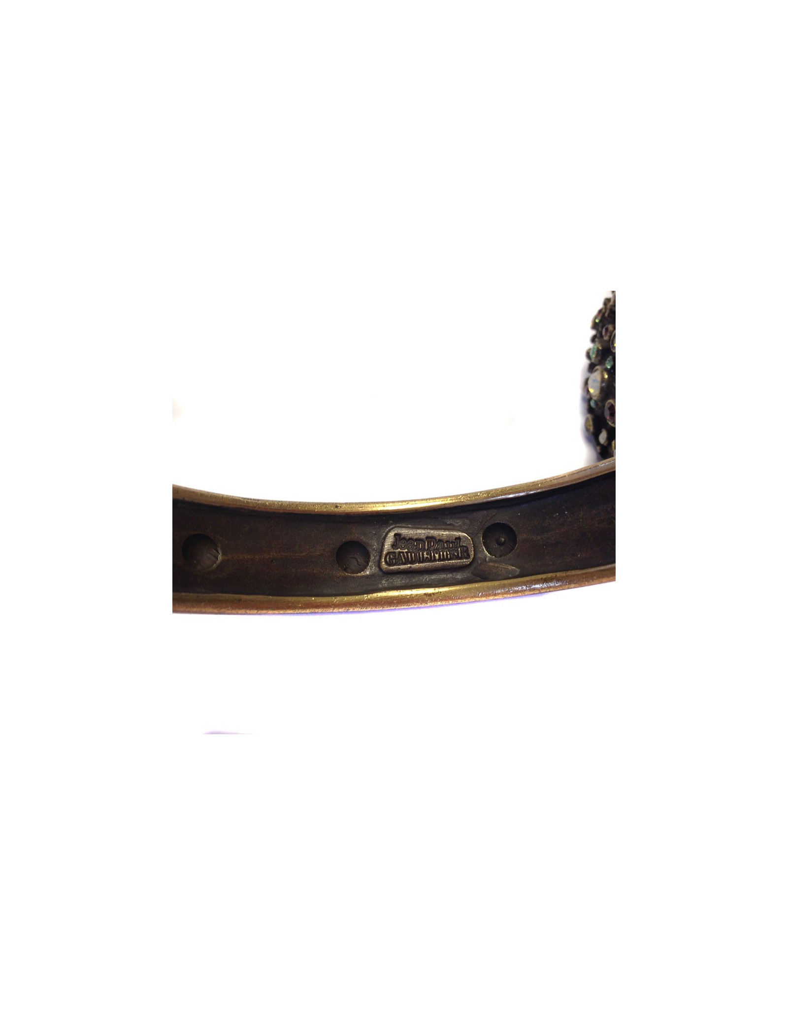 Deux ravissants bracelets Jean Paul Gaultier, en métal couleur cuivre, sertis de strass et perles de couleurs. En très bon état.