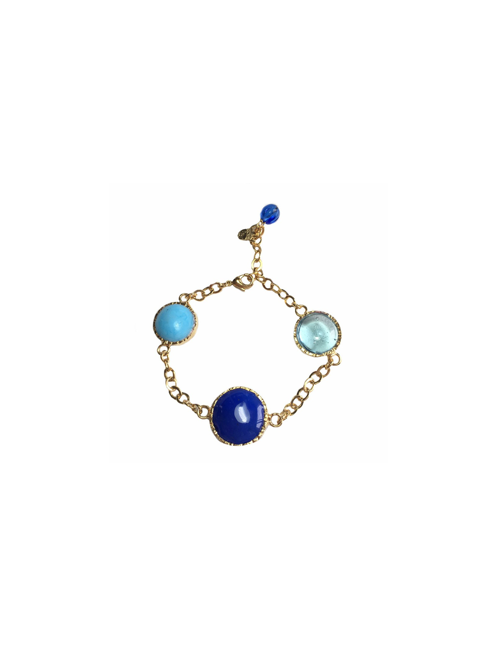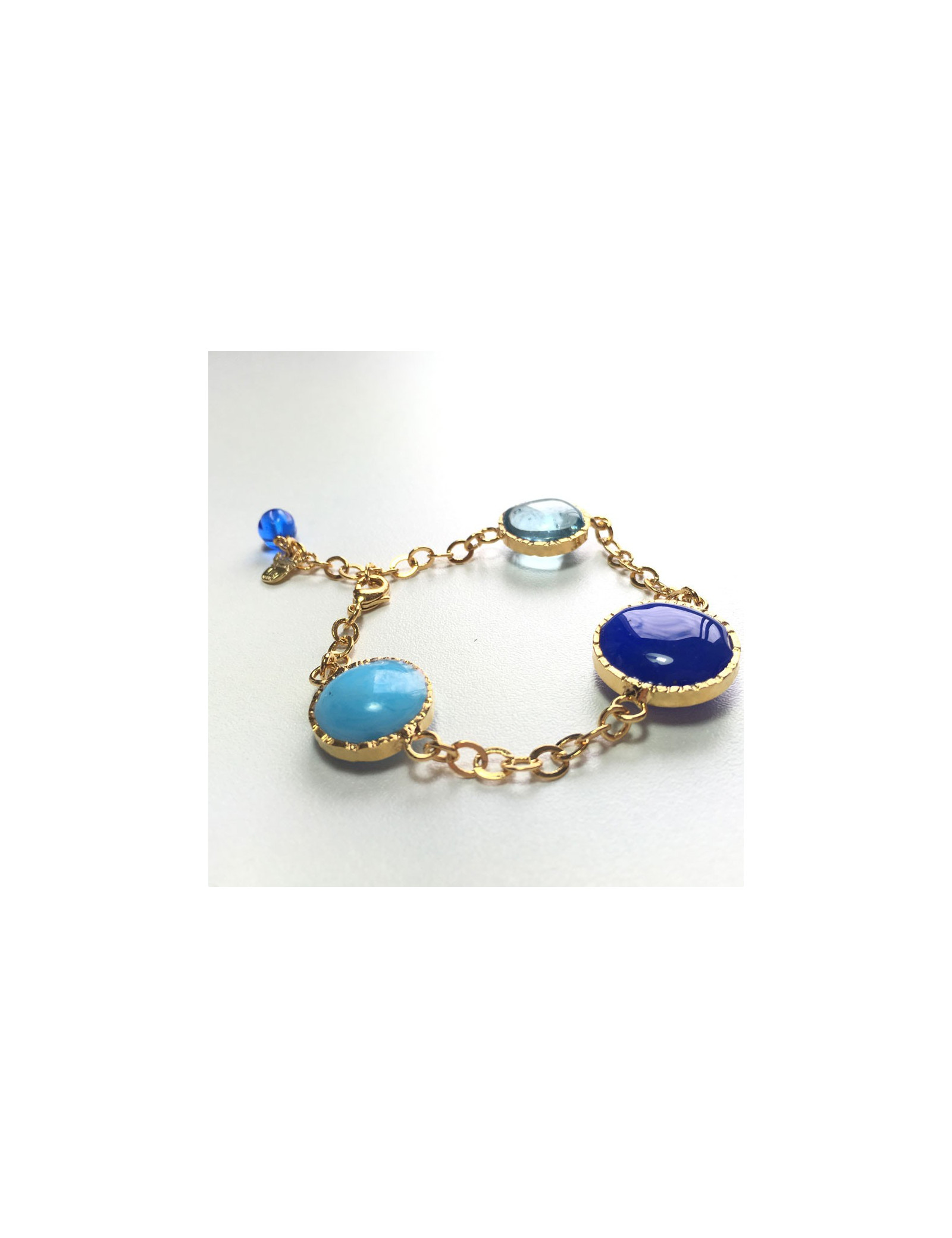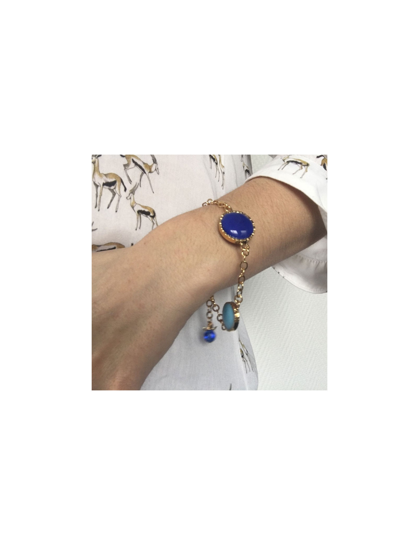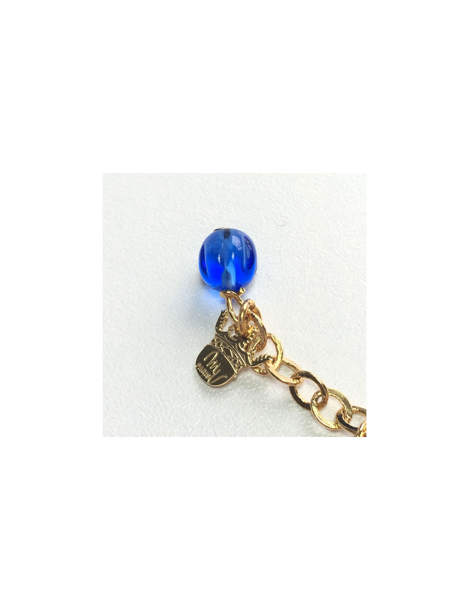 Bracelet MARGUERITE de VALOIS chaîne en métal doré et pâte de verre bleue