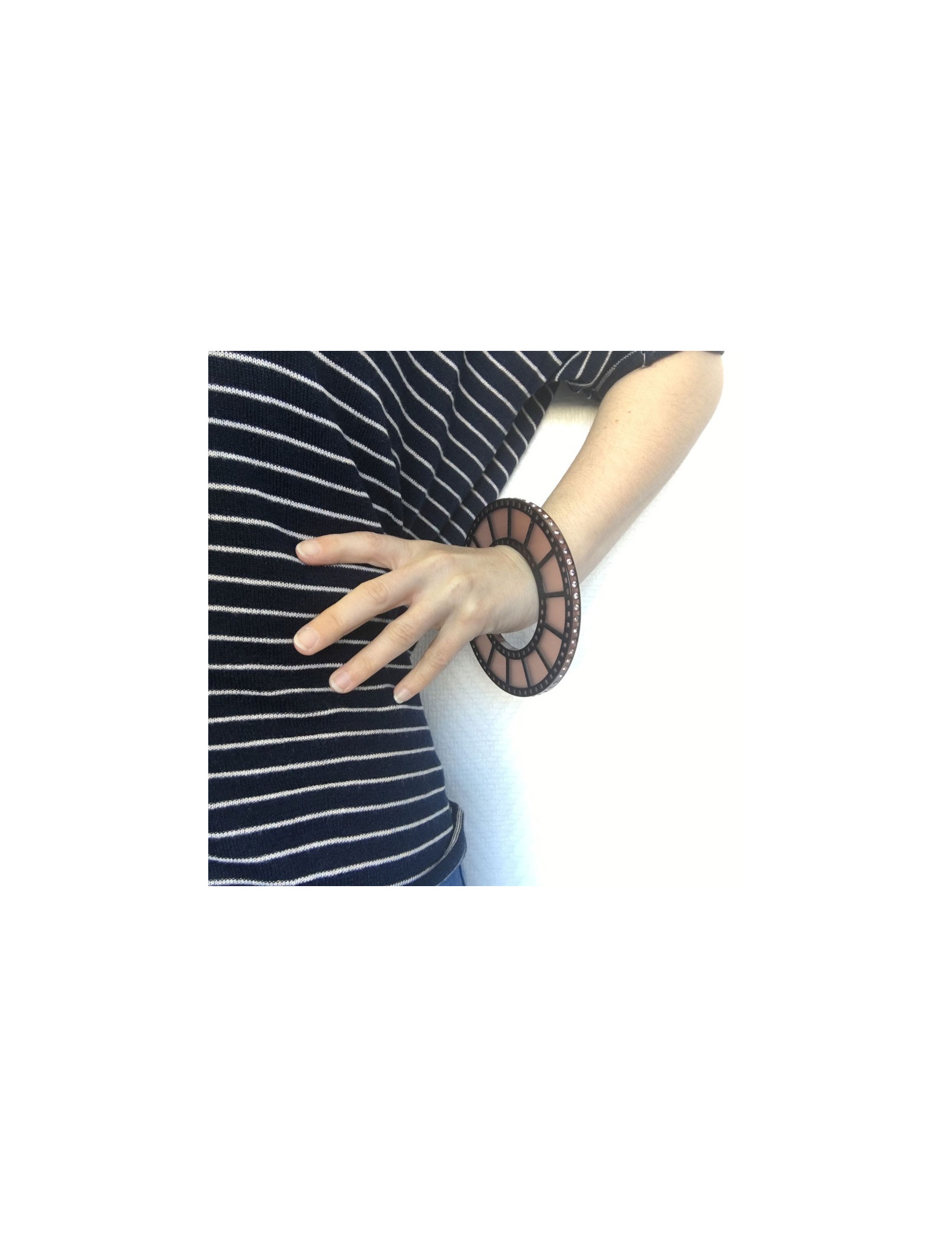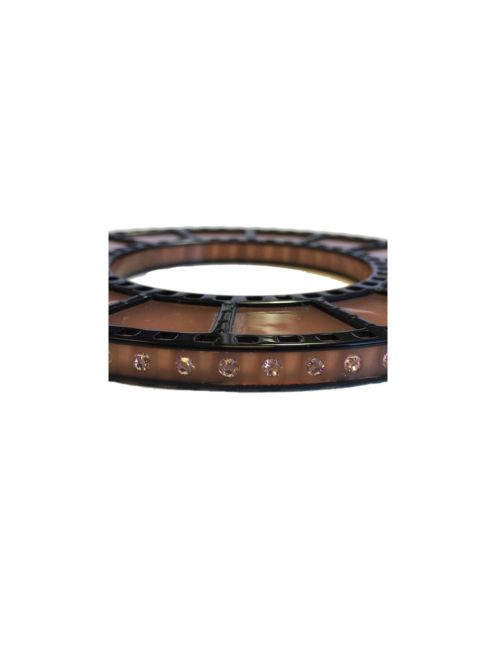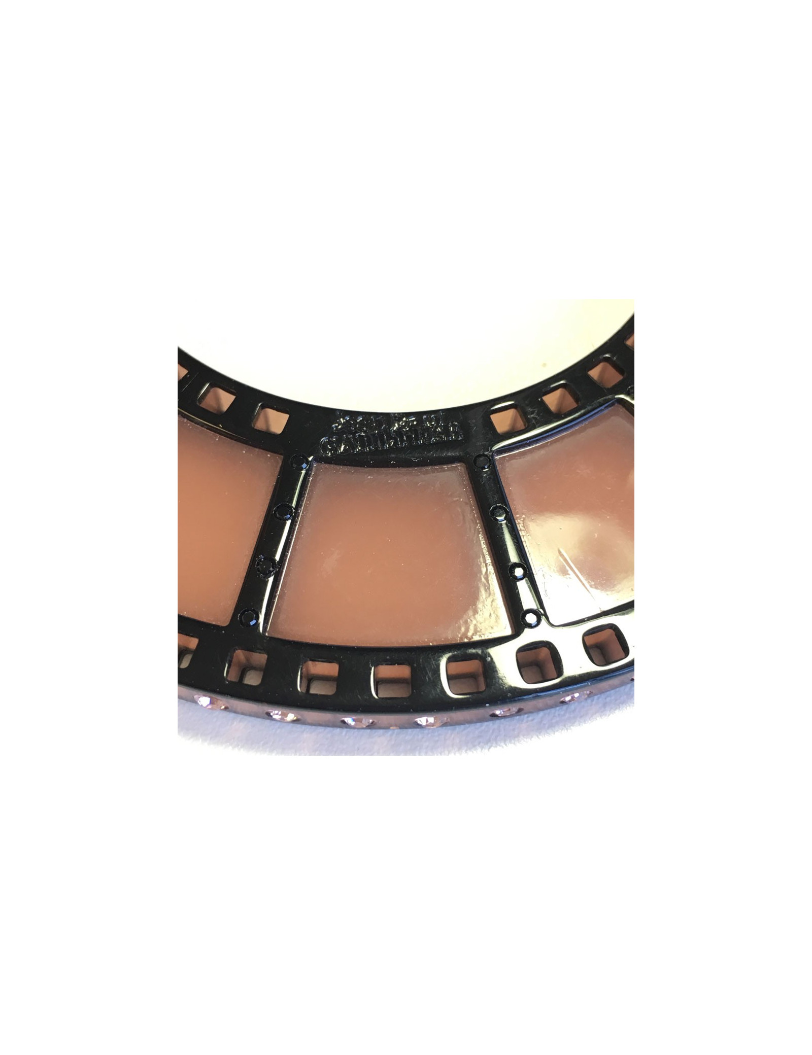 Ce bijou représente une bande de film, serti sur les bords par des brillants rose.