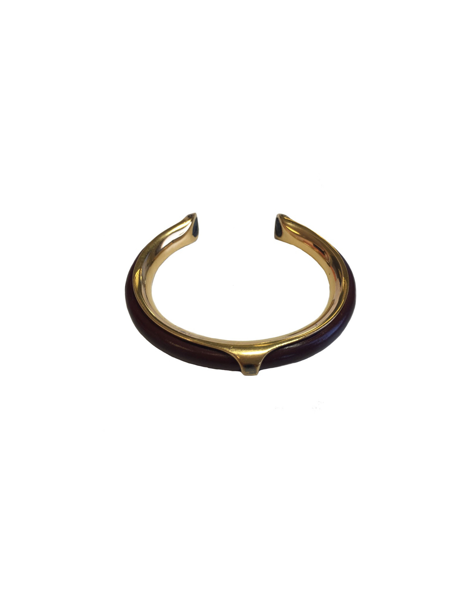 vintage! très élégant bracelet jonc HERMES en cuir rouge H et plaqué or. À porter tous les jours.