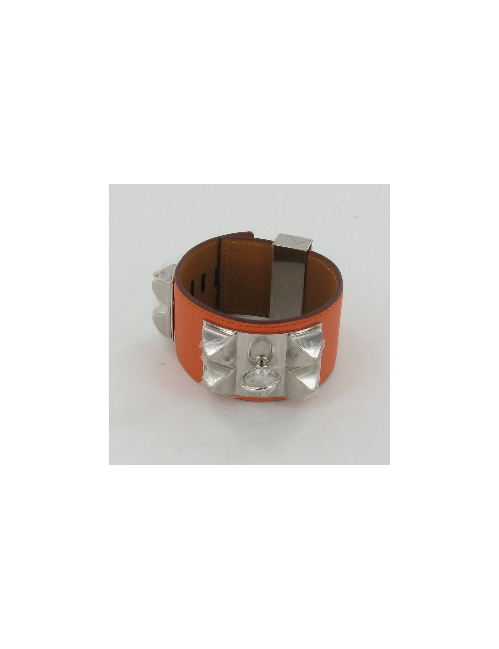 Sublime bracelet Collier de Chien en cuir swift couleur mangue HERMES.
