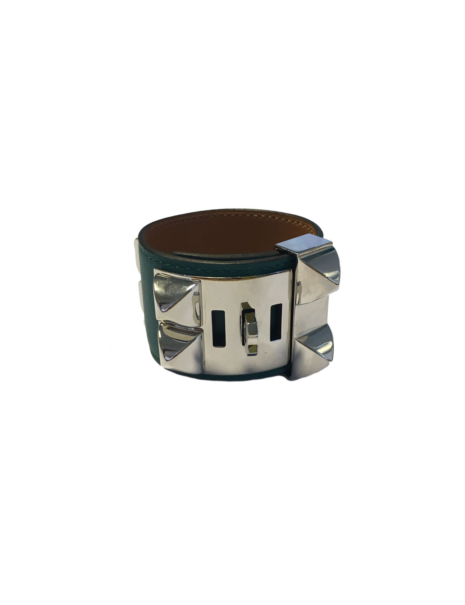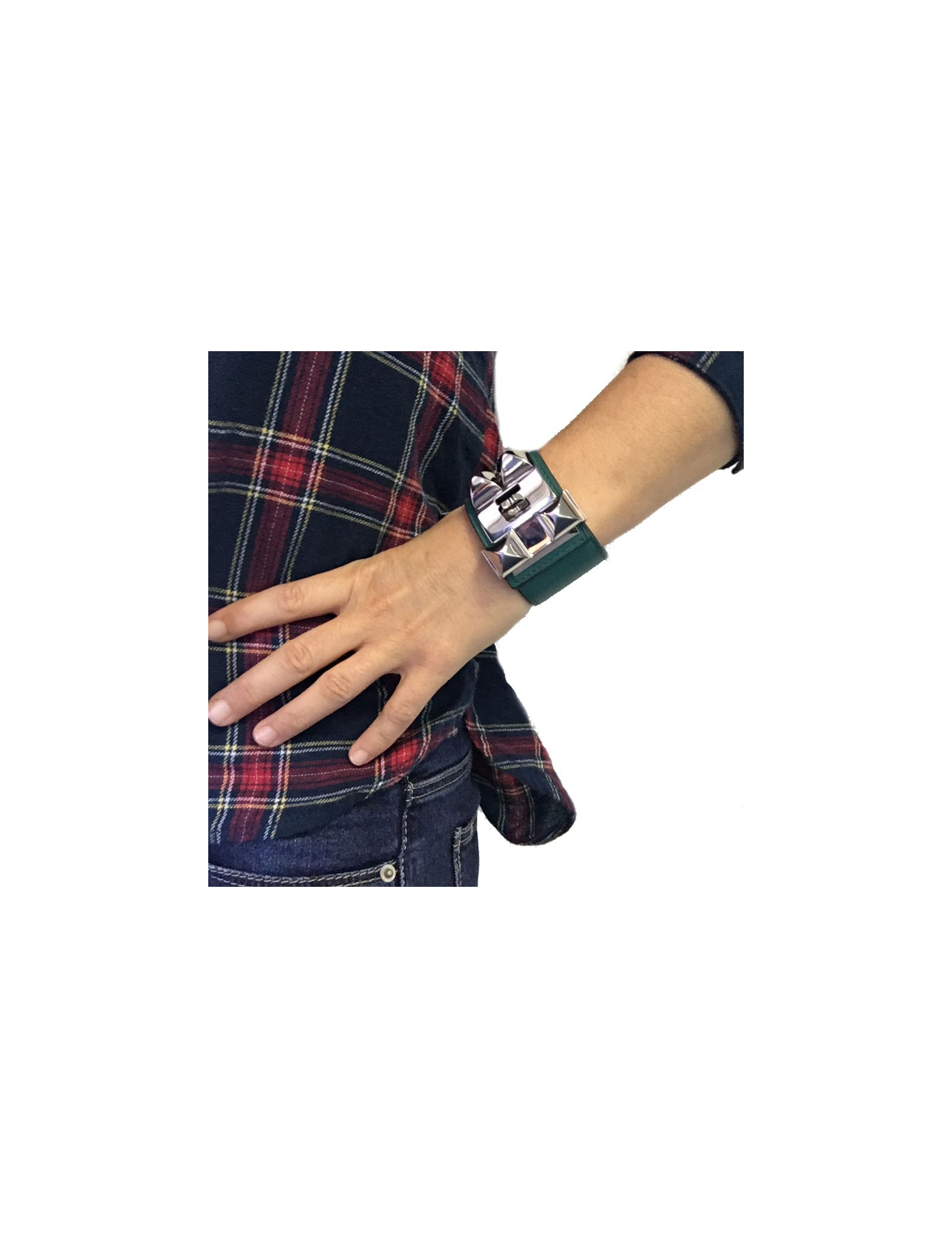 Manchette CDC HERMES en veau bleu paon accastillage argent palladié