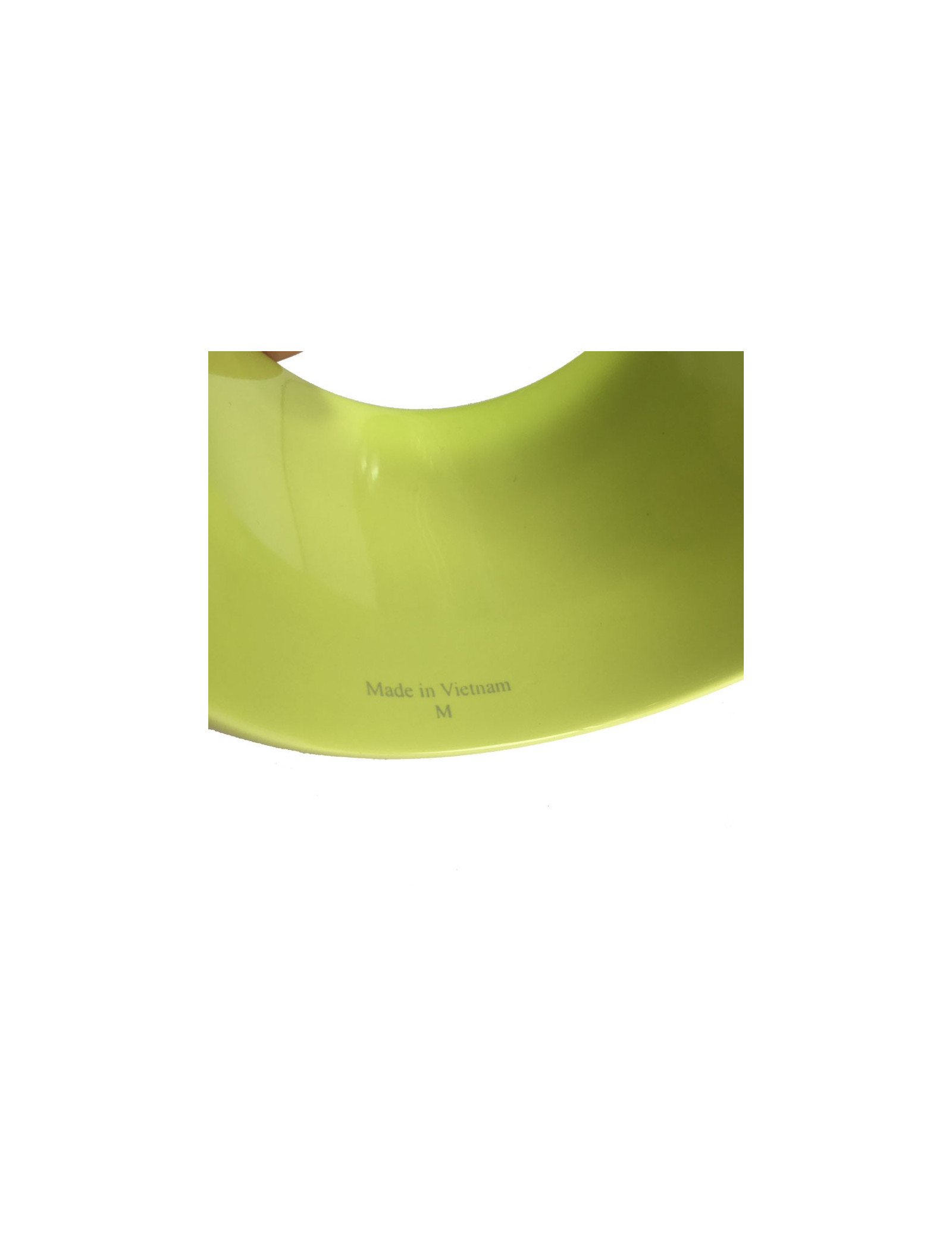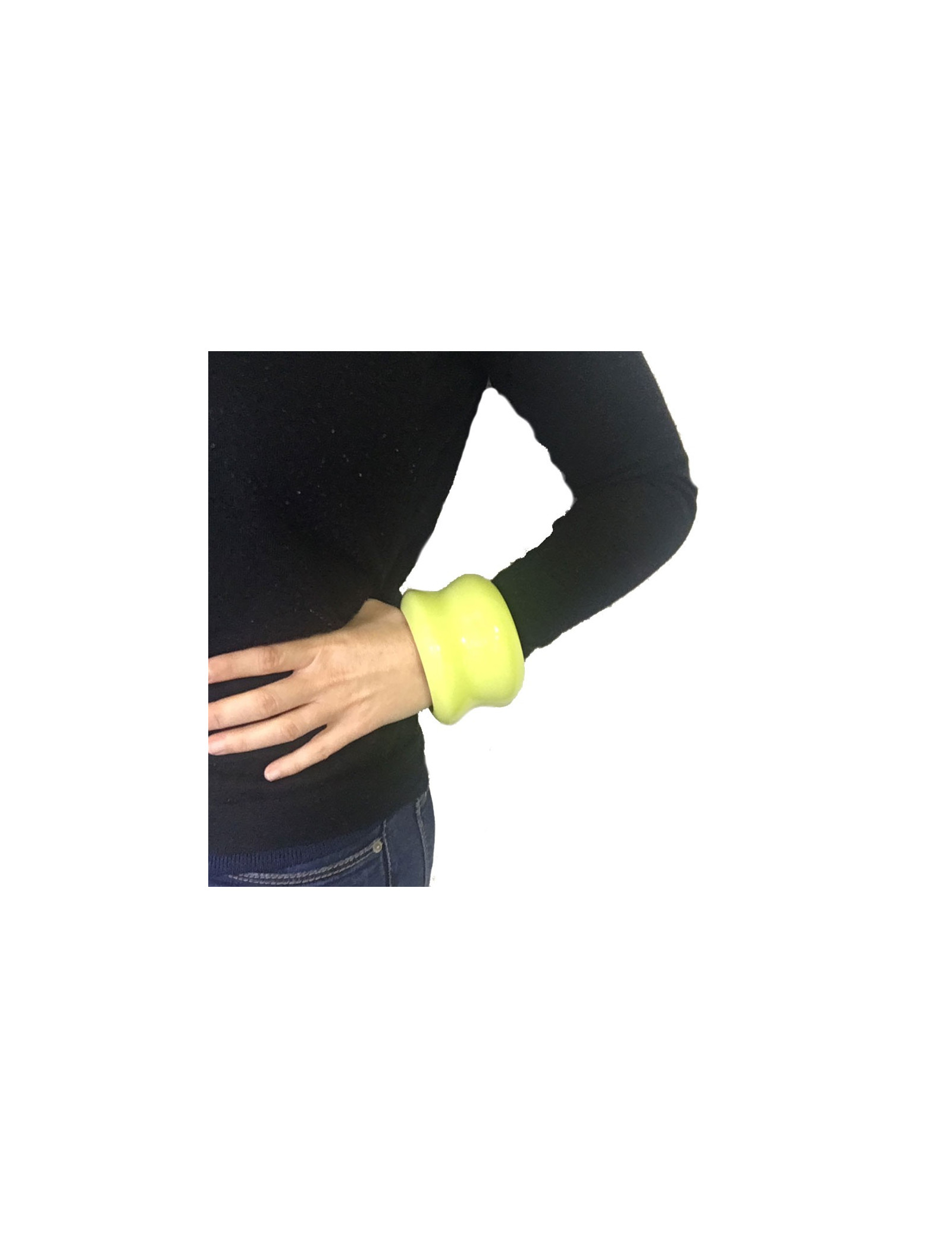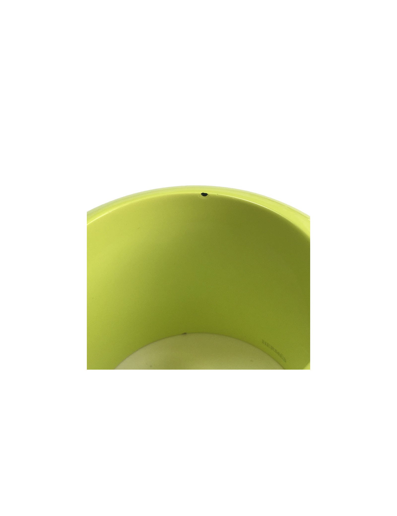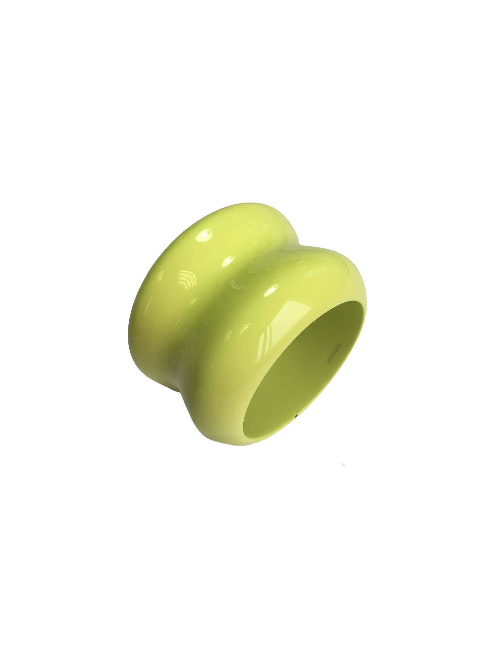 Imposant bracelet Hermès en bois laqué brillant vert anis, taille M. Signé Hermès, made in Vietnam.