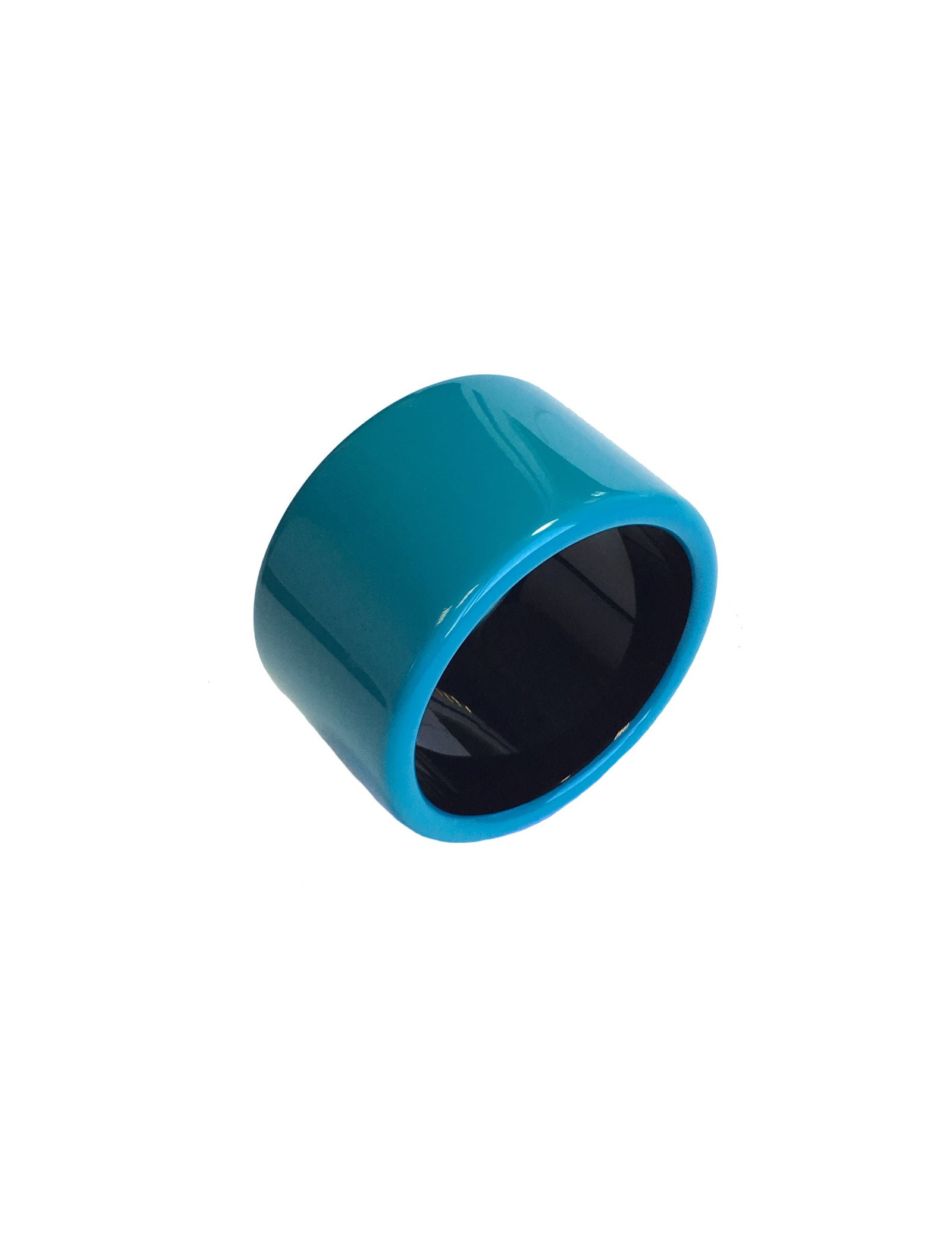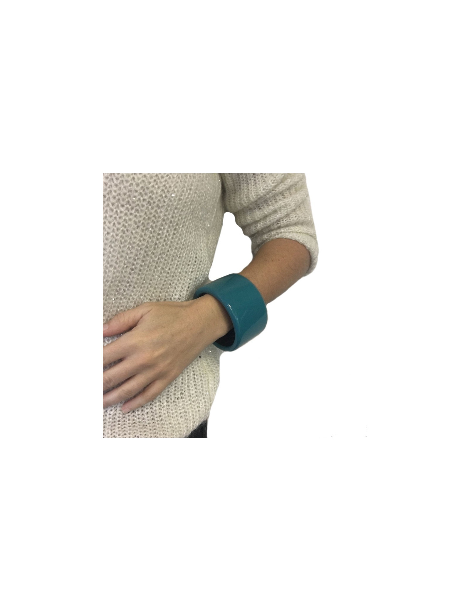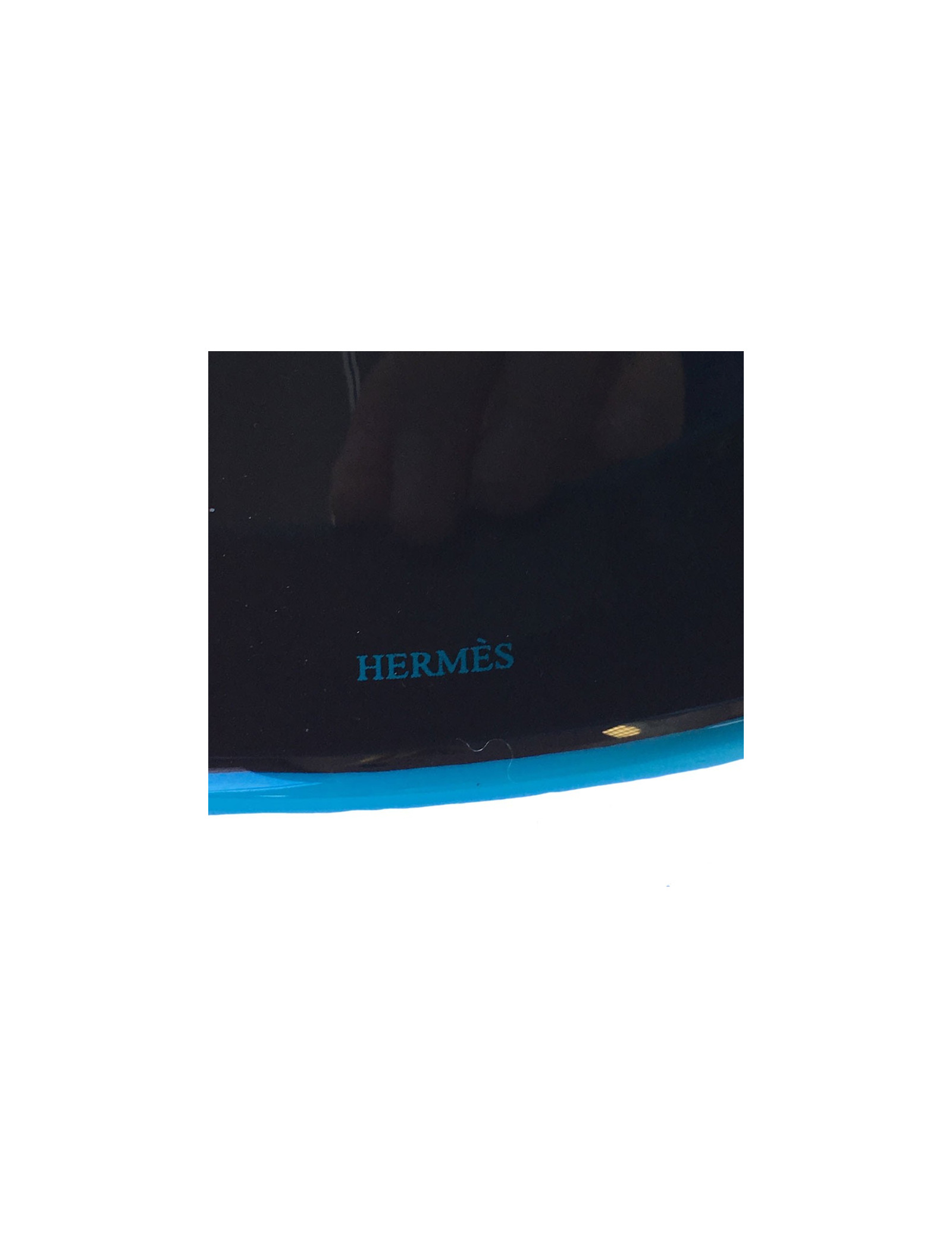 Grand bracelet HERMES en bois laqué bleu paon, intérieur en bois laqué marron.Taille M