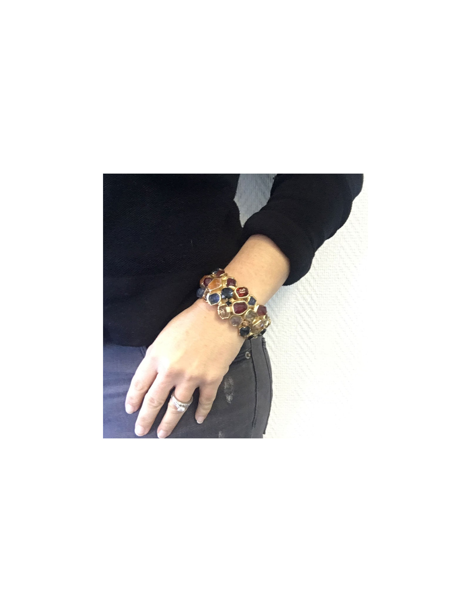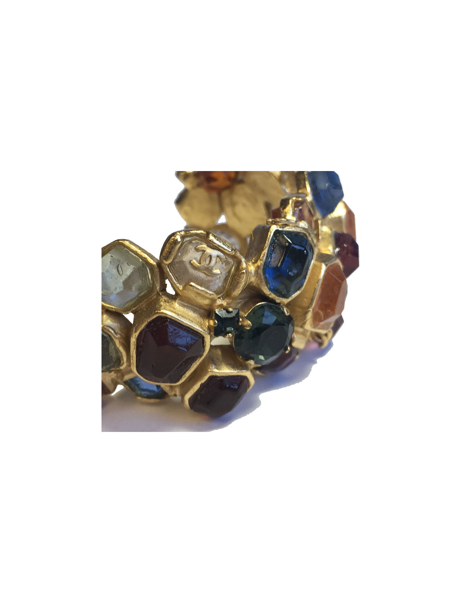 Bracelet CHANEL pierres multicolore et métal doré à l'or fin