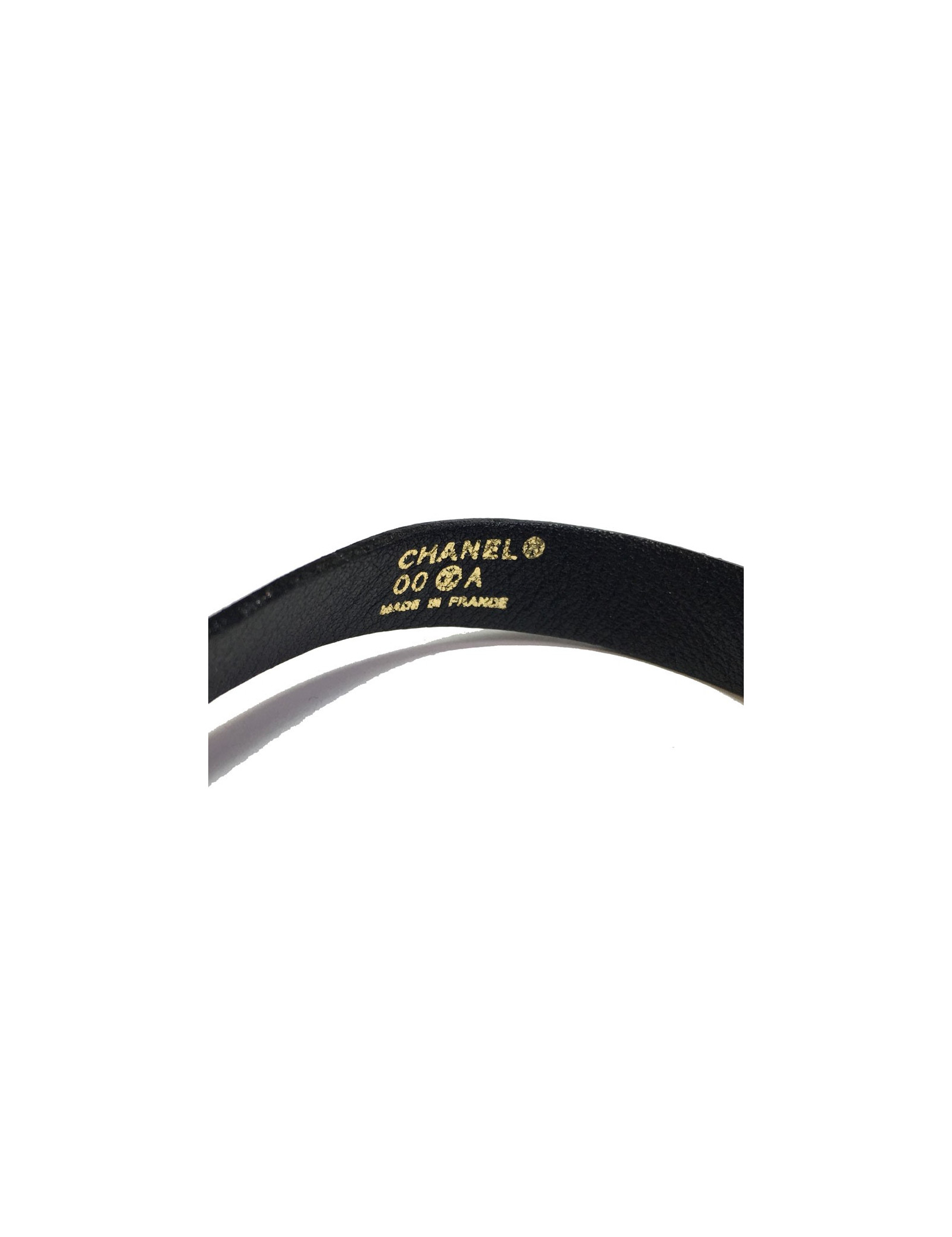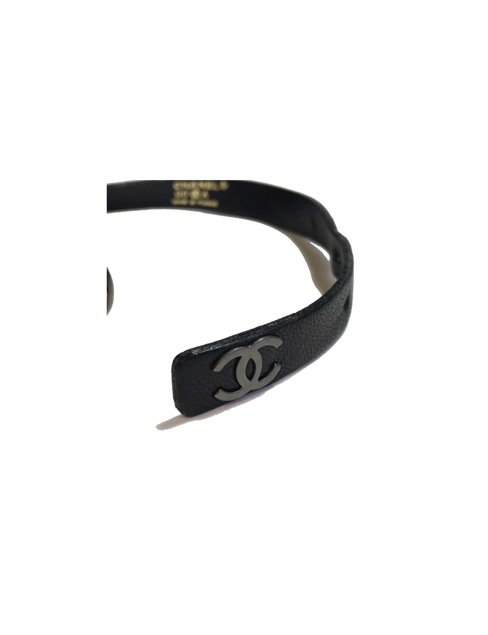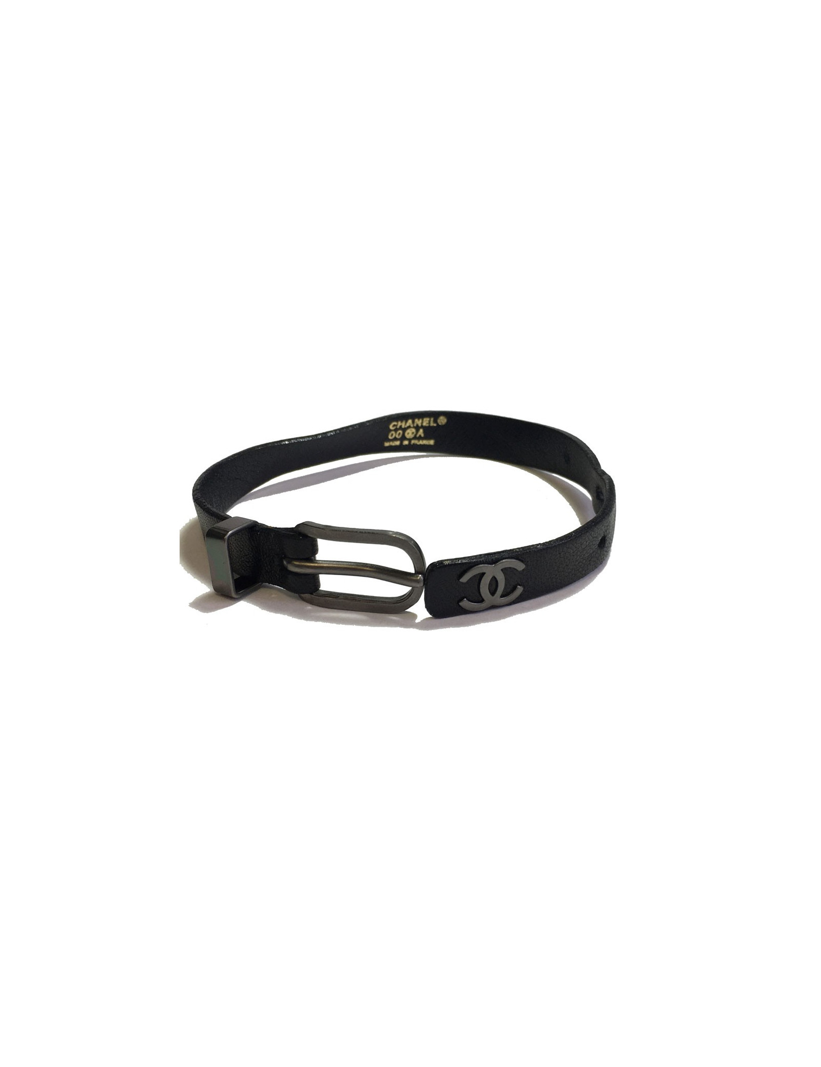 Bracelet CHANEL en cuir d'agneau lisse noir fermoir en métal argenté