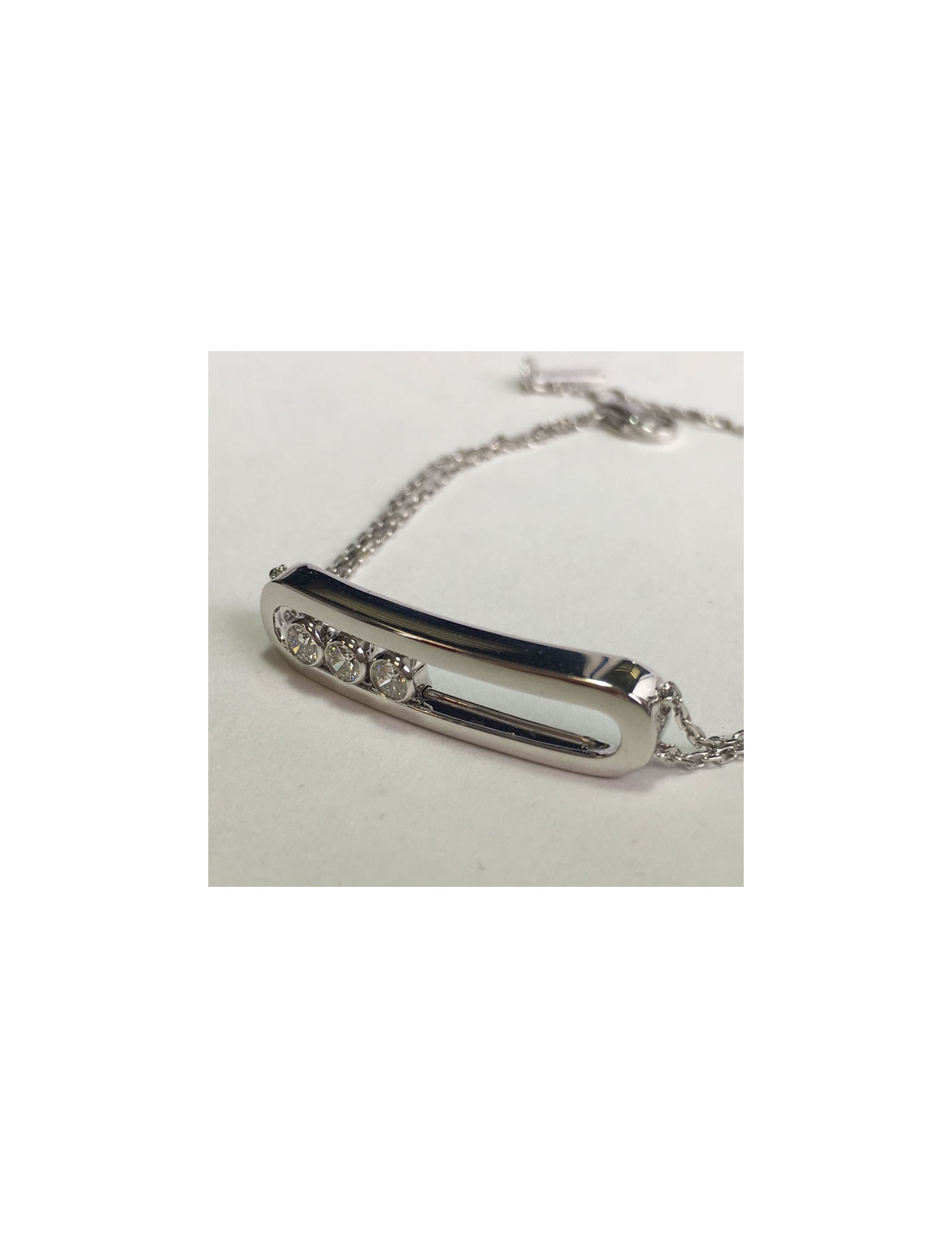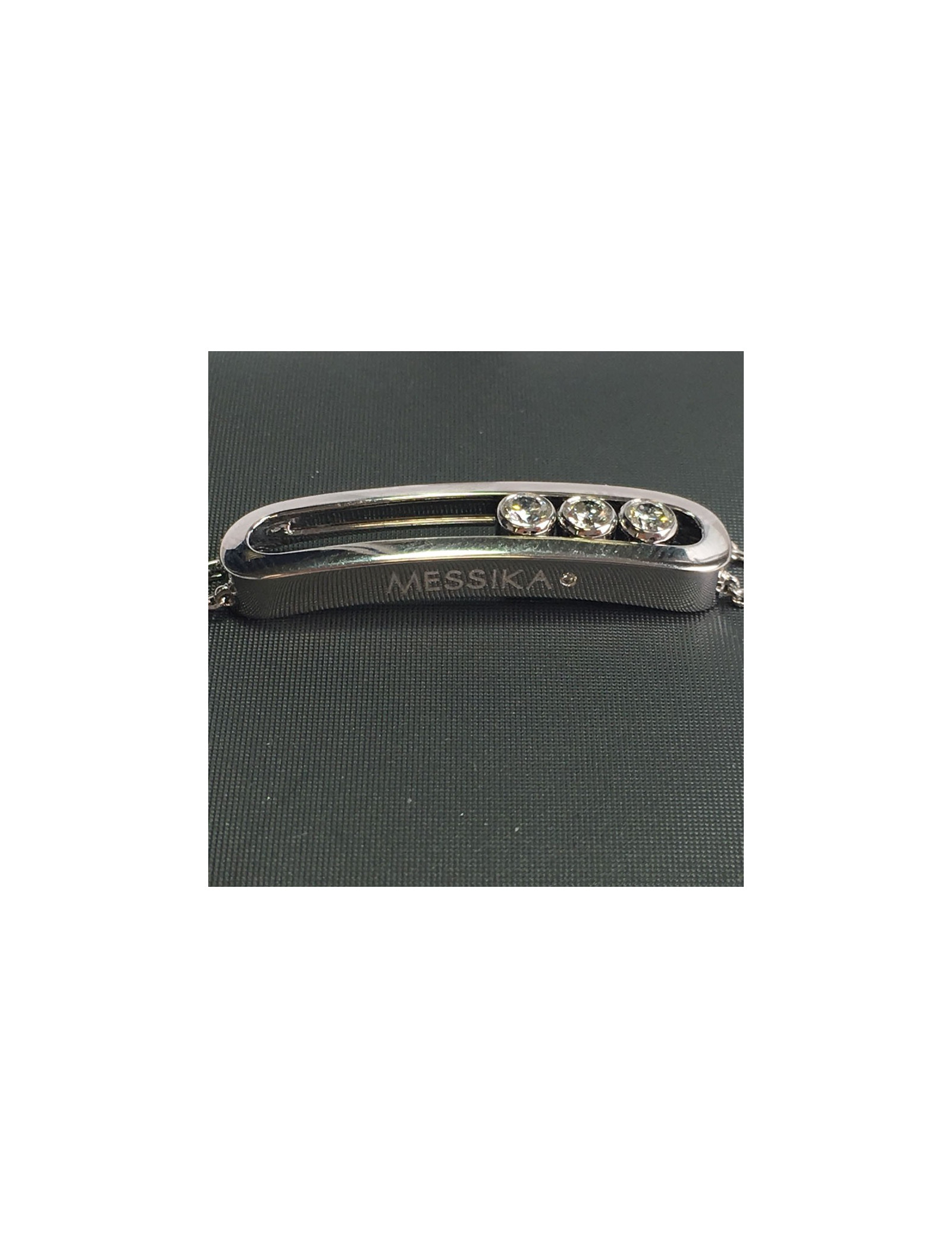 Superbe bracelet "MOVE" de la maison MESSIKA en or blanc 18 carats. Sur la partie rigide il y a trois diamants, taille brillants, mobiles. Jamais porté.