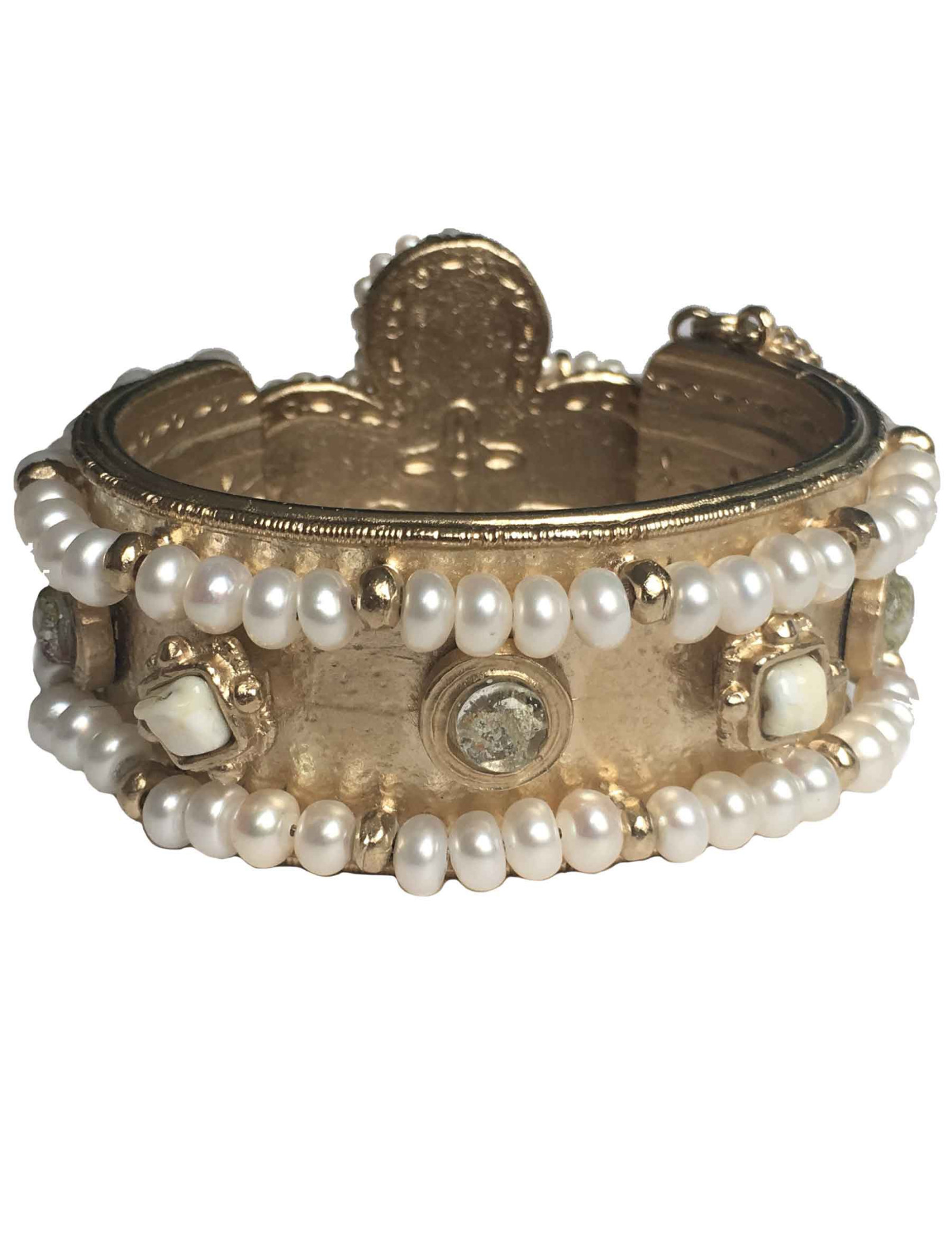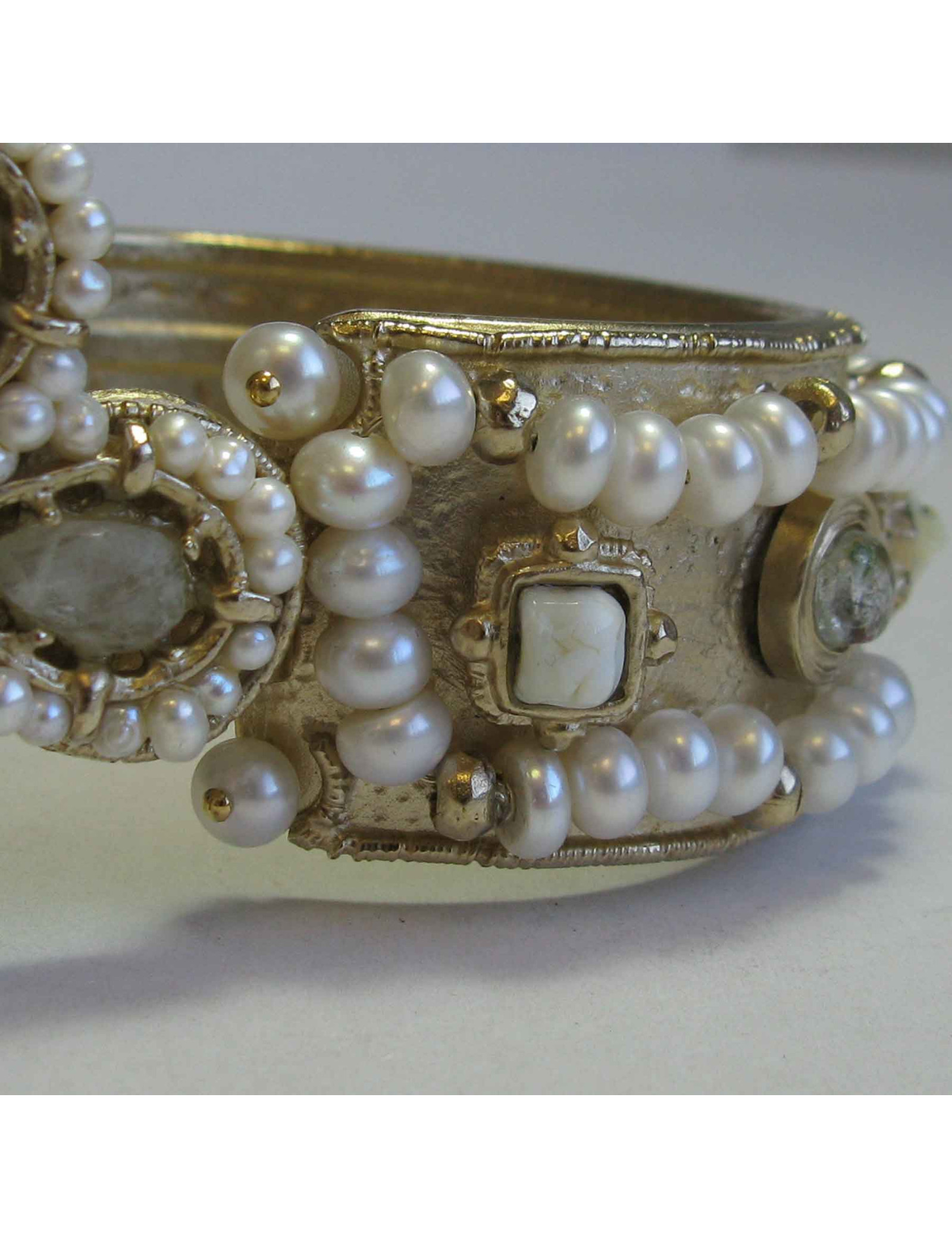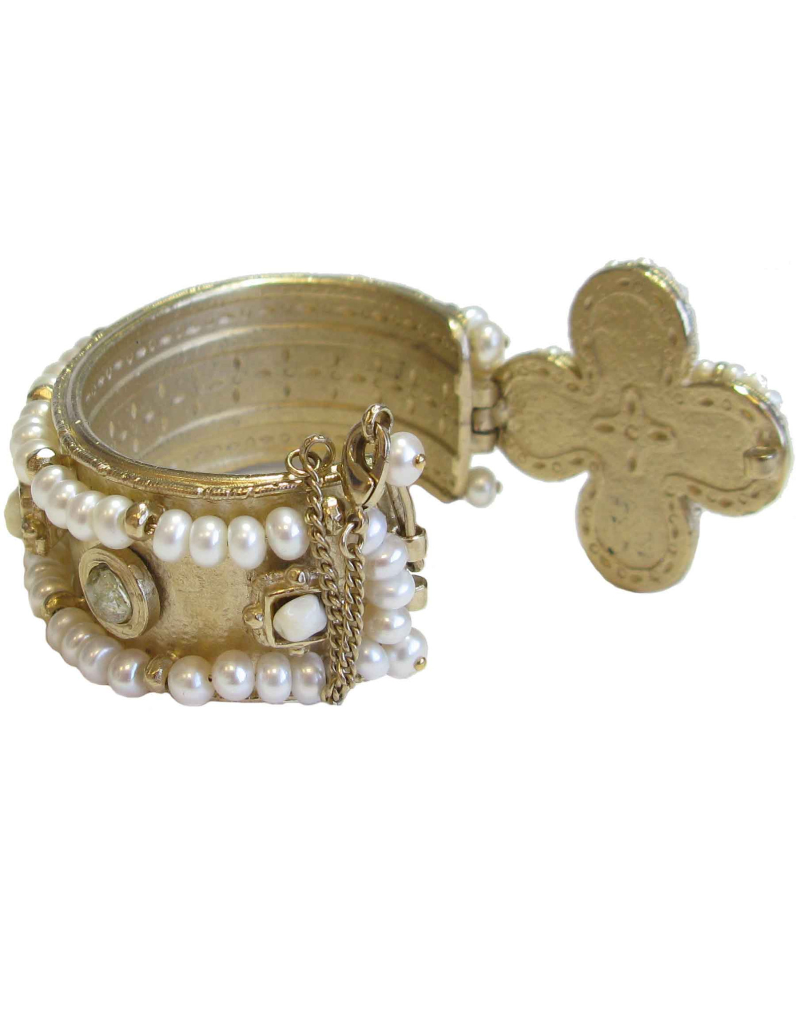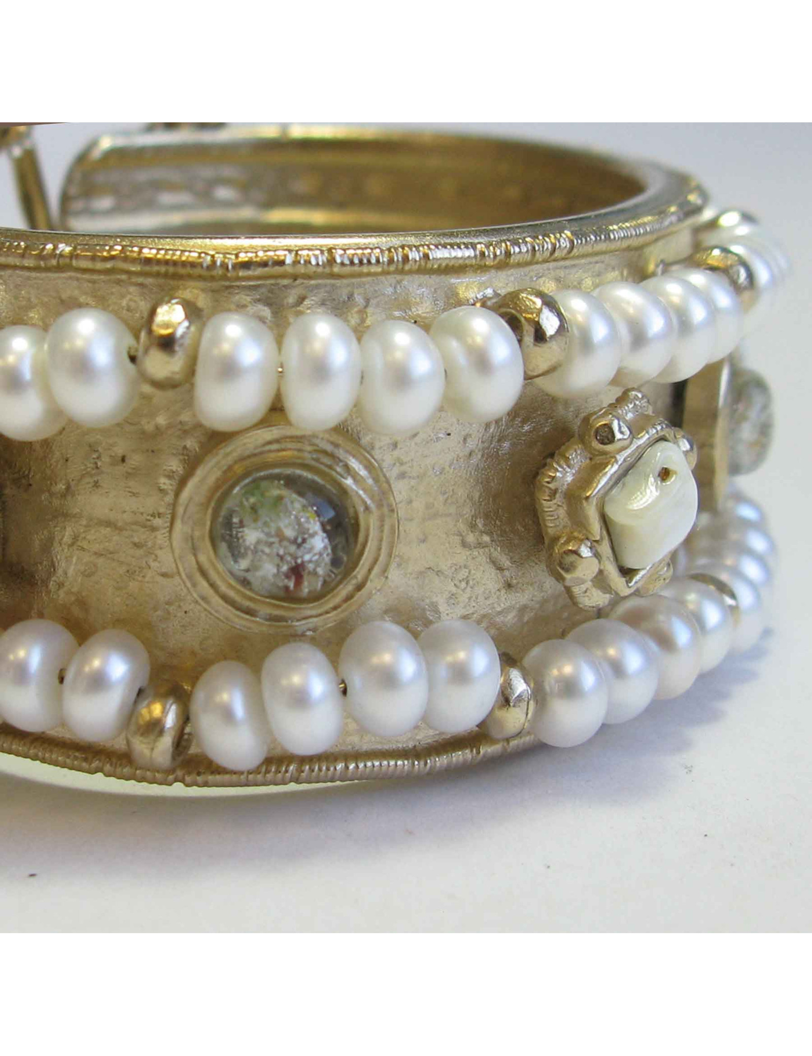 Manchette CHANEL Paris-Rome en métal doré et perles nacrées
