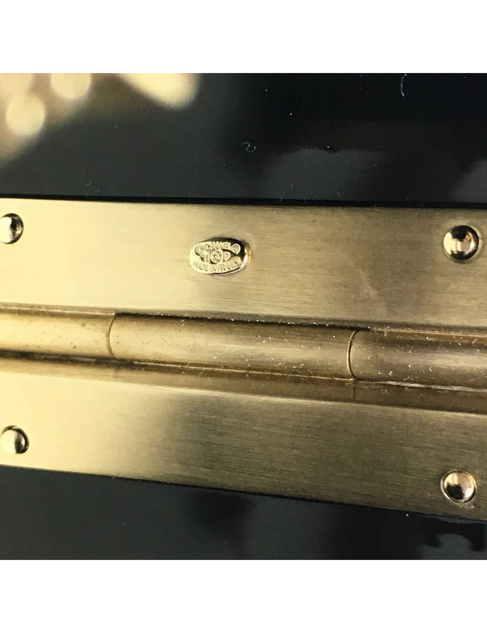 Ouverture par bouton poussoir siglé Chanel. En très bon état. Collection printemps 2011.