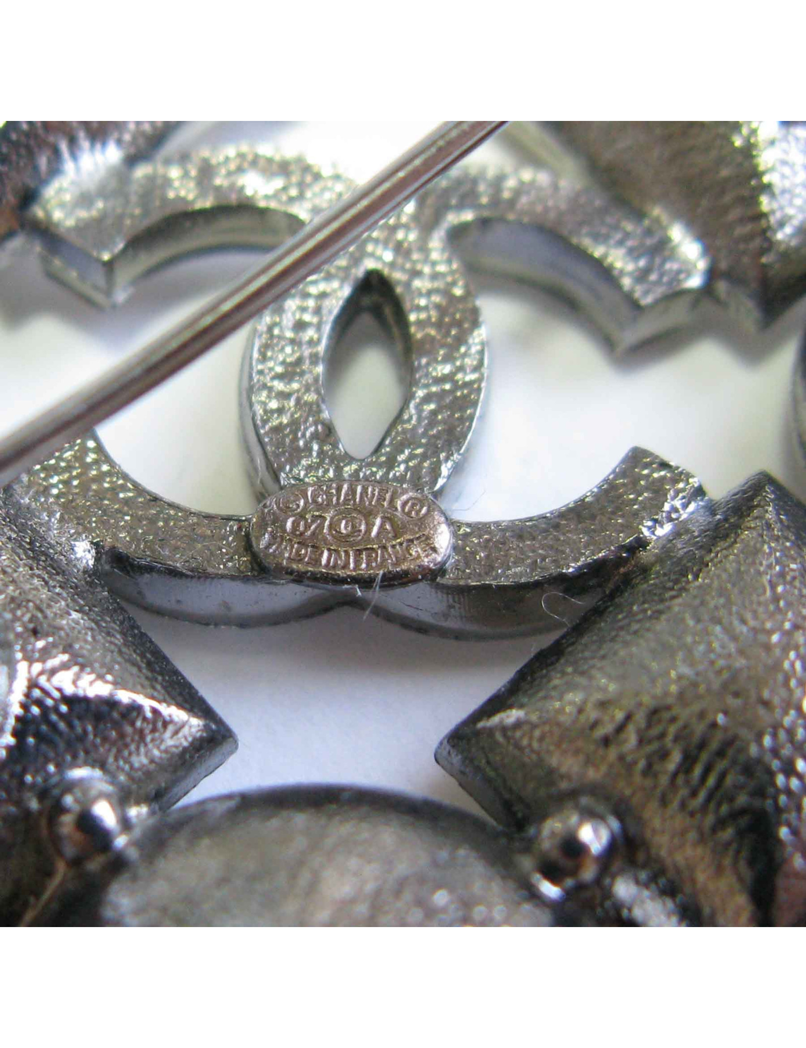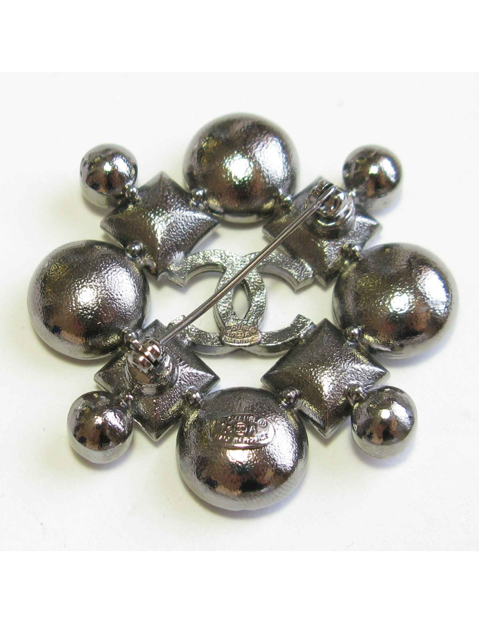 Broche CHANEL en ruthénium et strass noirs, transparents et blanc nacré