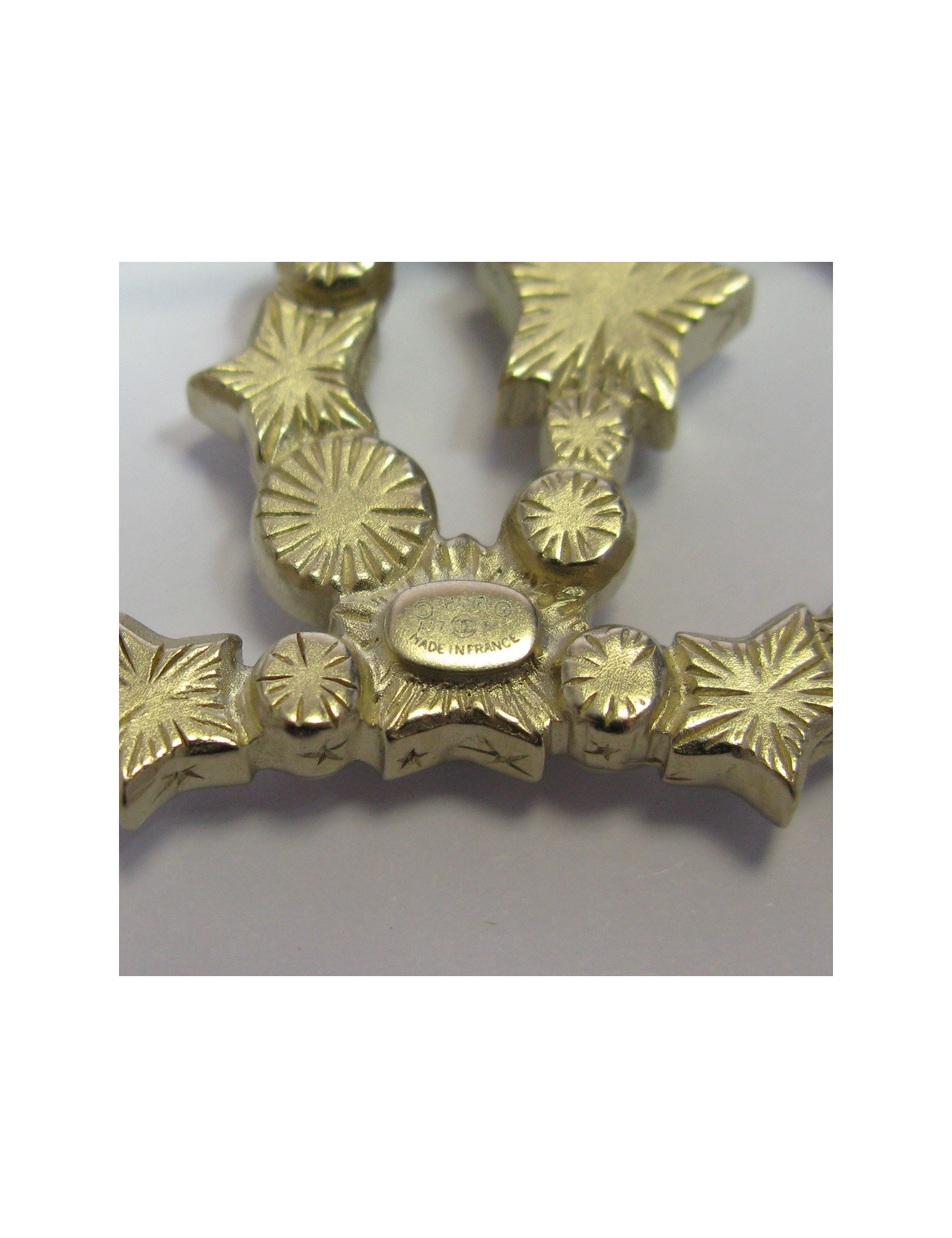 Très belle broche Chanel CC en métal doré, sertie de perles et étoiles nacrées beige.