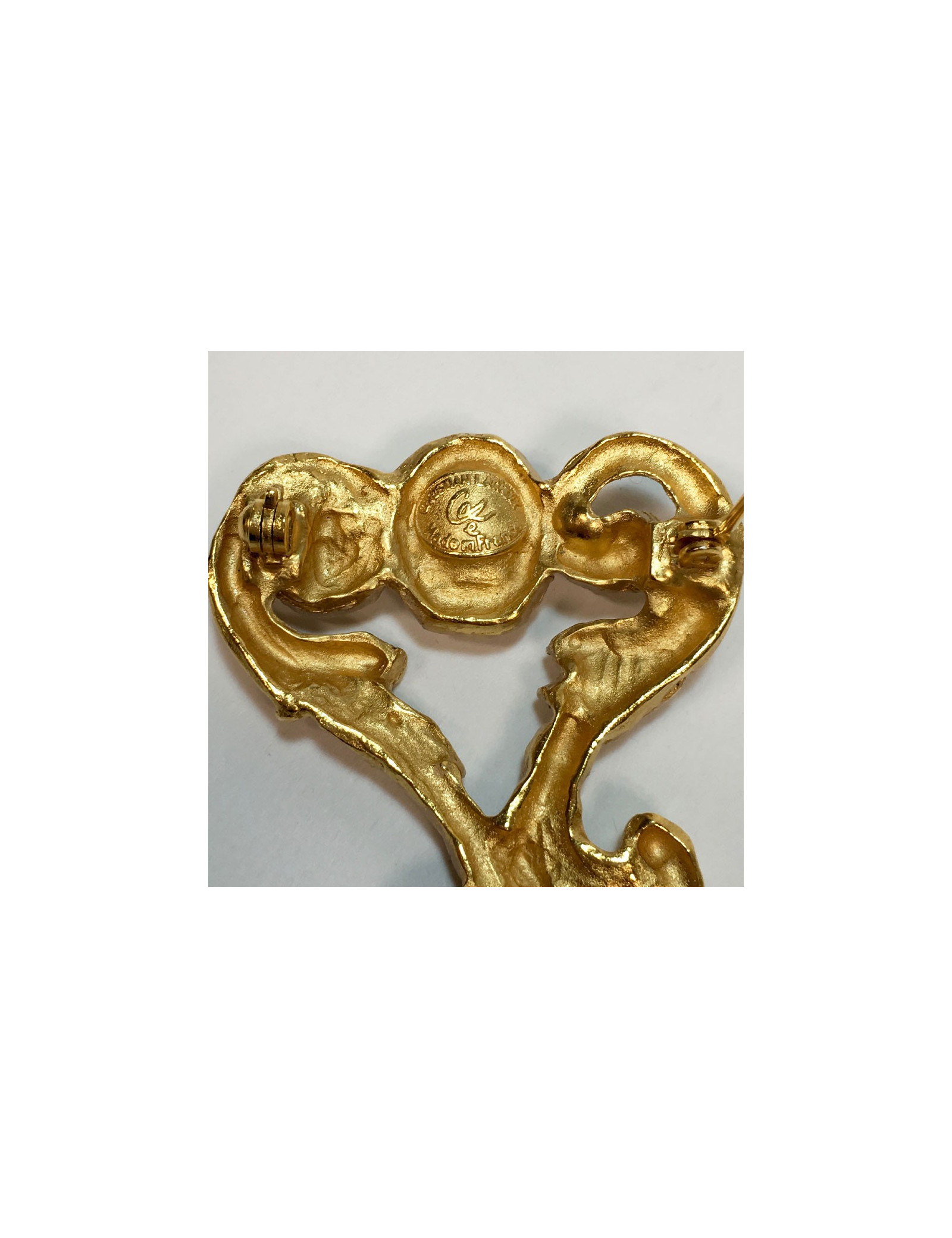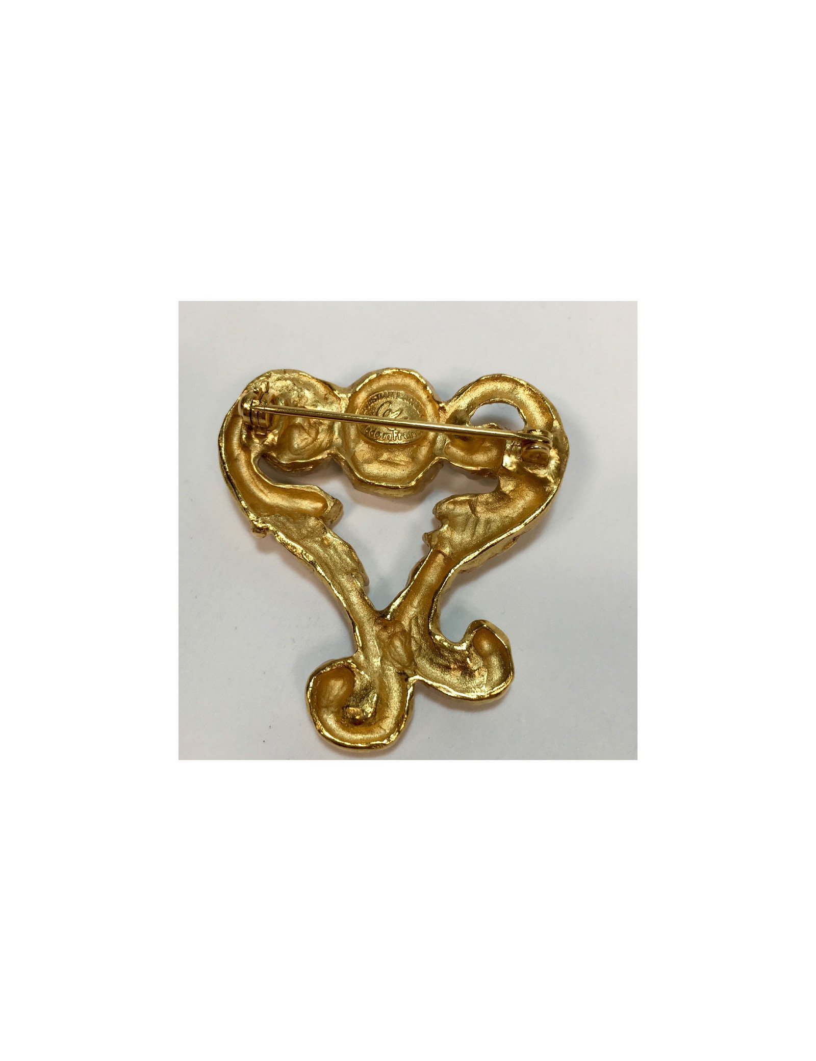 Broche vintage Christian Lacroix en métal doré or mat et brillants