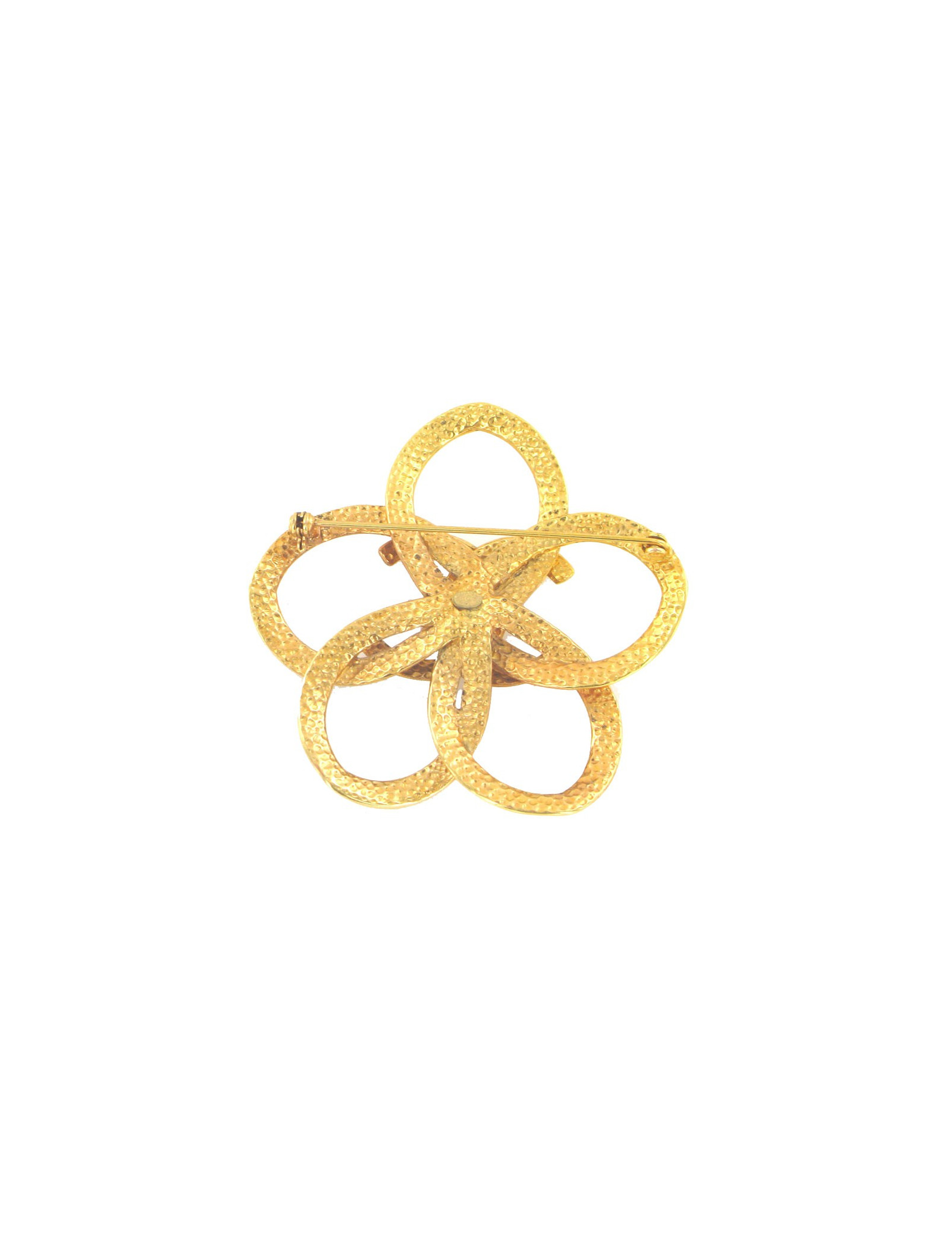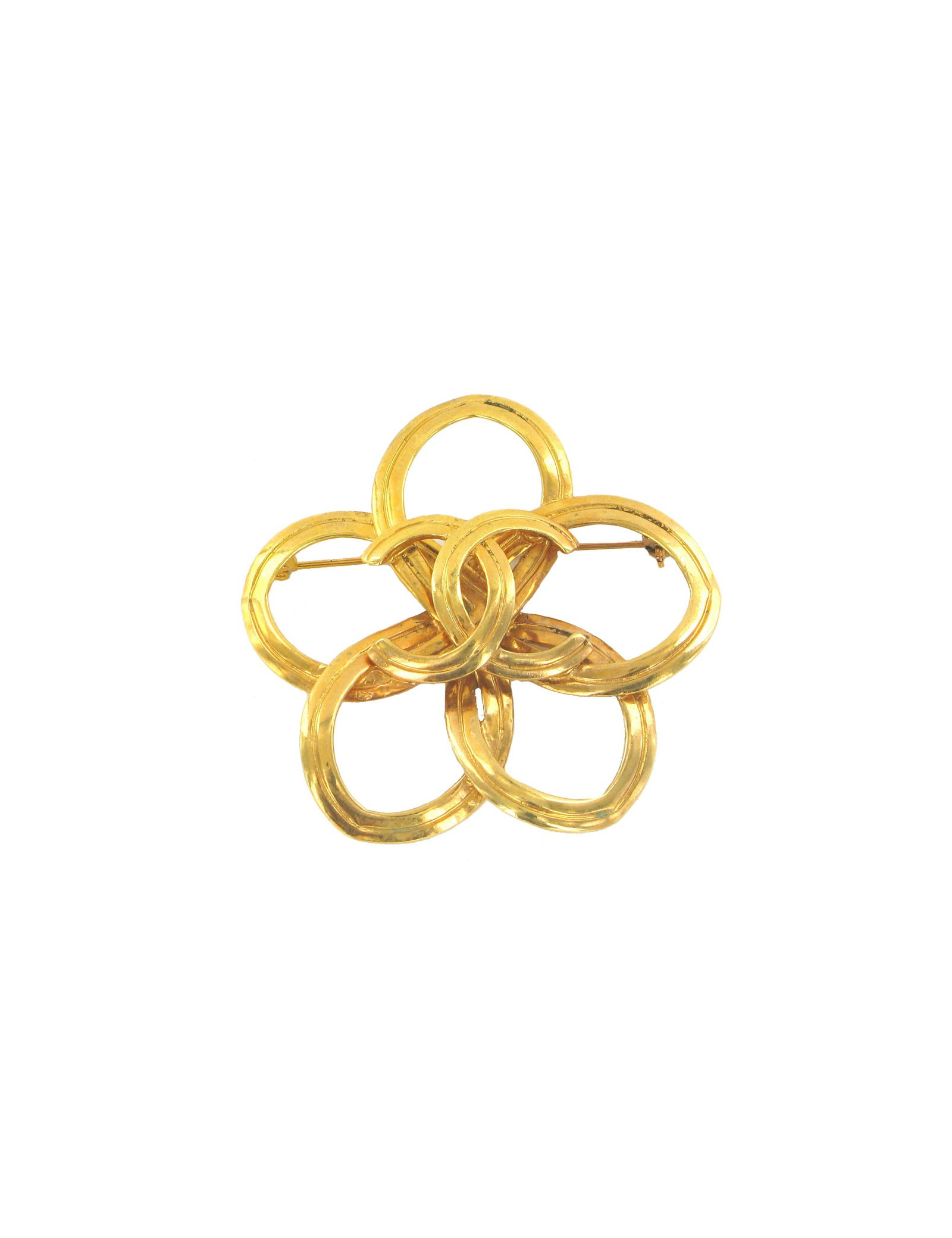 Jolie broche camélia vintage CHANEL. Au centre, il y a le sigle "CC". Elle est en laiton doré à l'or fin. En très bon état.