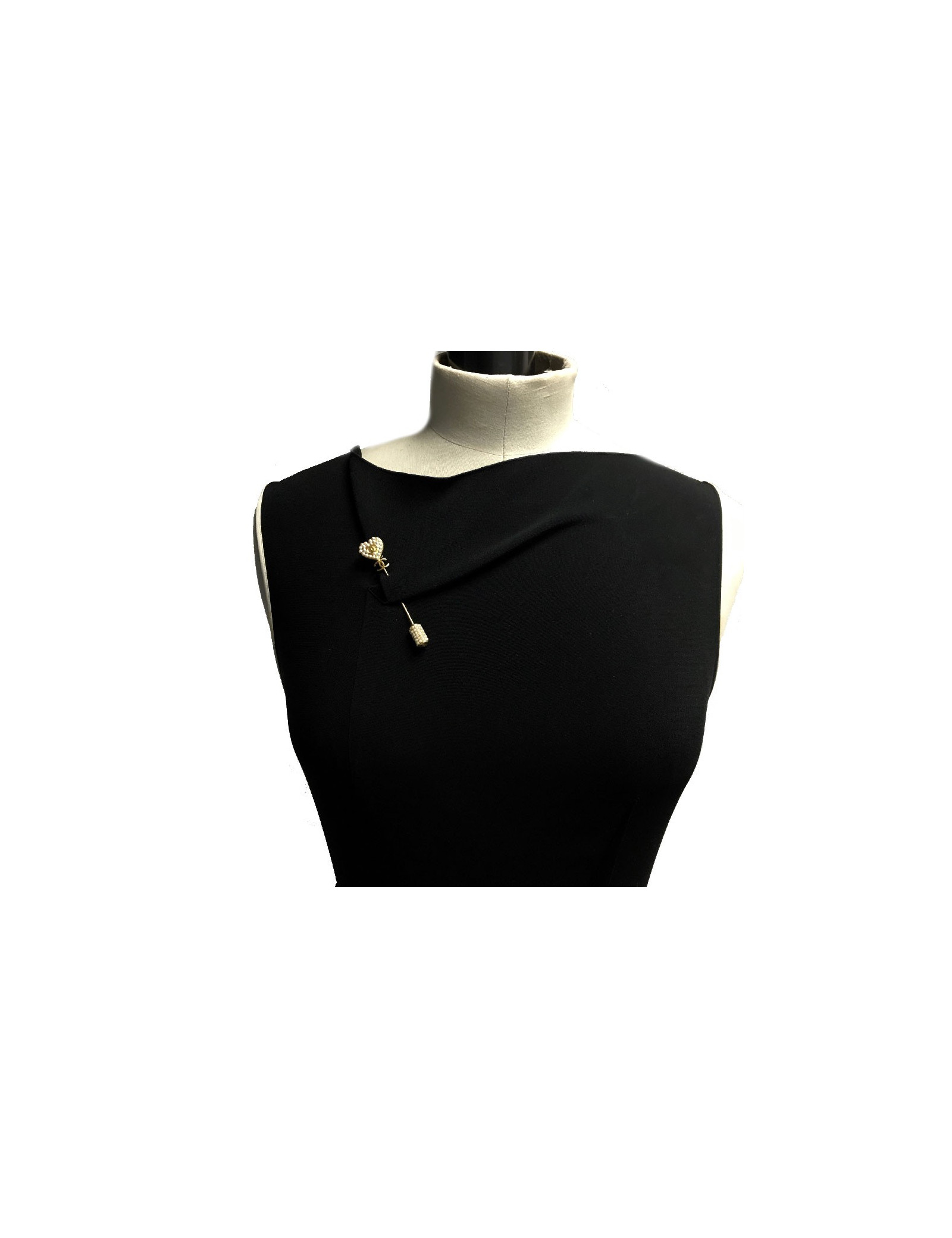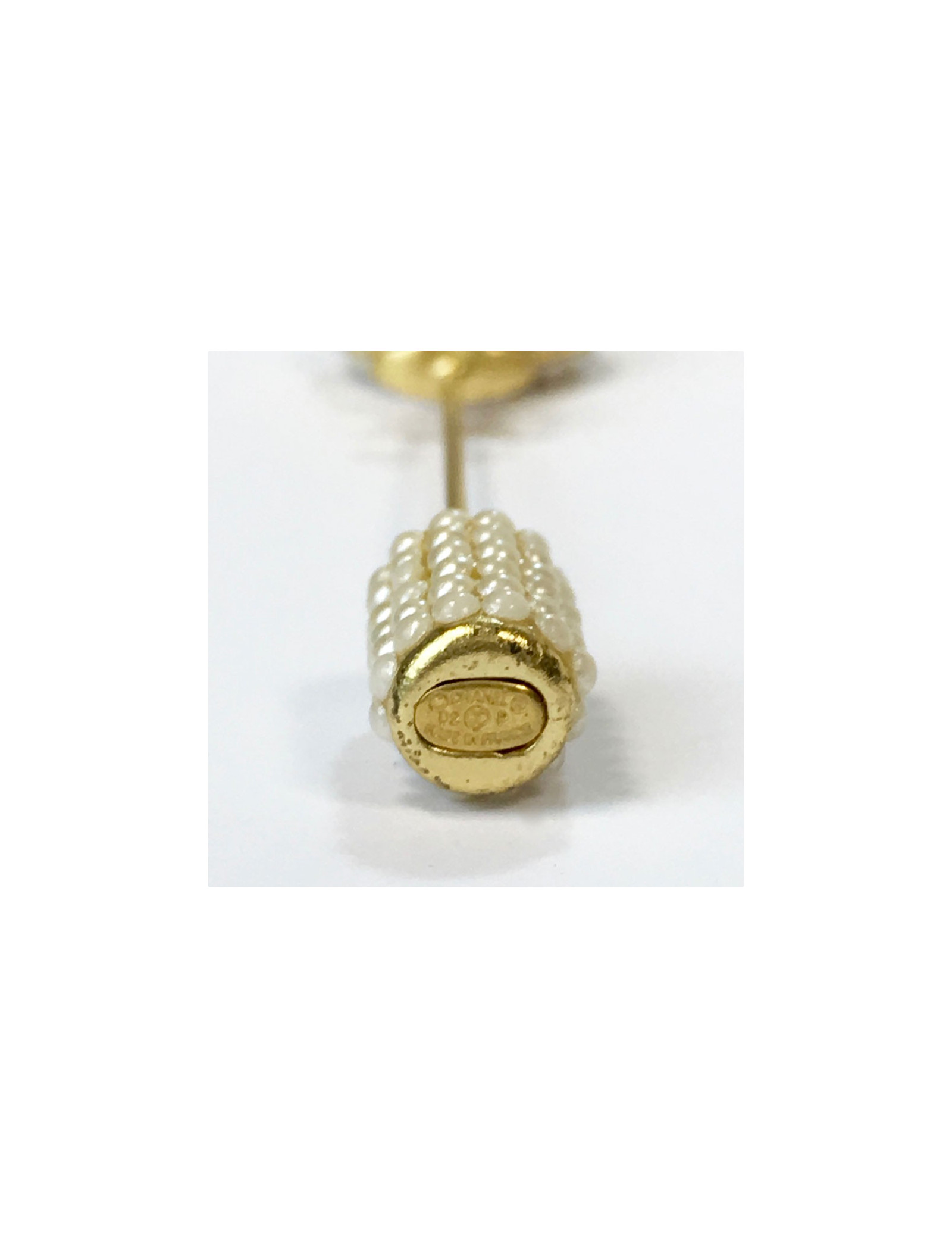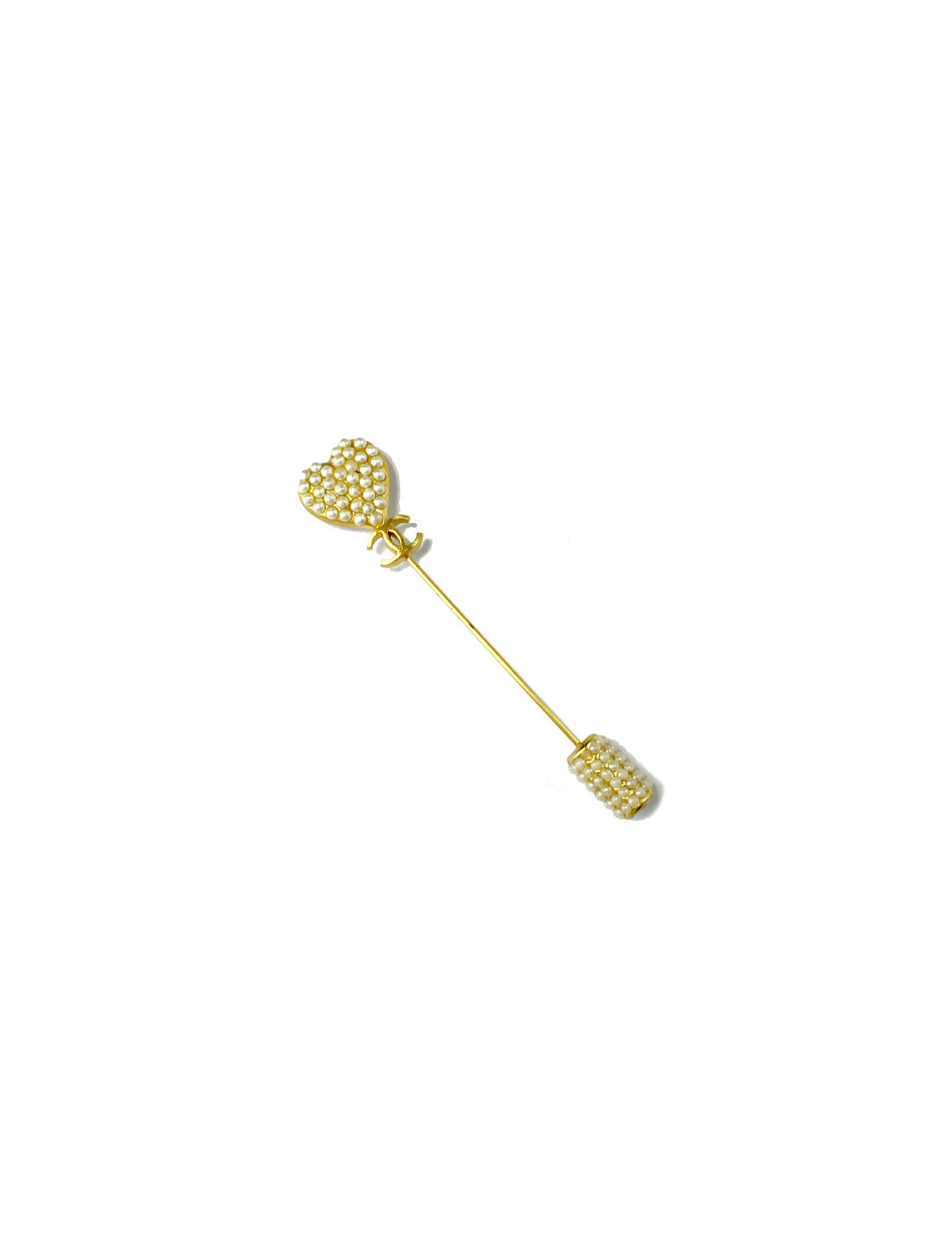 Epingle Chanel en métal doré or mat, coeur et fermoir sertis de perles nacrées.