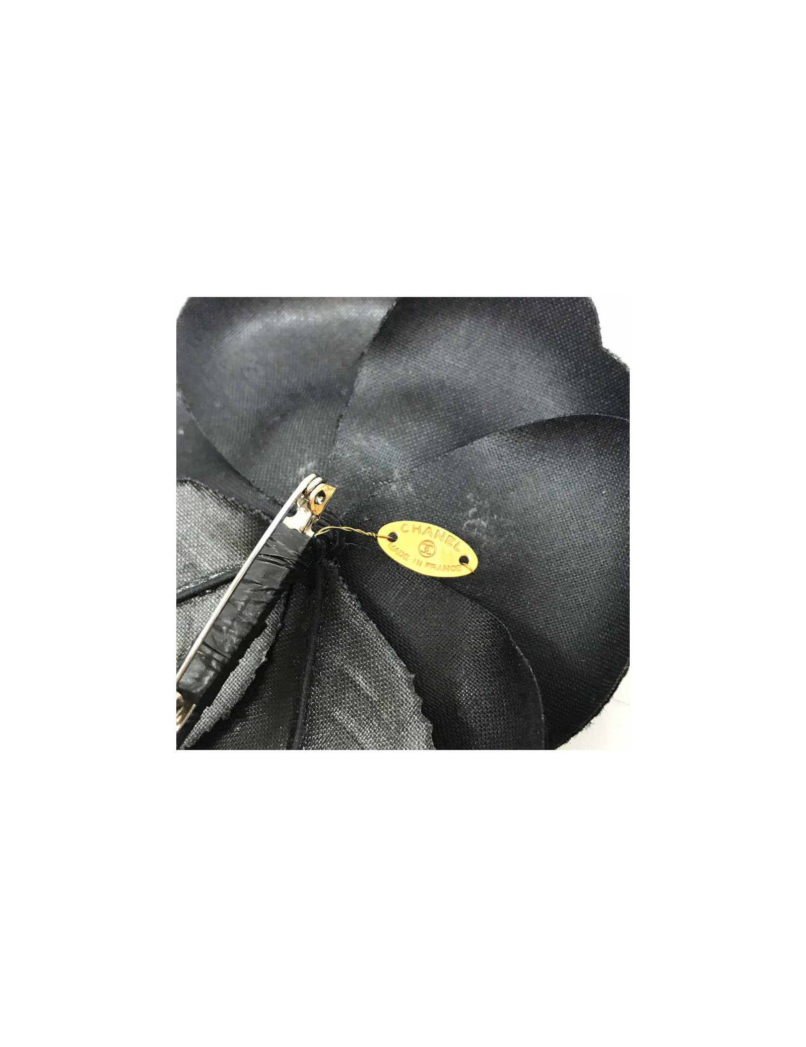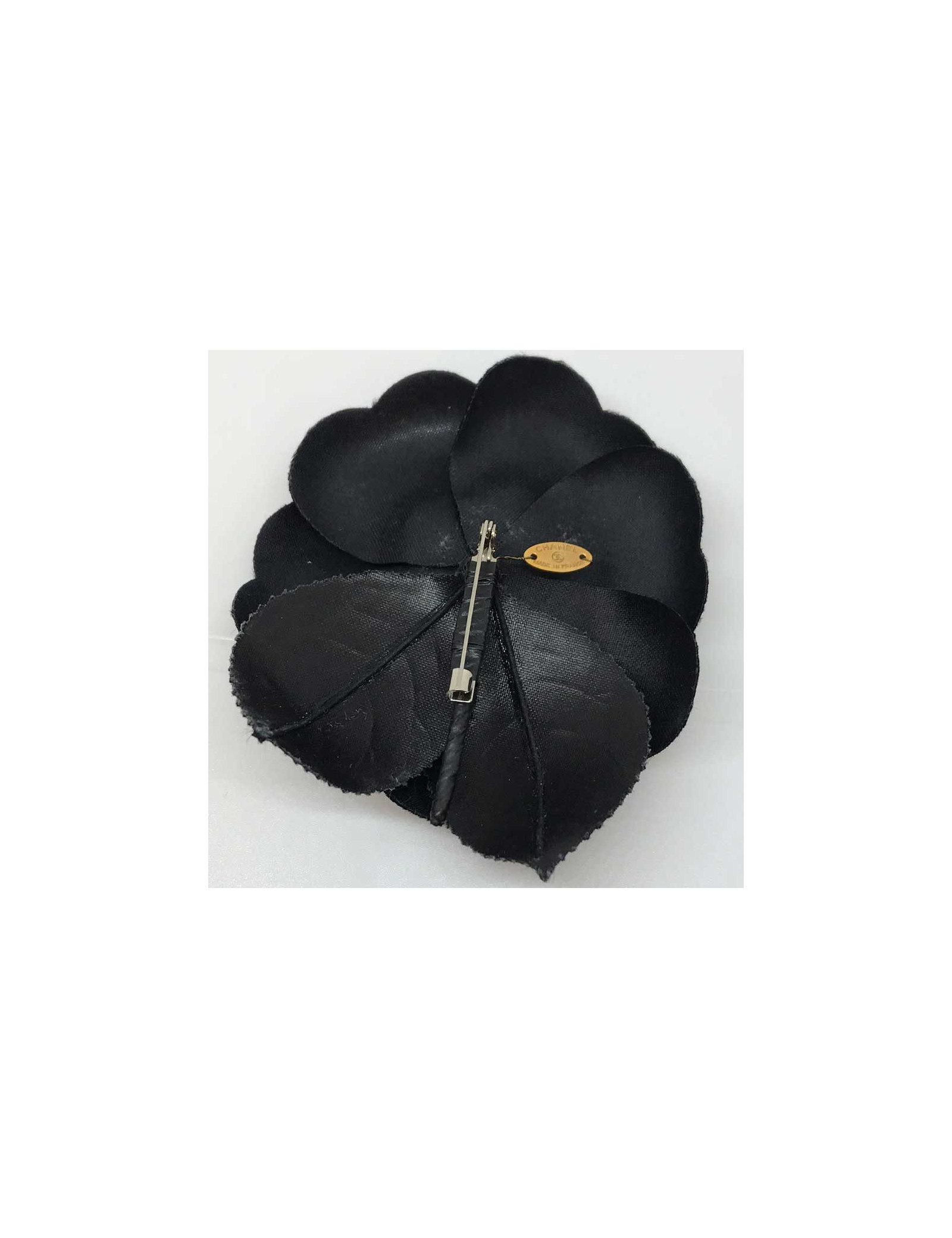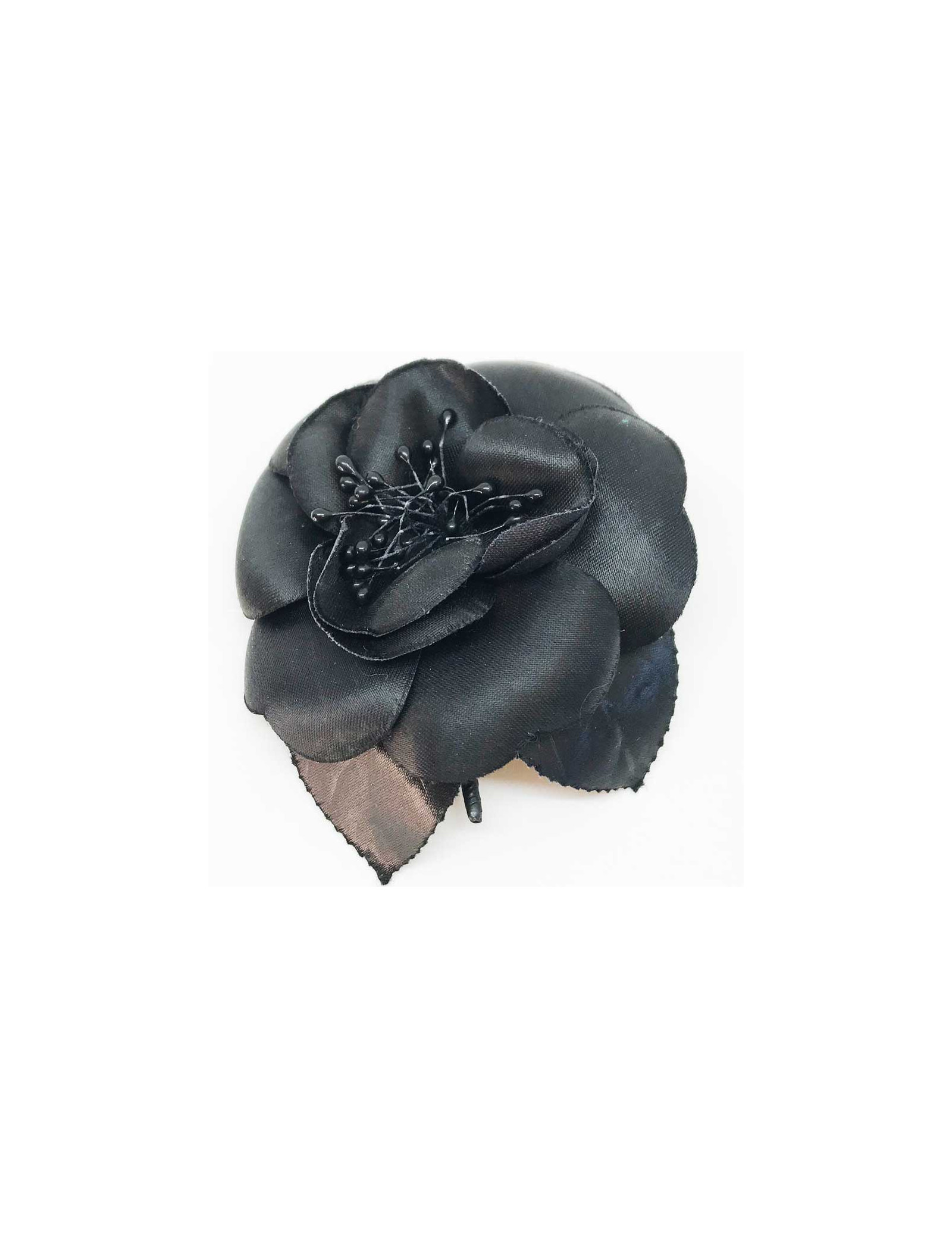 L'emblème de la maison CHANEL reste indubitablement le camélia. Le pétale et les feuilles du camélia sont en tissu noir et nous pouvons découvrir au coeur de la fleur, des pistils noirs.