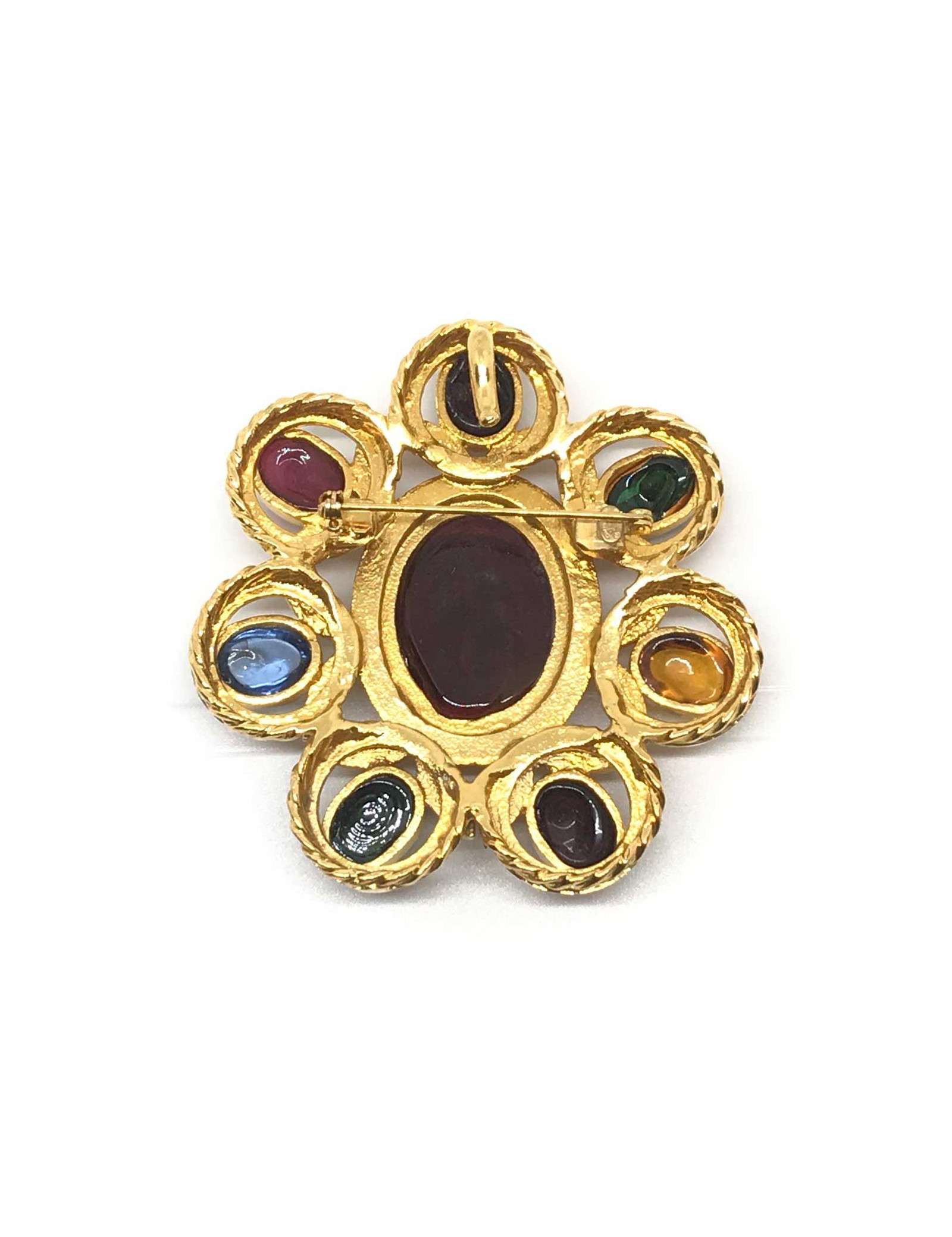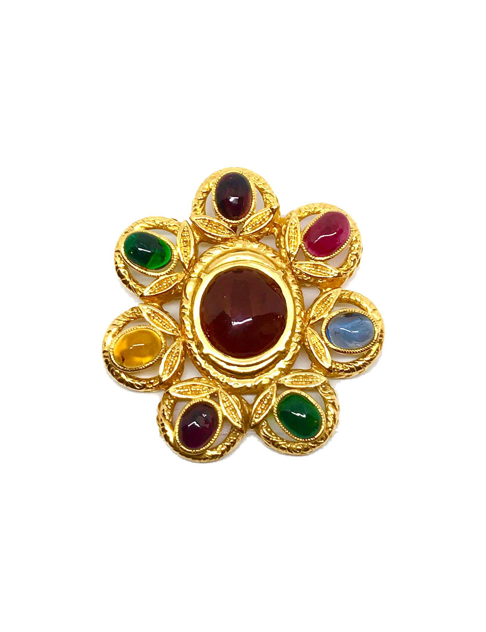Nouveau BROCHES Imposante broche DOMINIQUE AURIENTIS rubans 1980 DOMINIQUE AURIENTIS 40090 790,00 € Vintage broche DOMINIQUE AURIENTIS multicolore Condition : très bon étatPays de fabrication : FranceMatière : métal doré à l'or fin, résine, pâte de verreCouleur : doré, multicoloreDimensions : diamètre 9 cmStamp : ouiAnnée : circa fin des années 1980Détails : spectaculaire broche en forme de soleil stylisé, ornée de cabochons en résine et pâte de verre... Ajouter au panier
