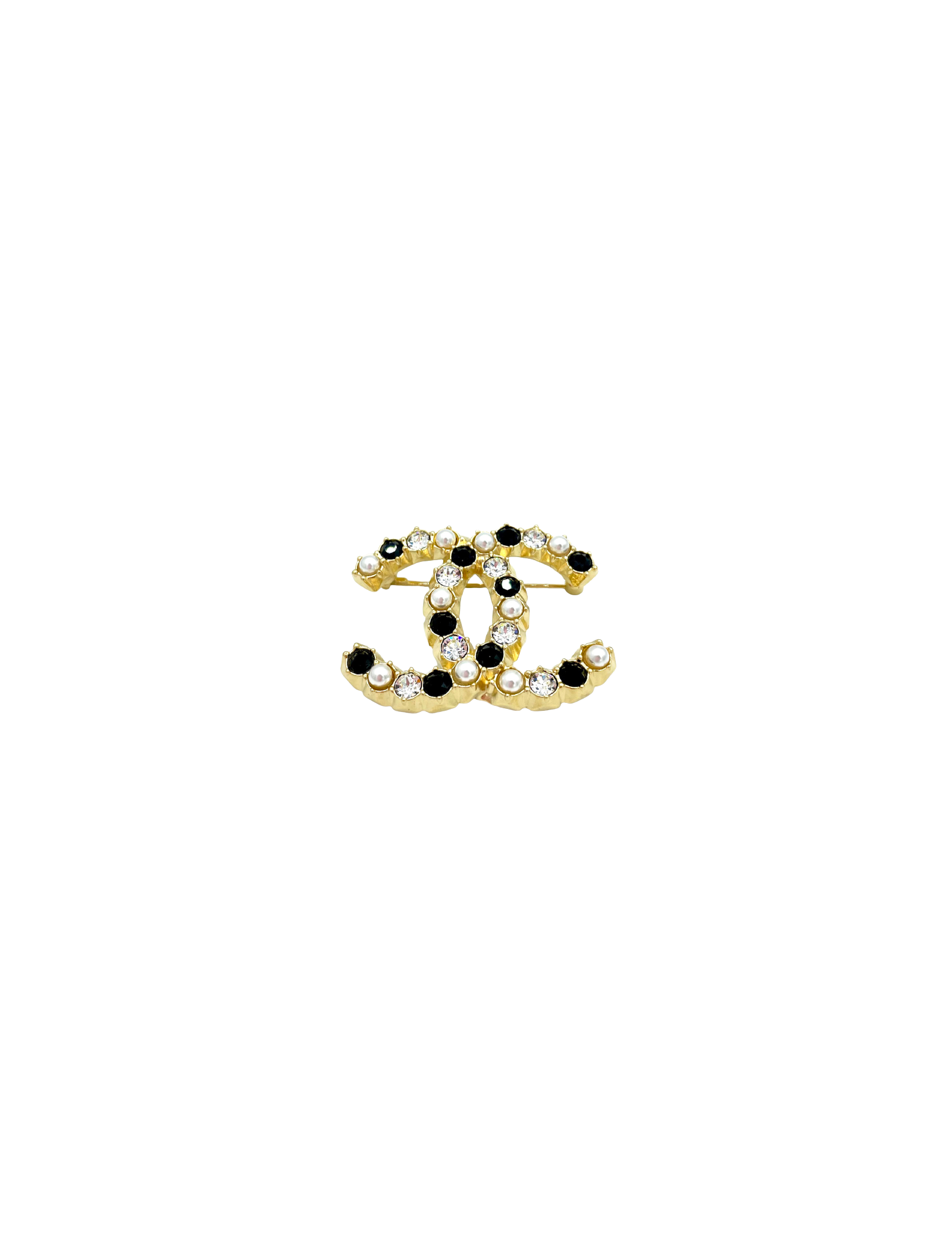 Broche CHANEL perles brillants noirs strass