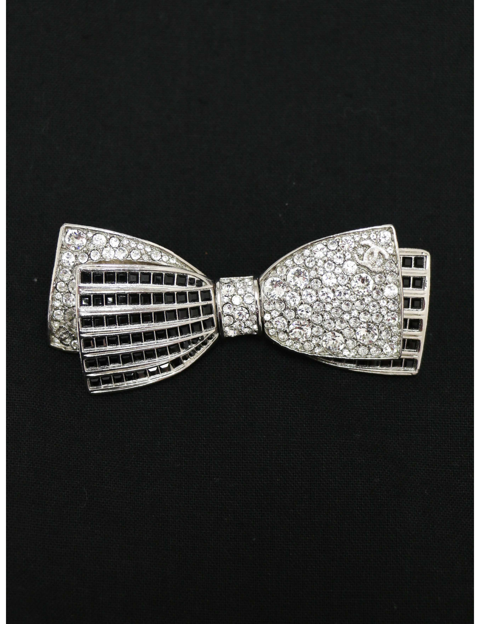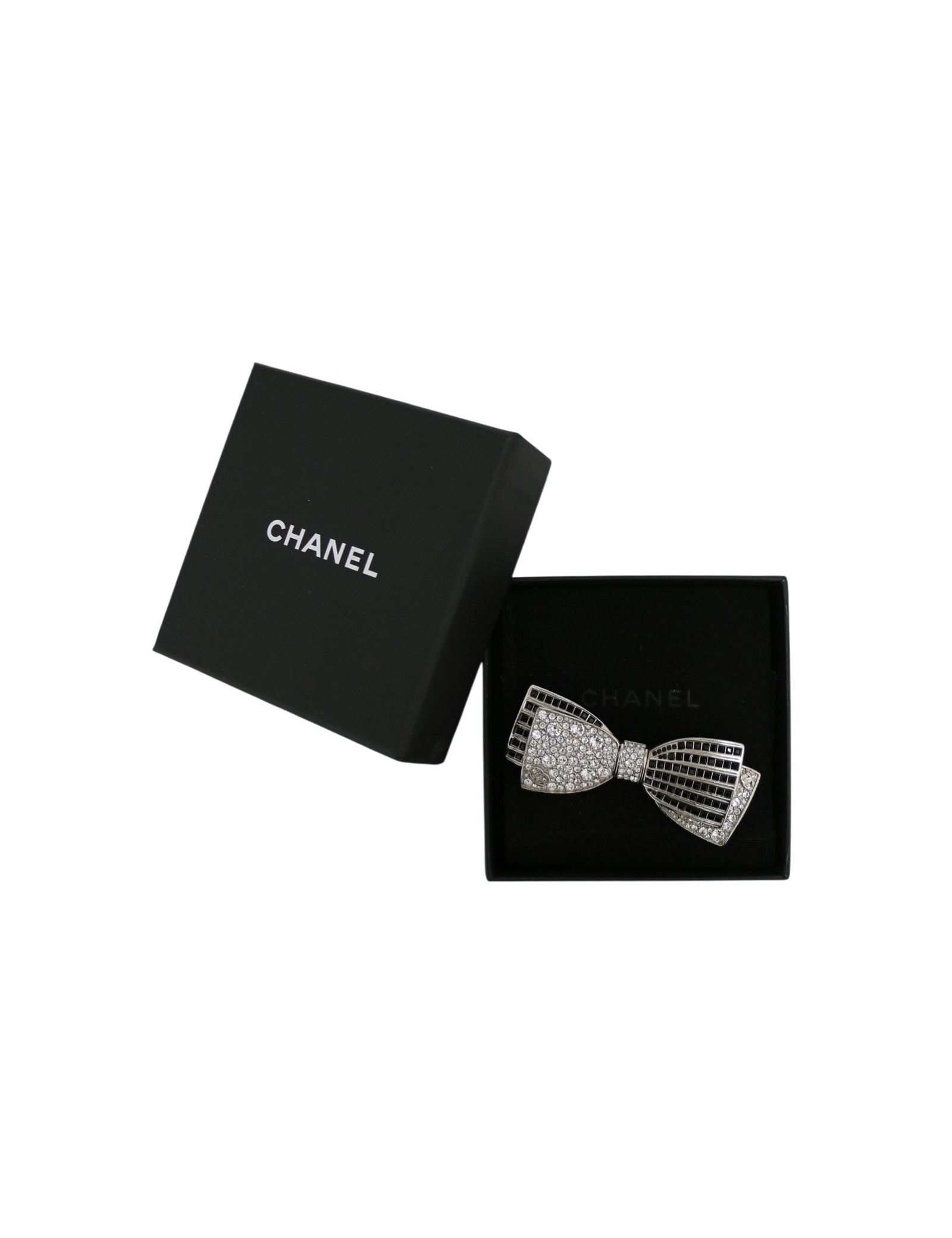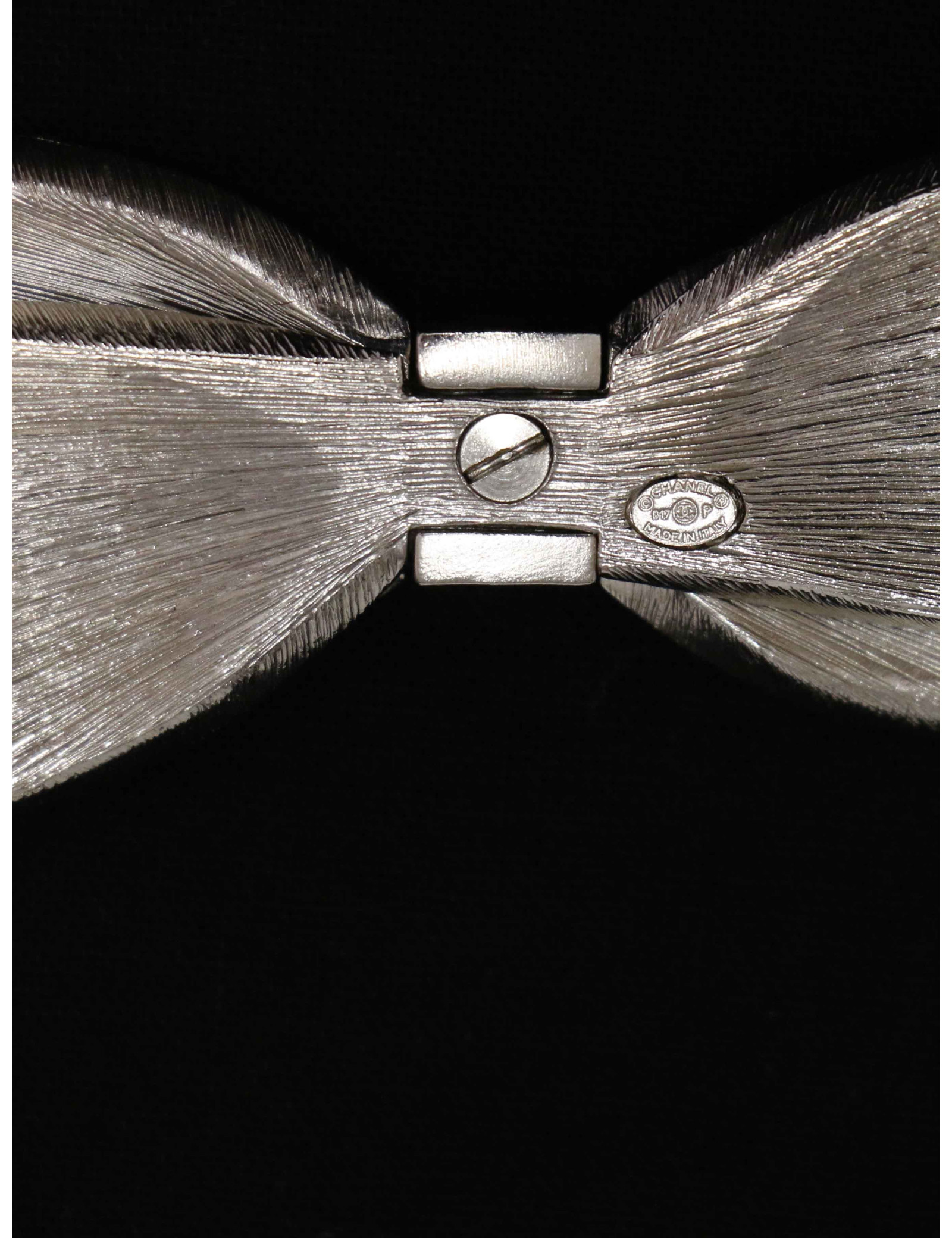 Broche Nœud Chanel Collection Printemps 2017 en Métal Argenté et Strass
