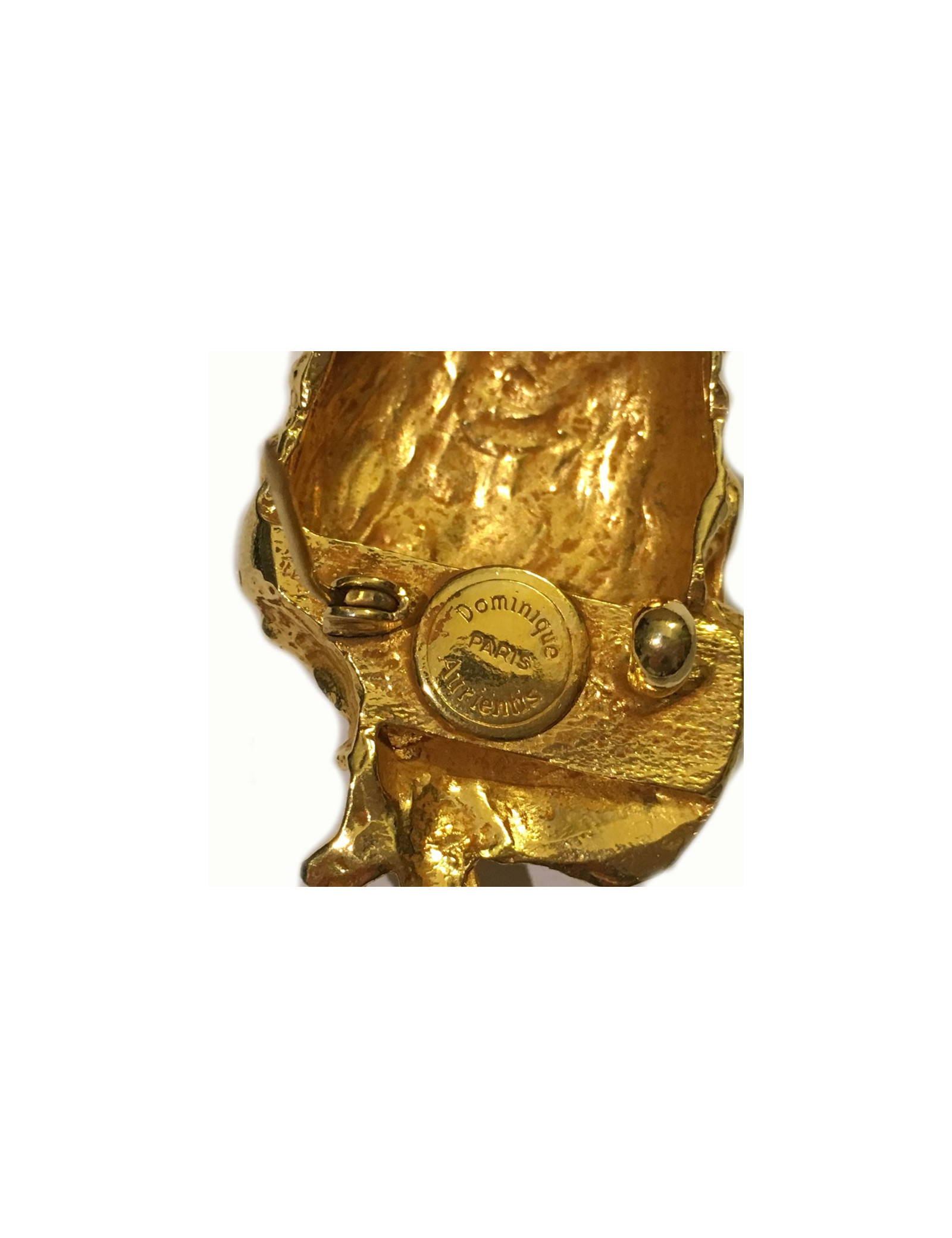 Belle broche DOMINIQUE AURIENTIS en forme de pomme de pin dorée. Jamais portée. Pastille de la marque présente au dos de la broche.