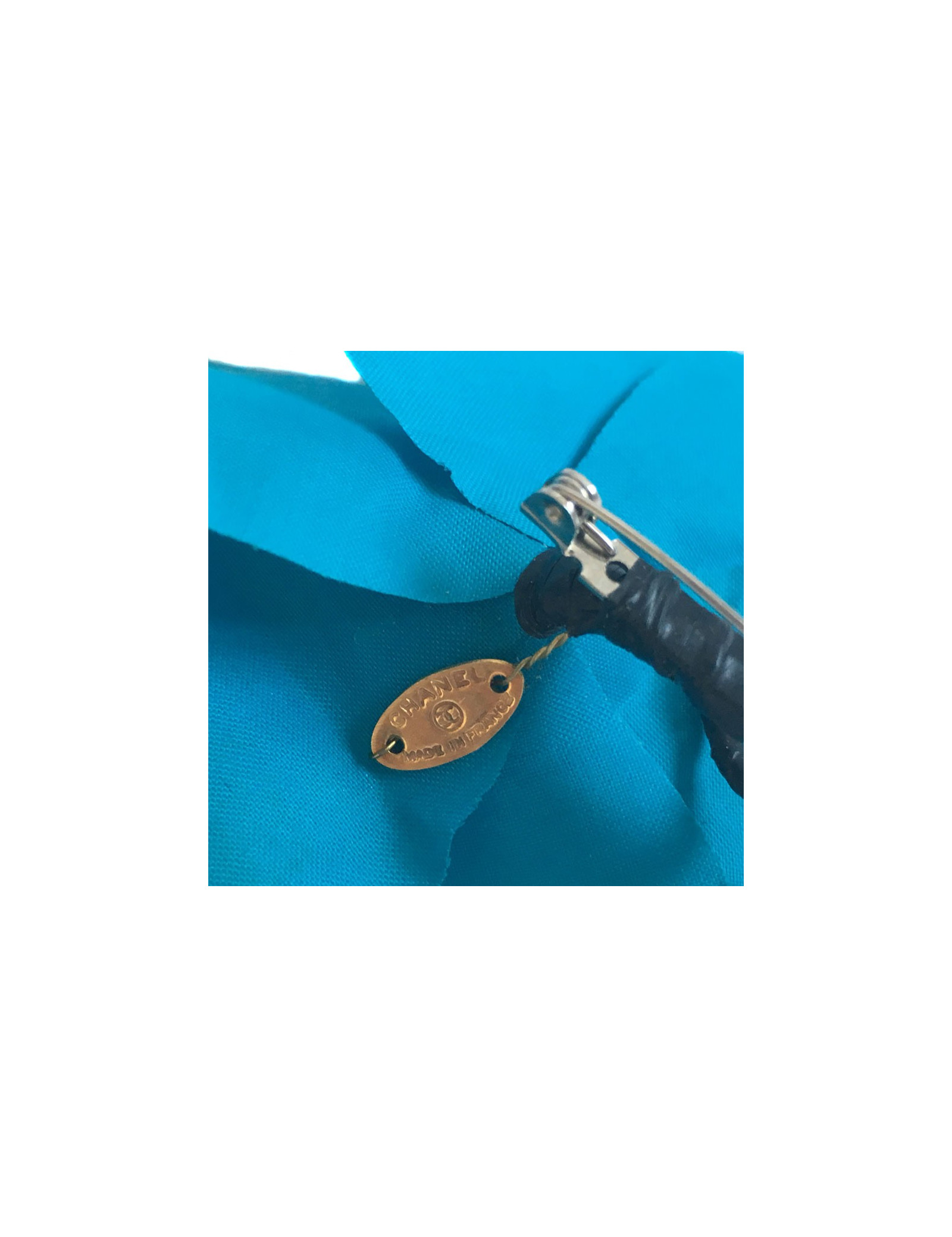 BROCHES Broche CHANEL pendentif Vintage CHANEL 38540 1 200,00 € Broche CHANEL pendentif Vintage turquoise Condition : très bon étatPays de fabrication : FranceMatière : turquoise, métalCouleur : bleu turquoise, doréDimensions : 8 x 9 cmStamp : ouiAnnée : 1985Bijouterie : métal doré plaqué Détails : broche pendentif vintage en très bon état aucune ébréchure ni défaut sur la face avant. Au dos la dorure est passée par... Ajouter au panier