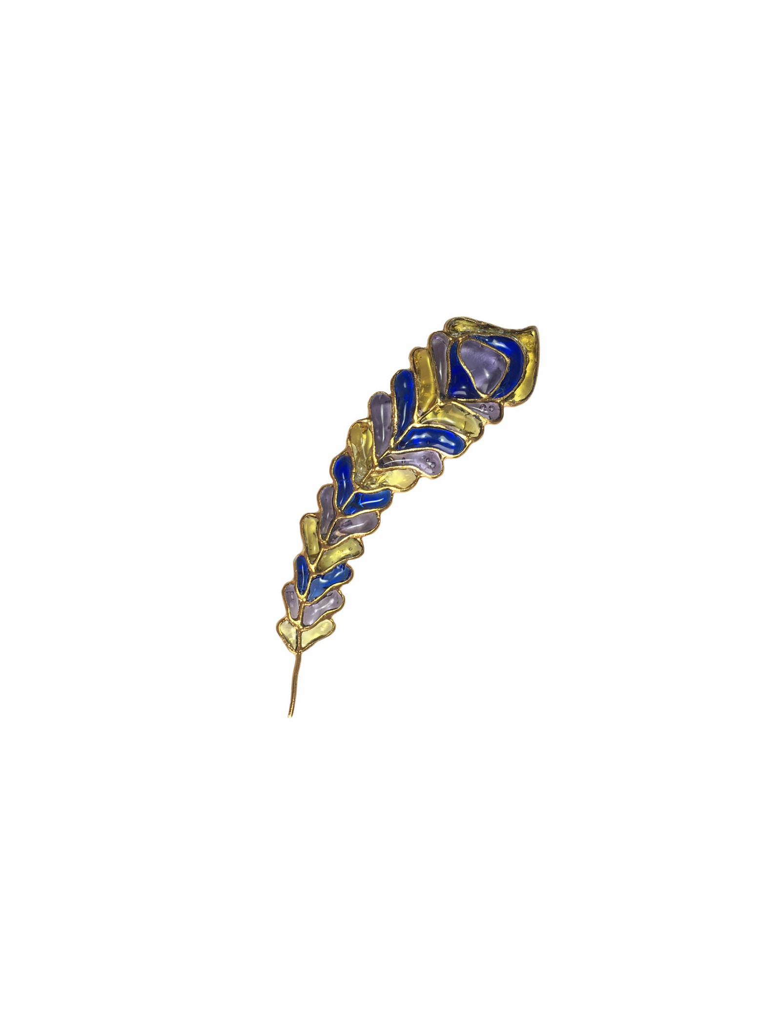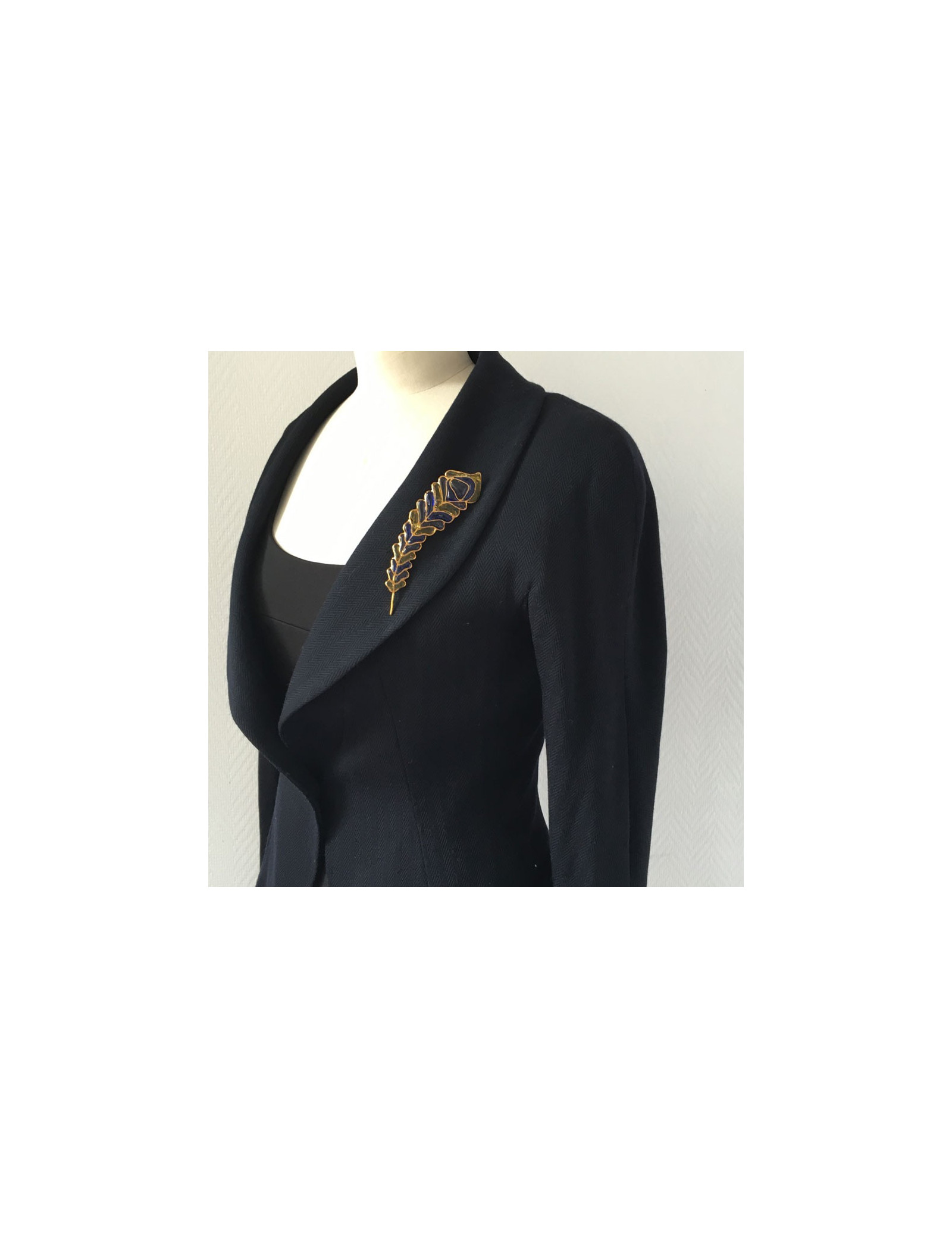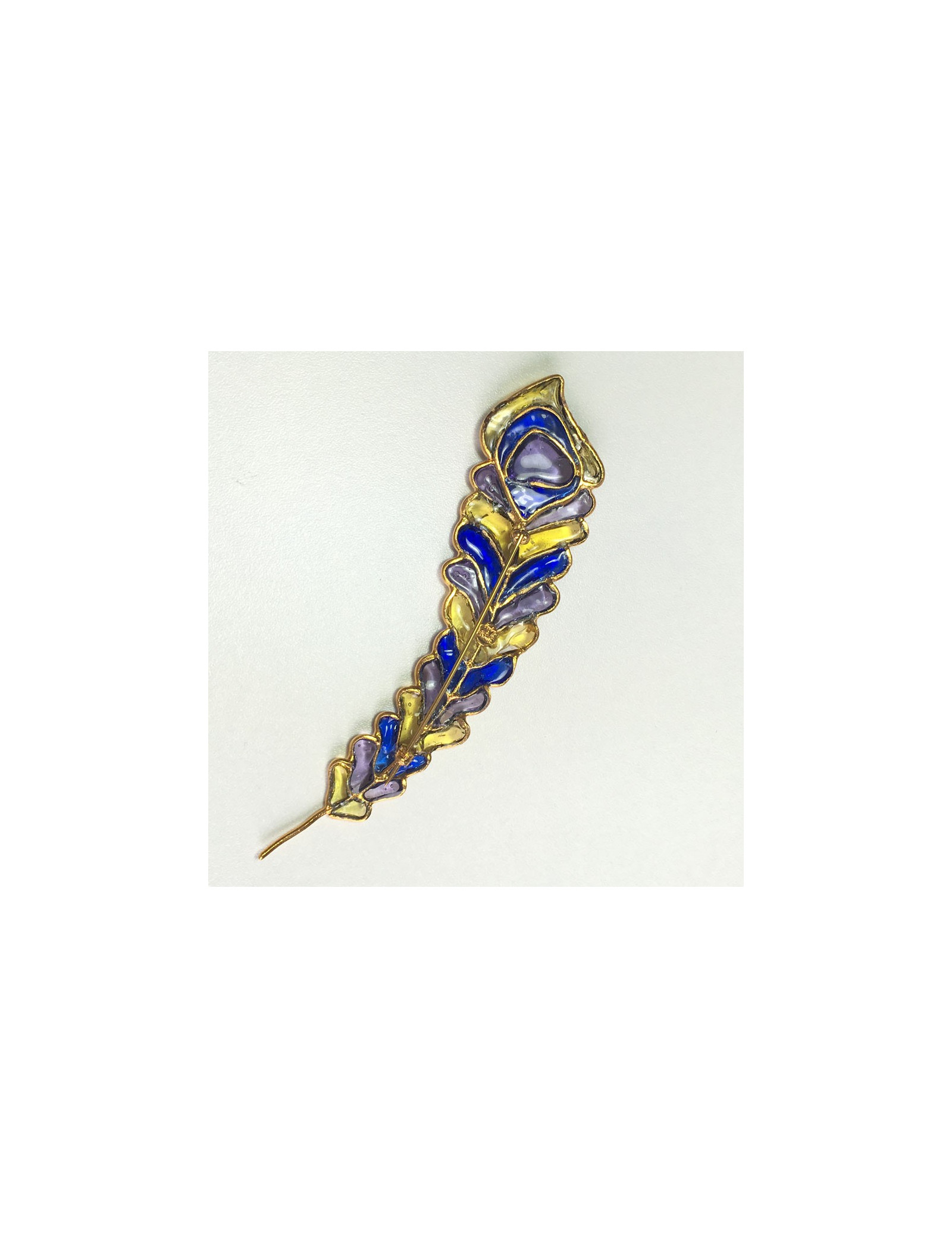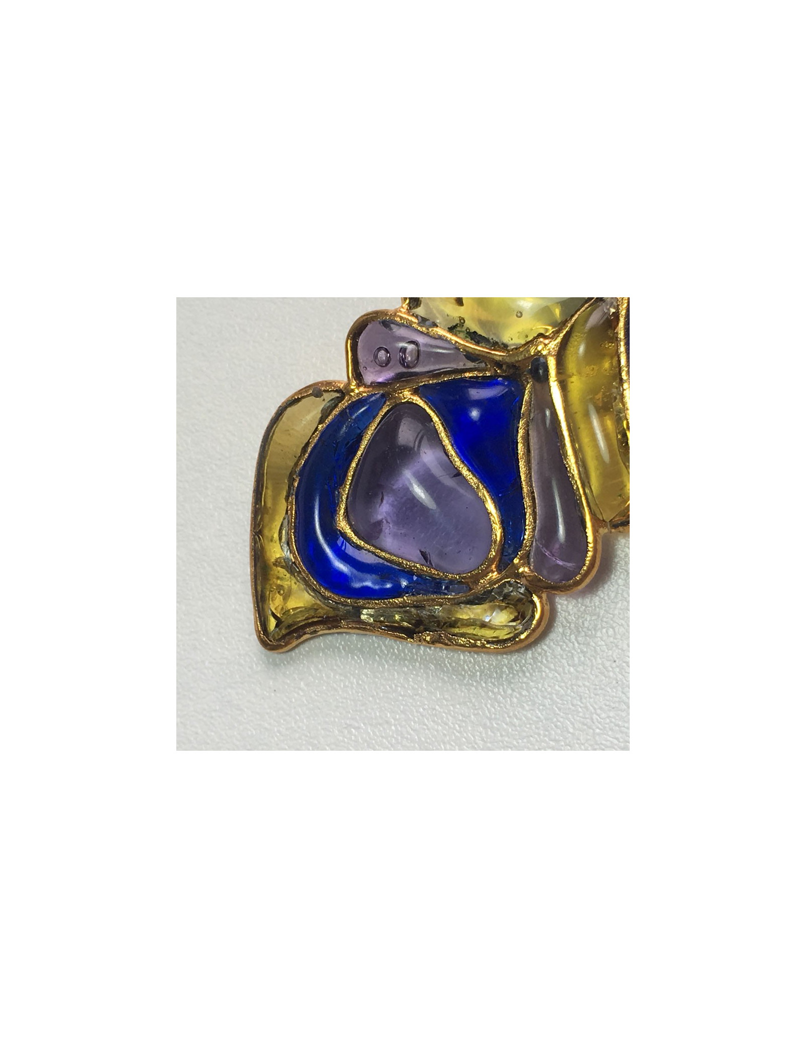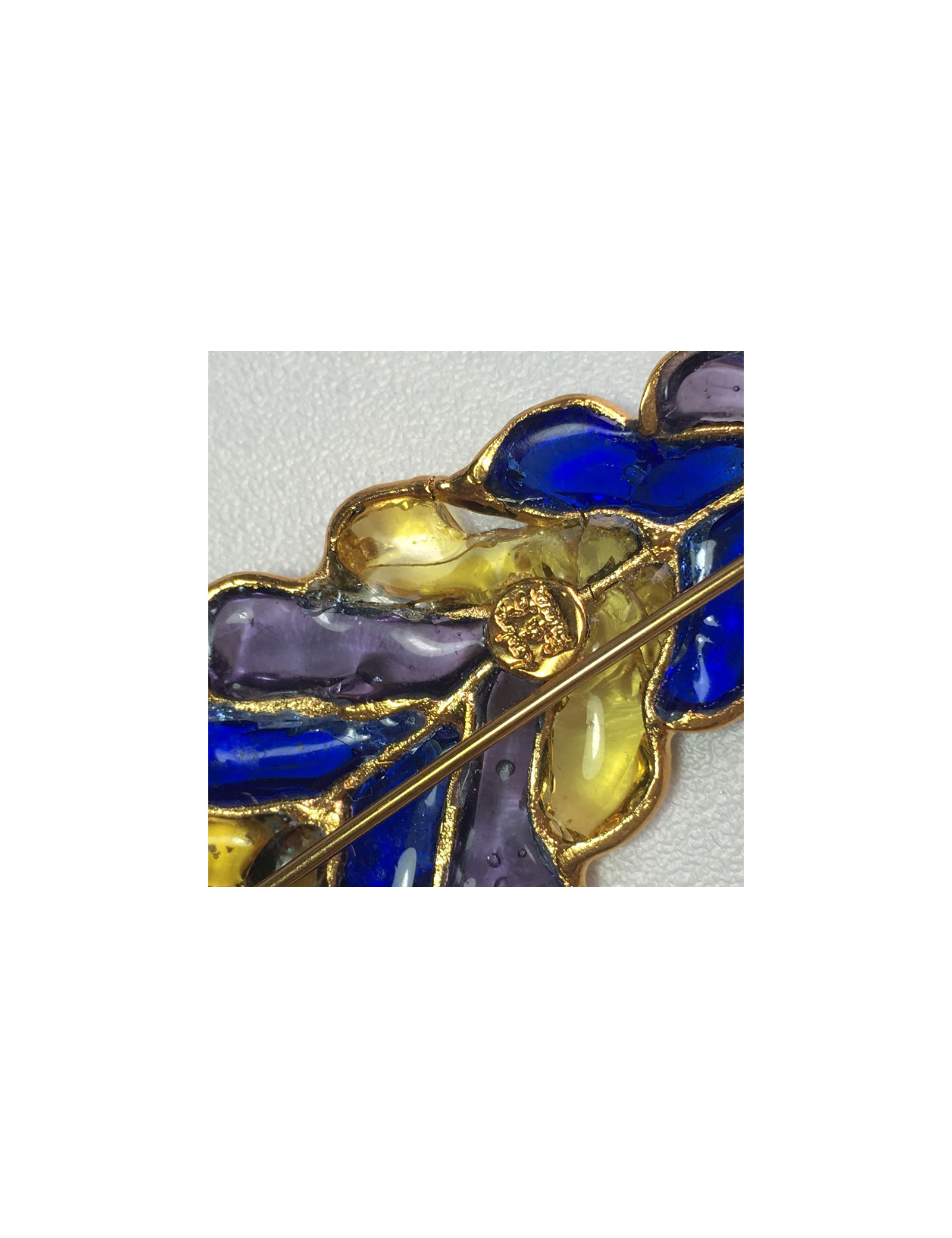Rarissime ! Broche Loulou de la Falaise en pâte de verre, motif "plume de paon".