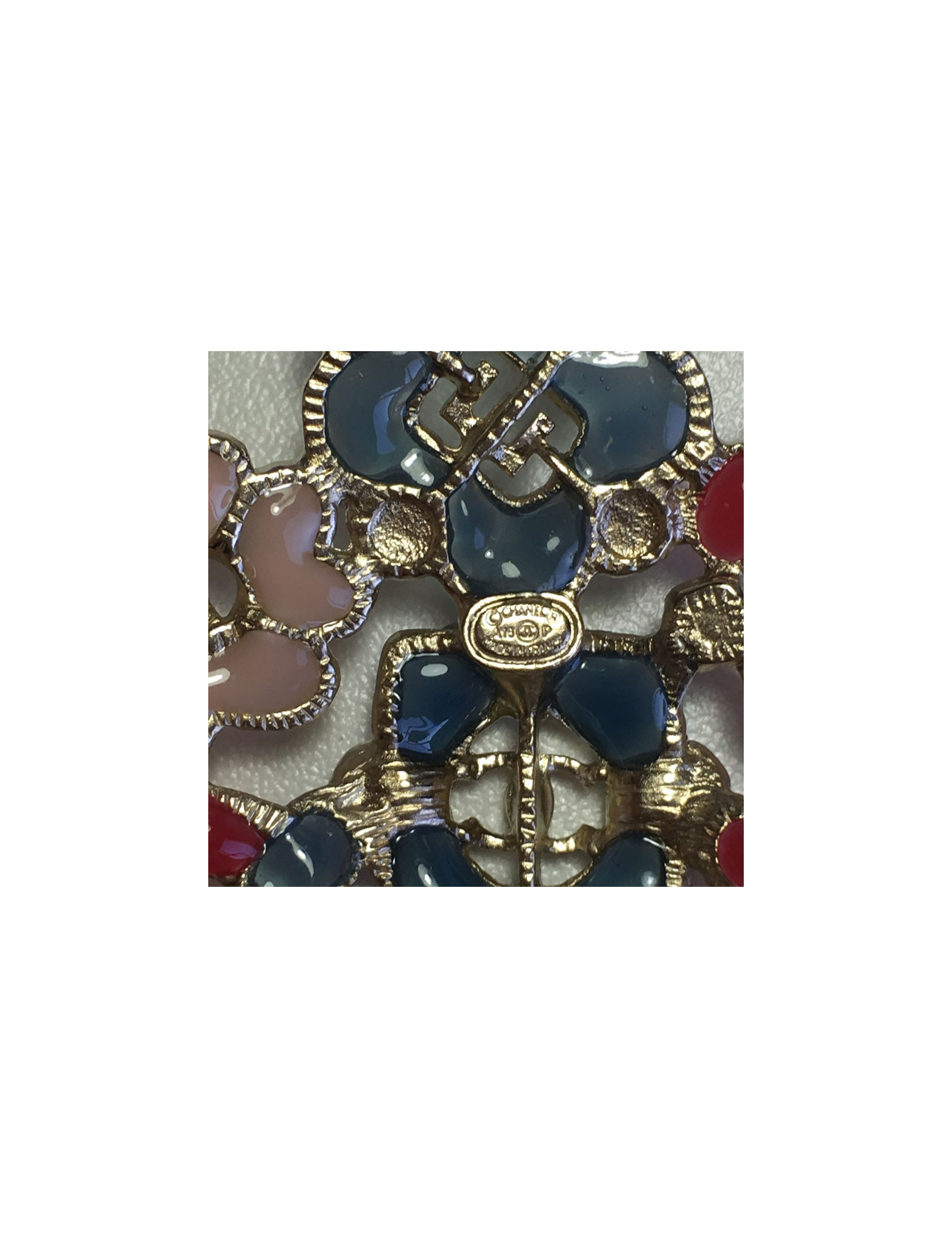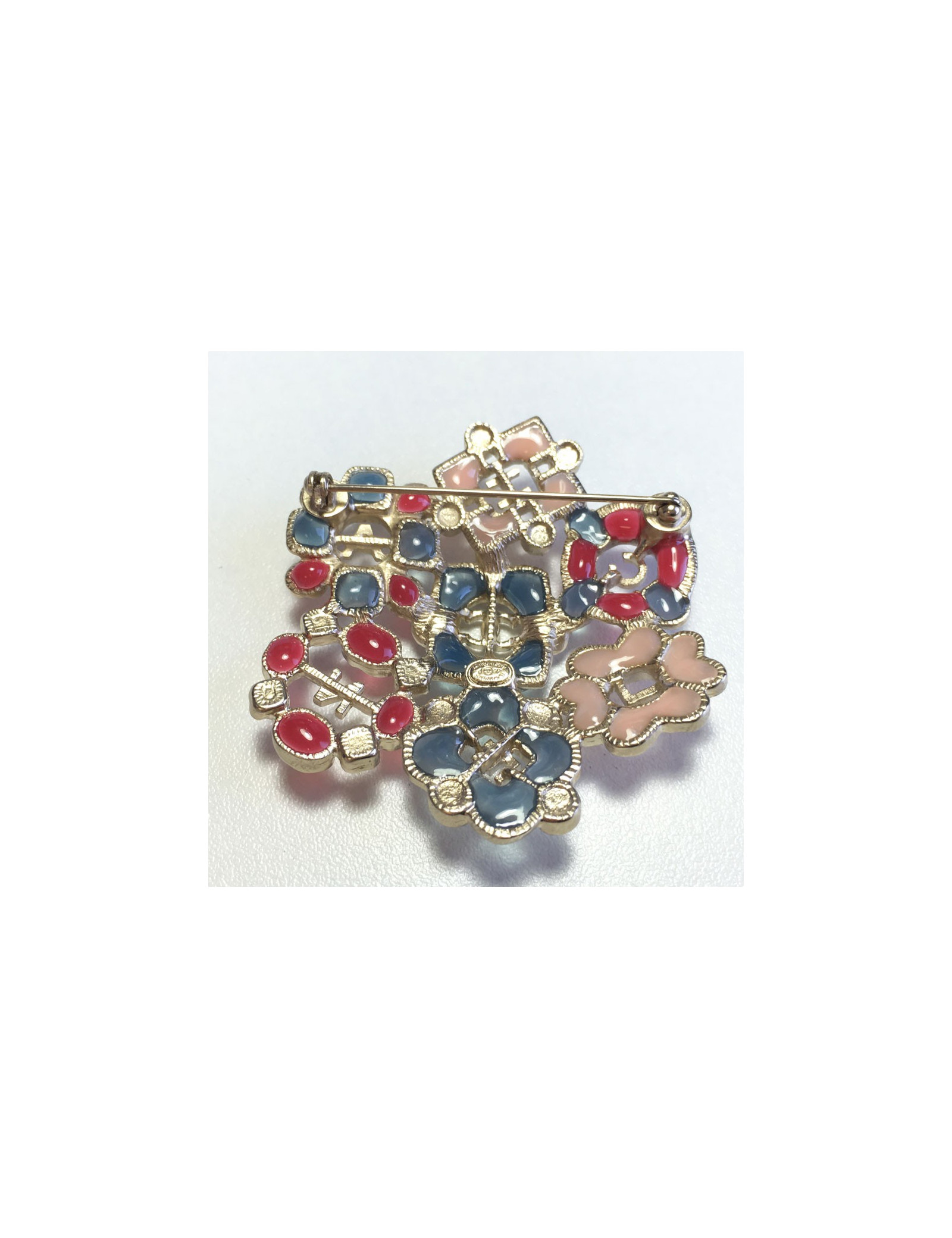 Broche CHANEL en résine multicolore