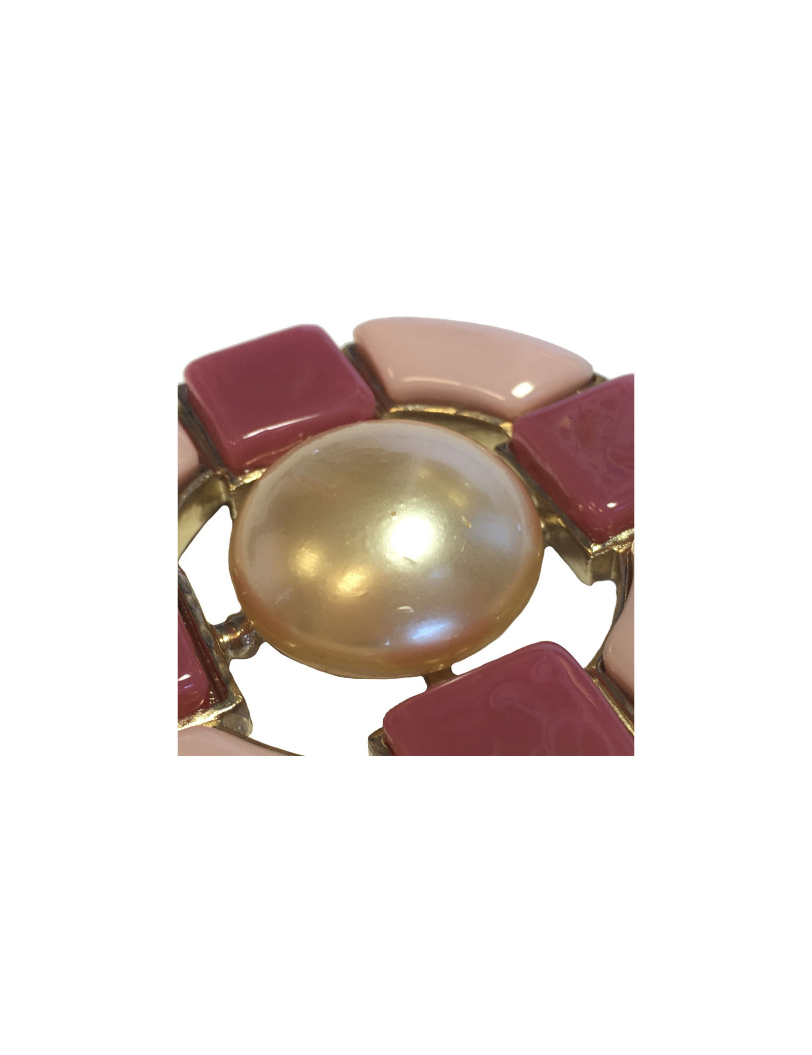 Broche CHANEL perle nacrée et pâte de verre rose