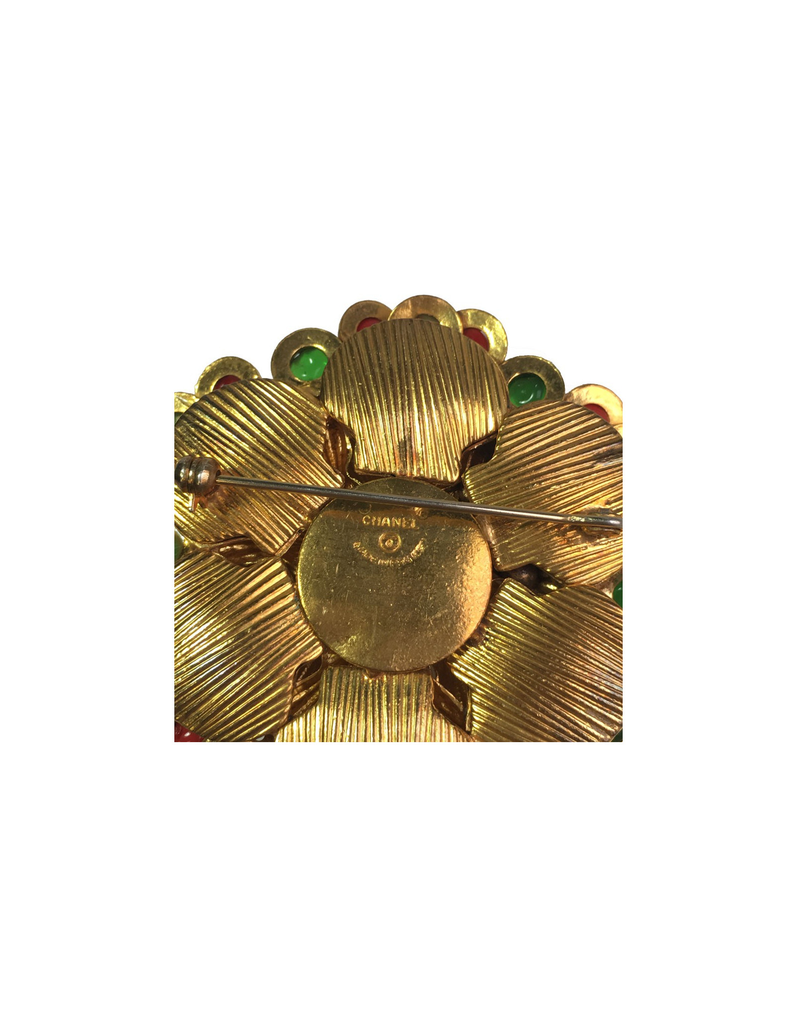 Broche CHANEL Couture en métal doré, et pâte de verre