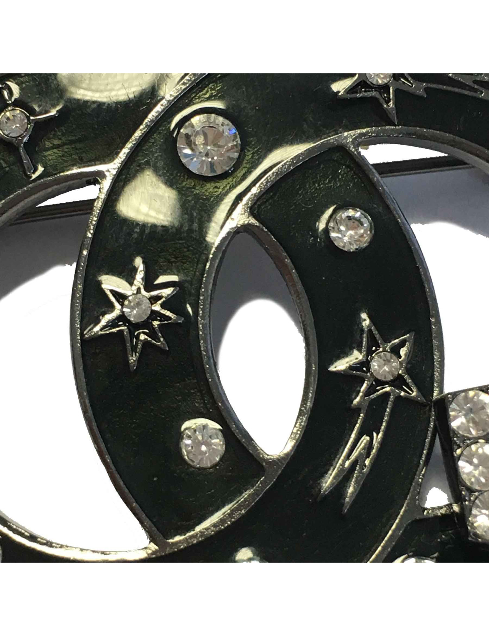 Broche CHANEL CC n° 5 émaillée noire