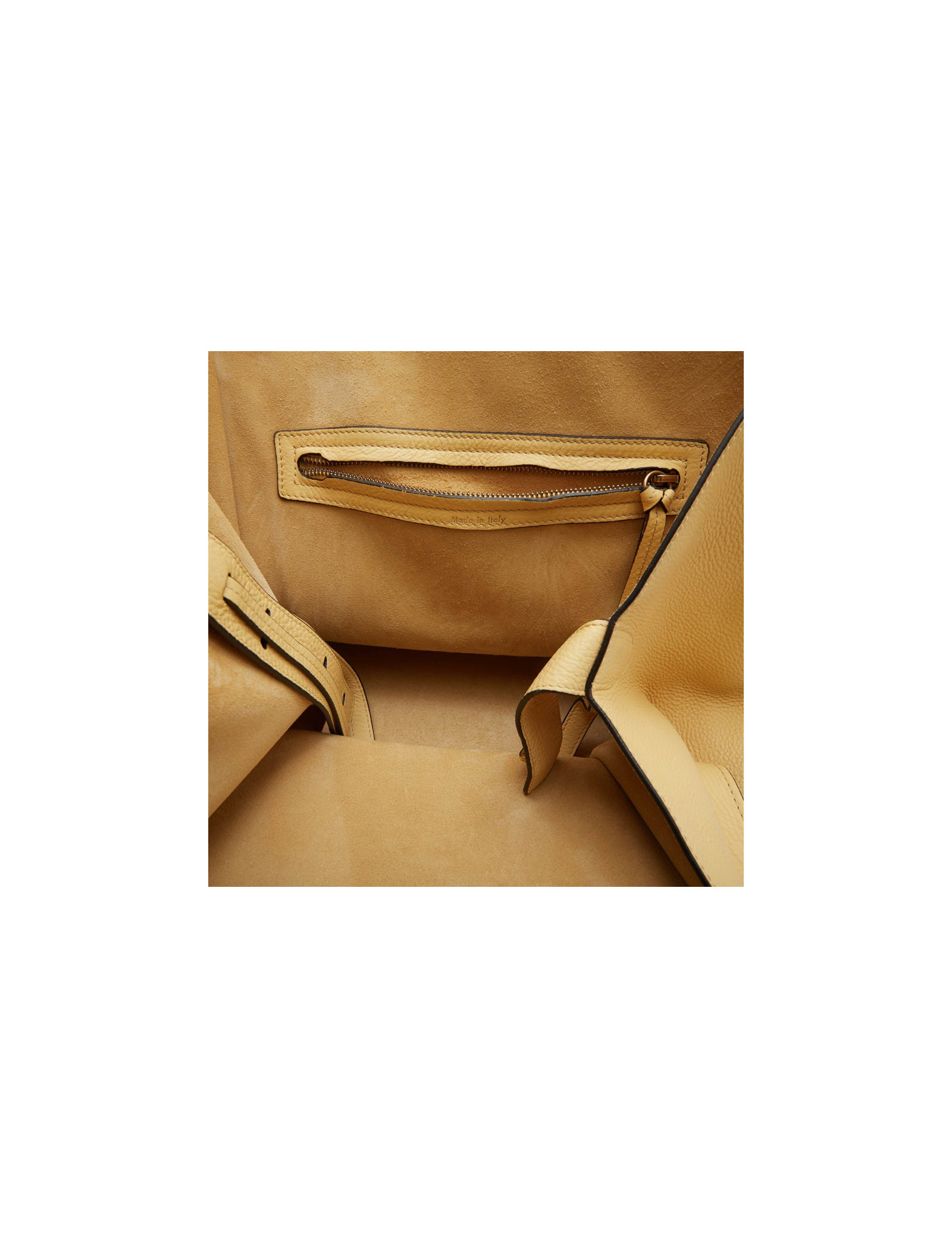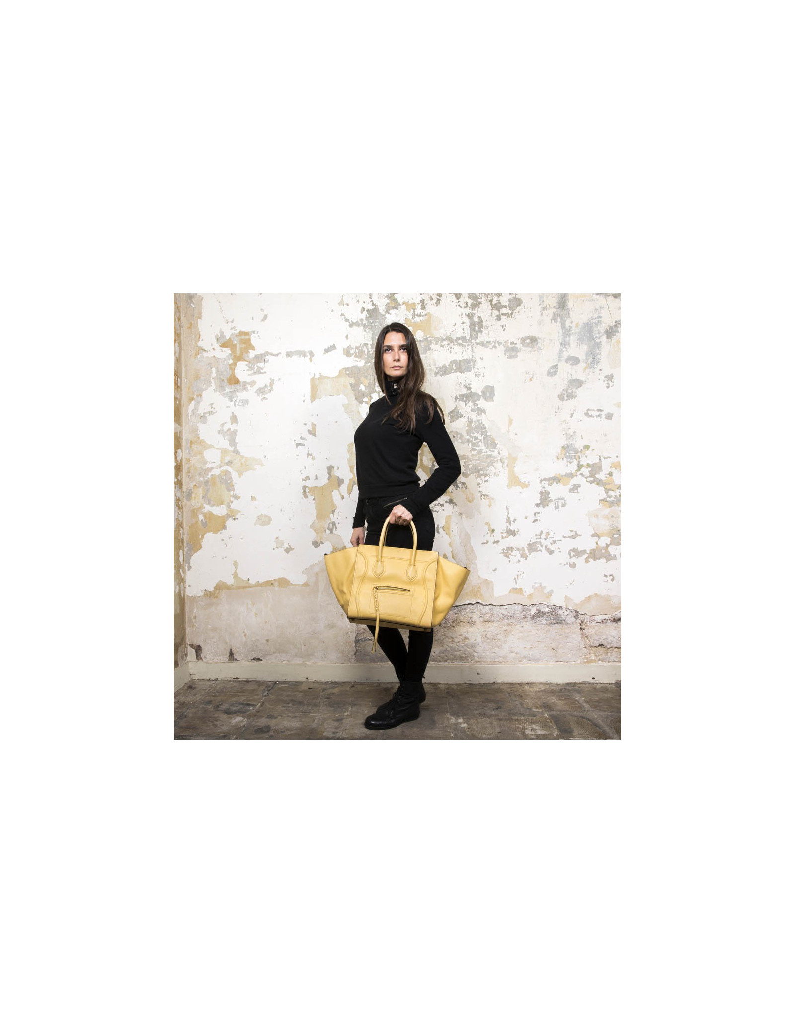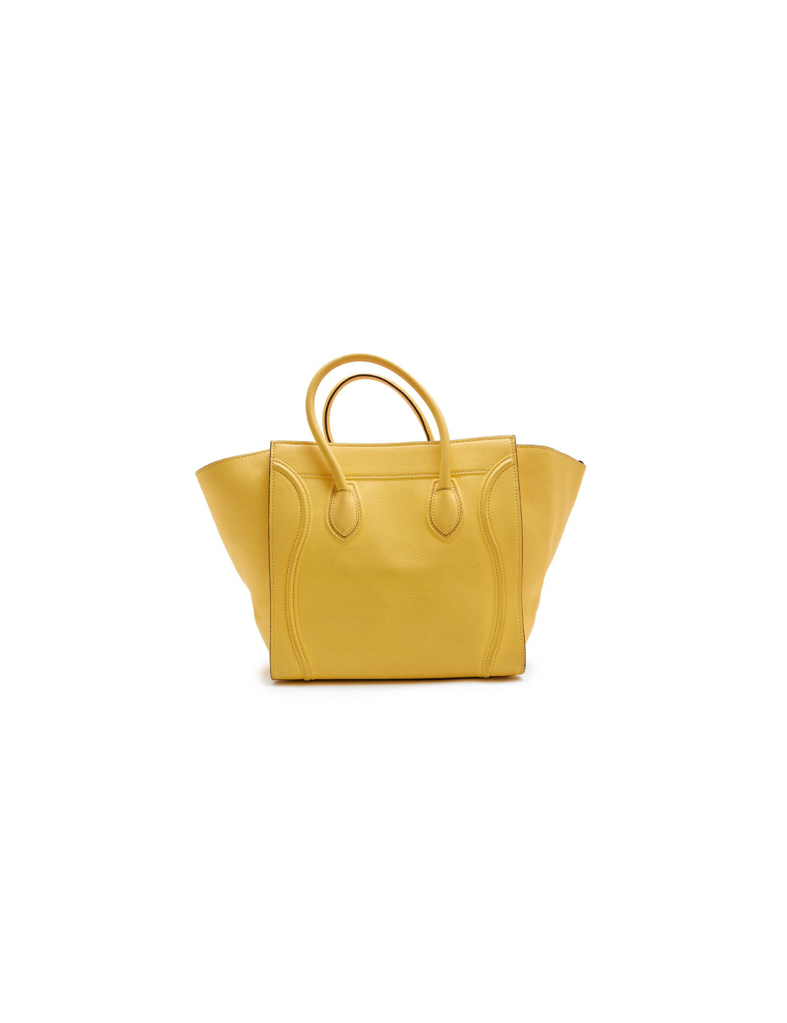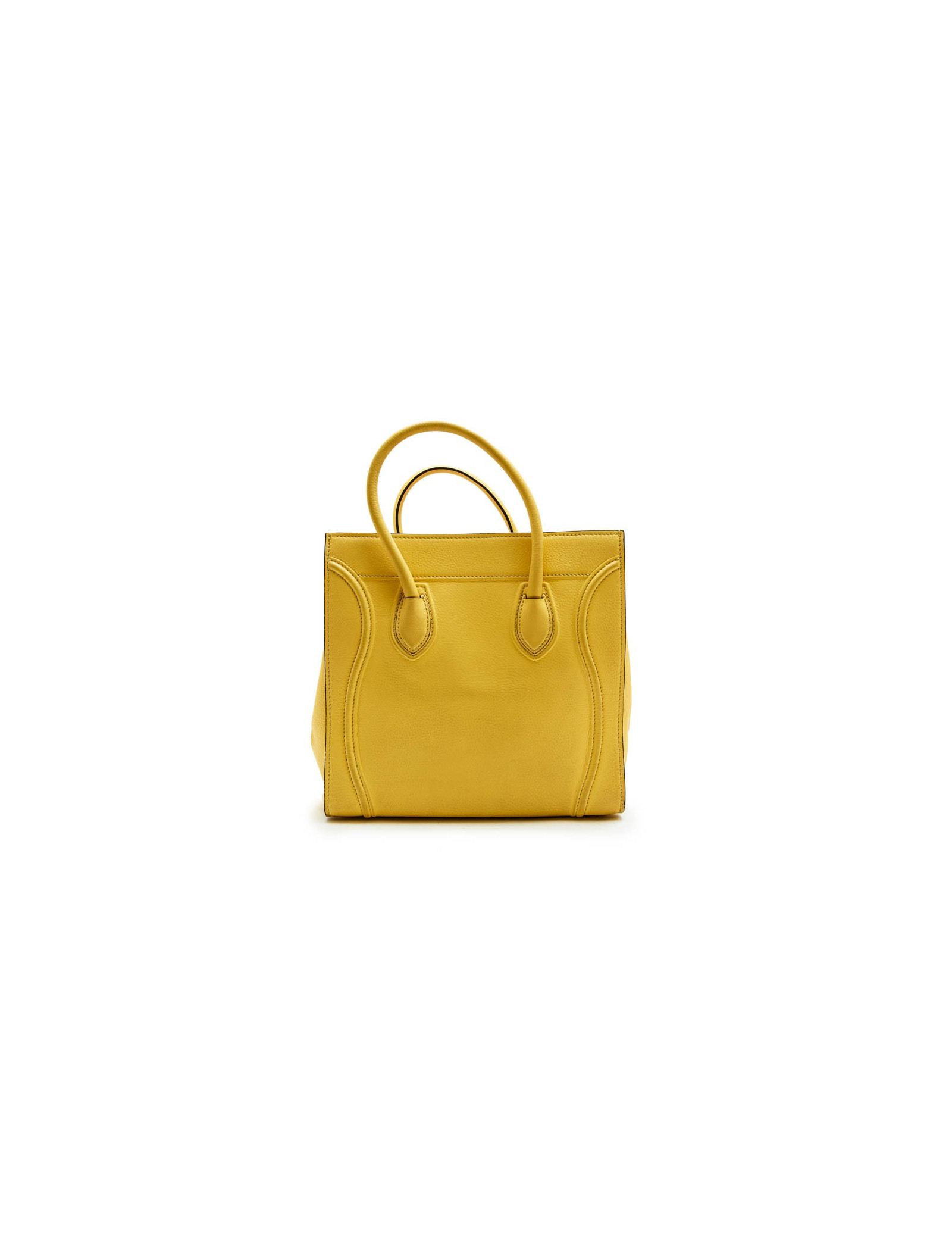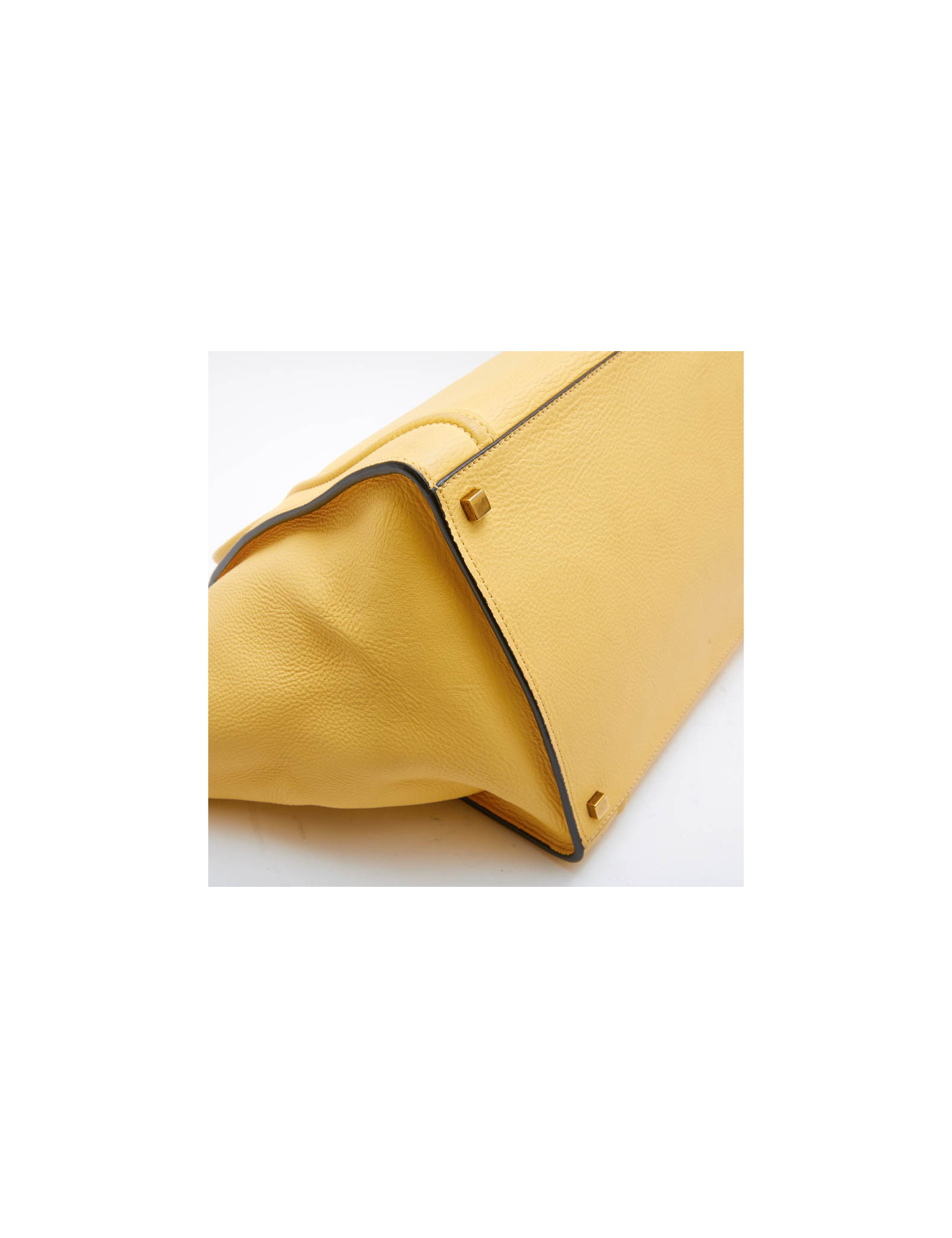 Sac Luggage Celine MINI en cuir grainé jaune. Bijouterie métal doré. L'intérieur est en cuir jaune.  Une poche zippée à l'intérieur et une à l'extérieur. Porté main. Numéro de série: U-CU-0133.