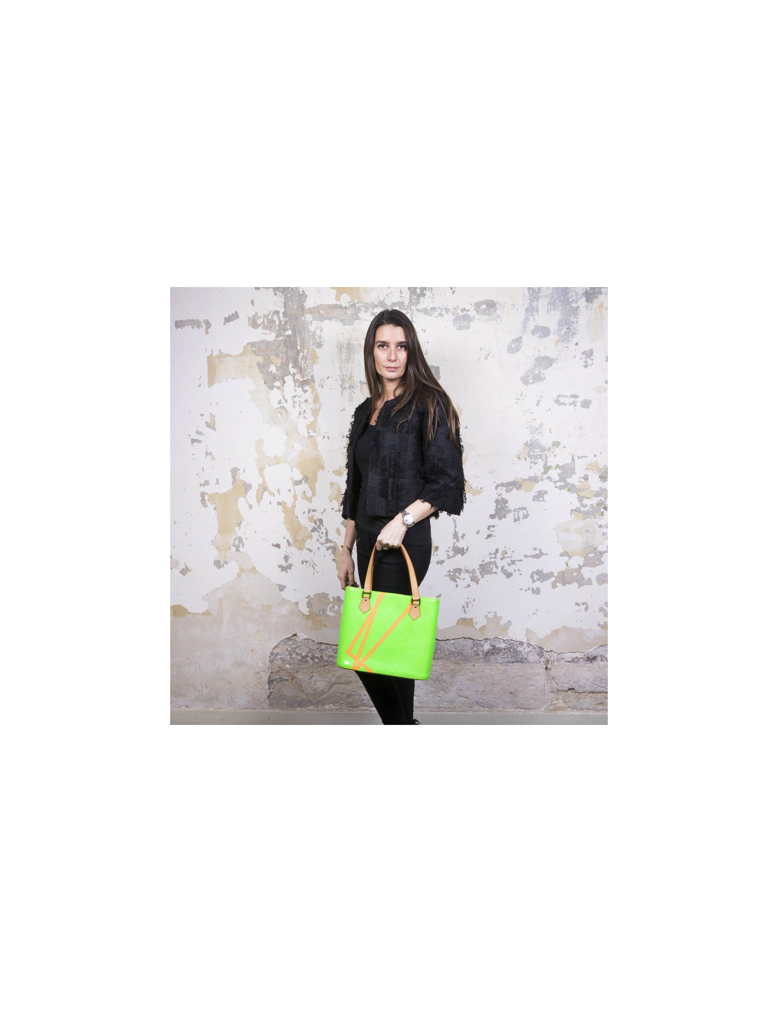 Sac Houston LOUIS VUITTON cuir verni fluo vert