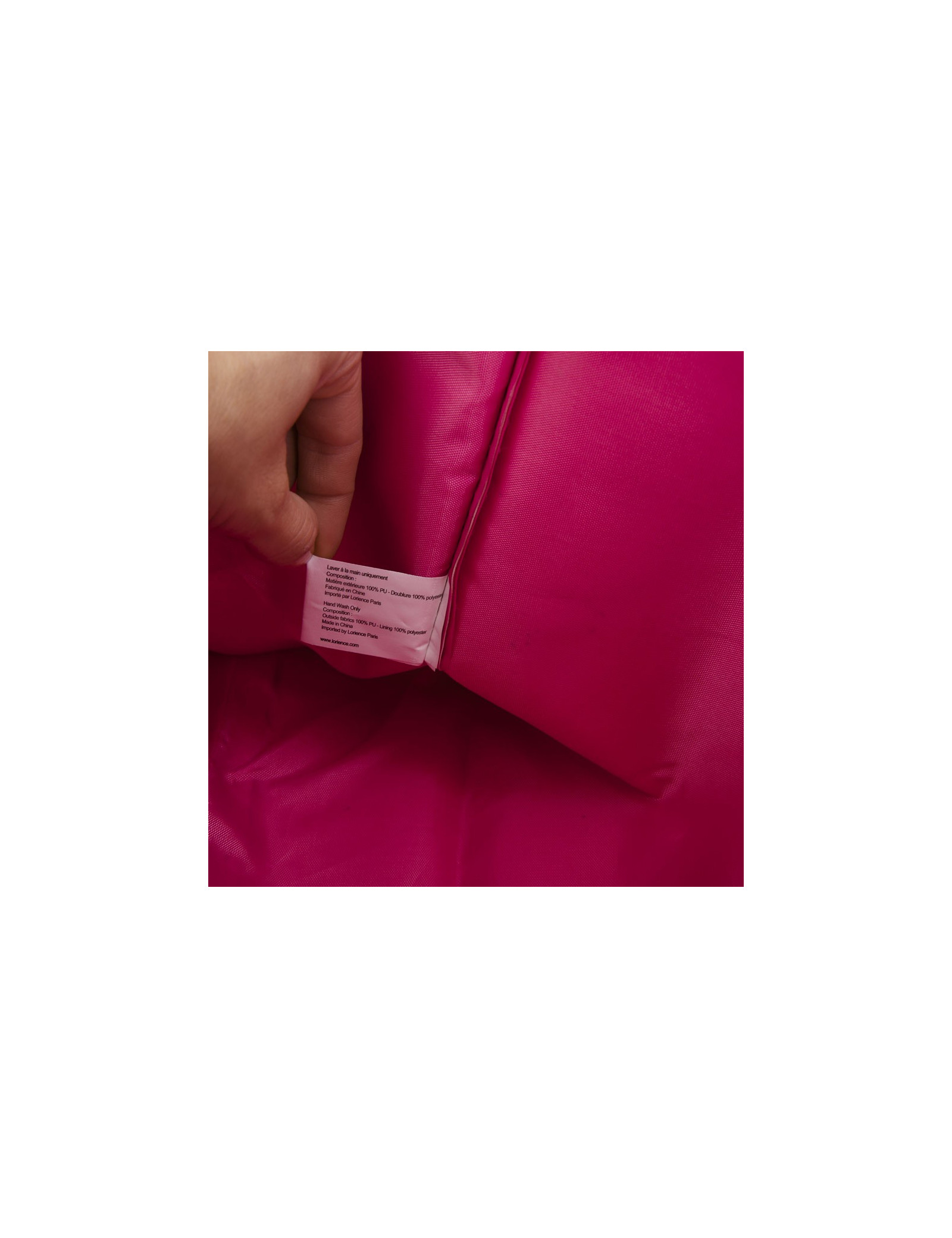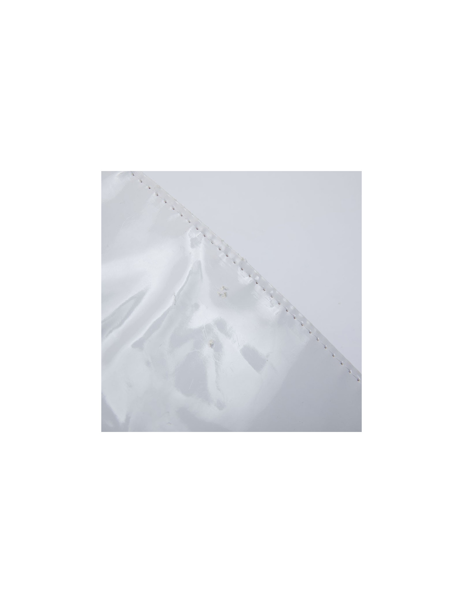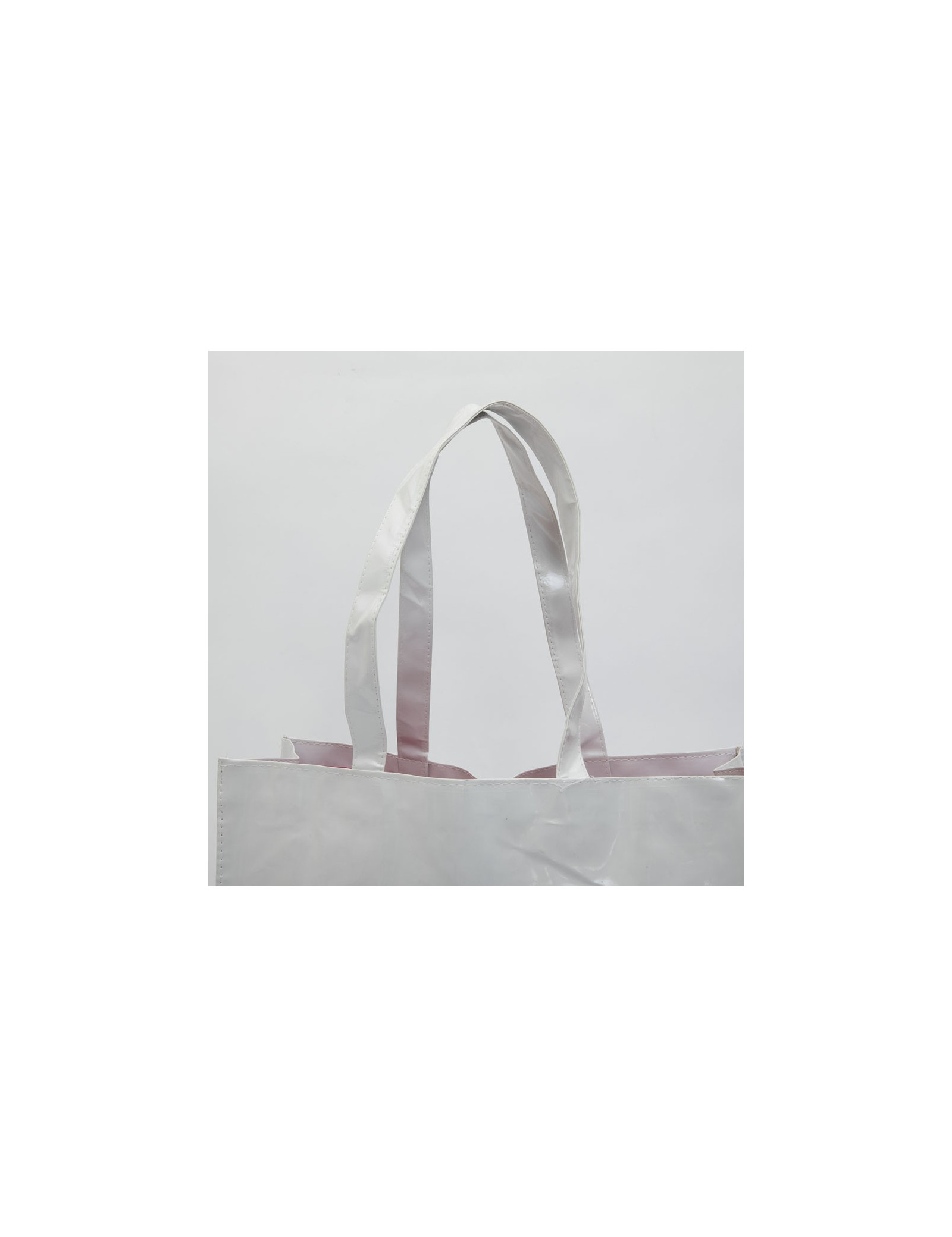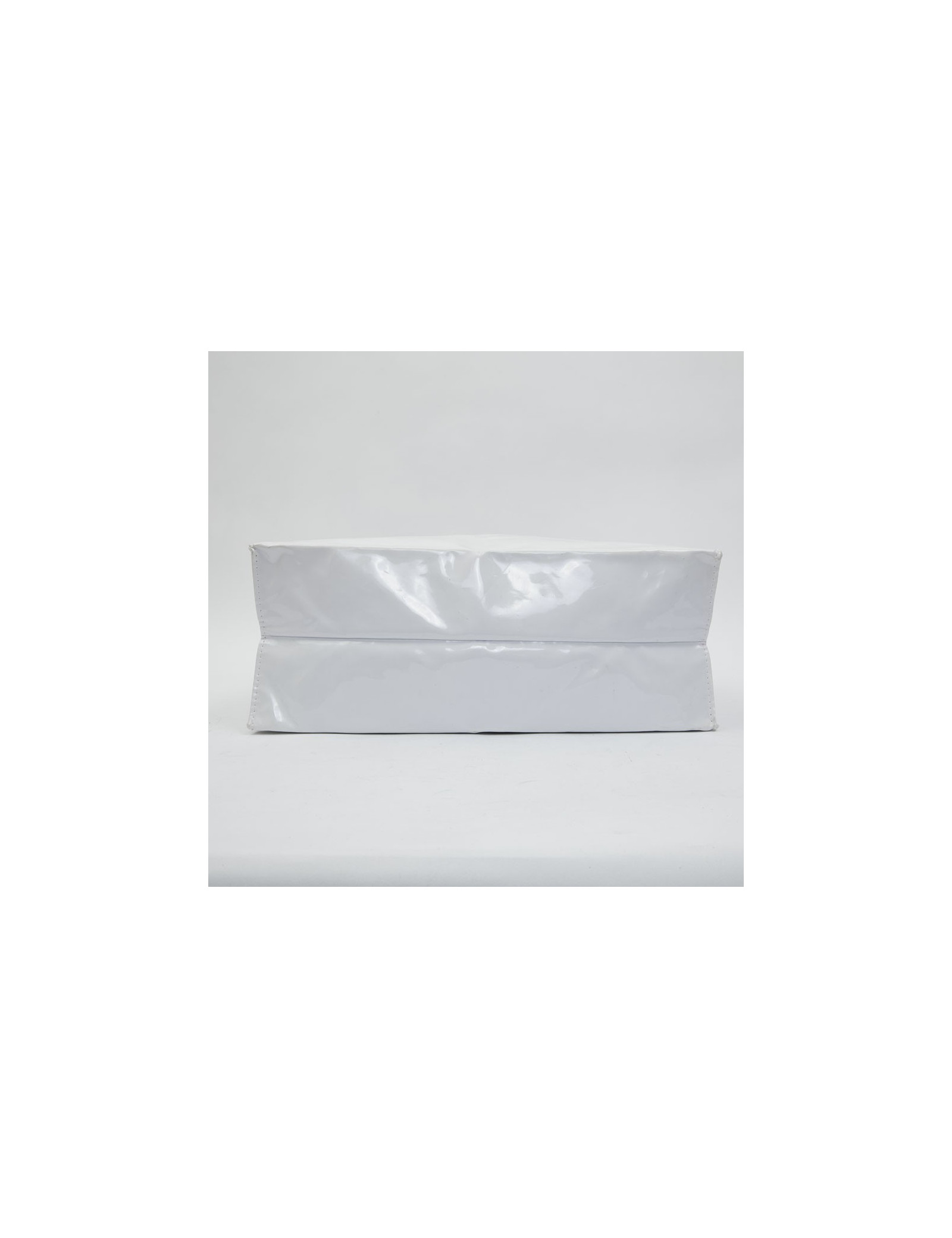 Sac cabas Courrèges en toile vernie blanche. Signature Courrèges rose fushia. Doublure intérieure en toile rose.