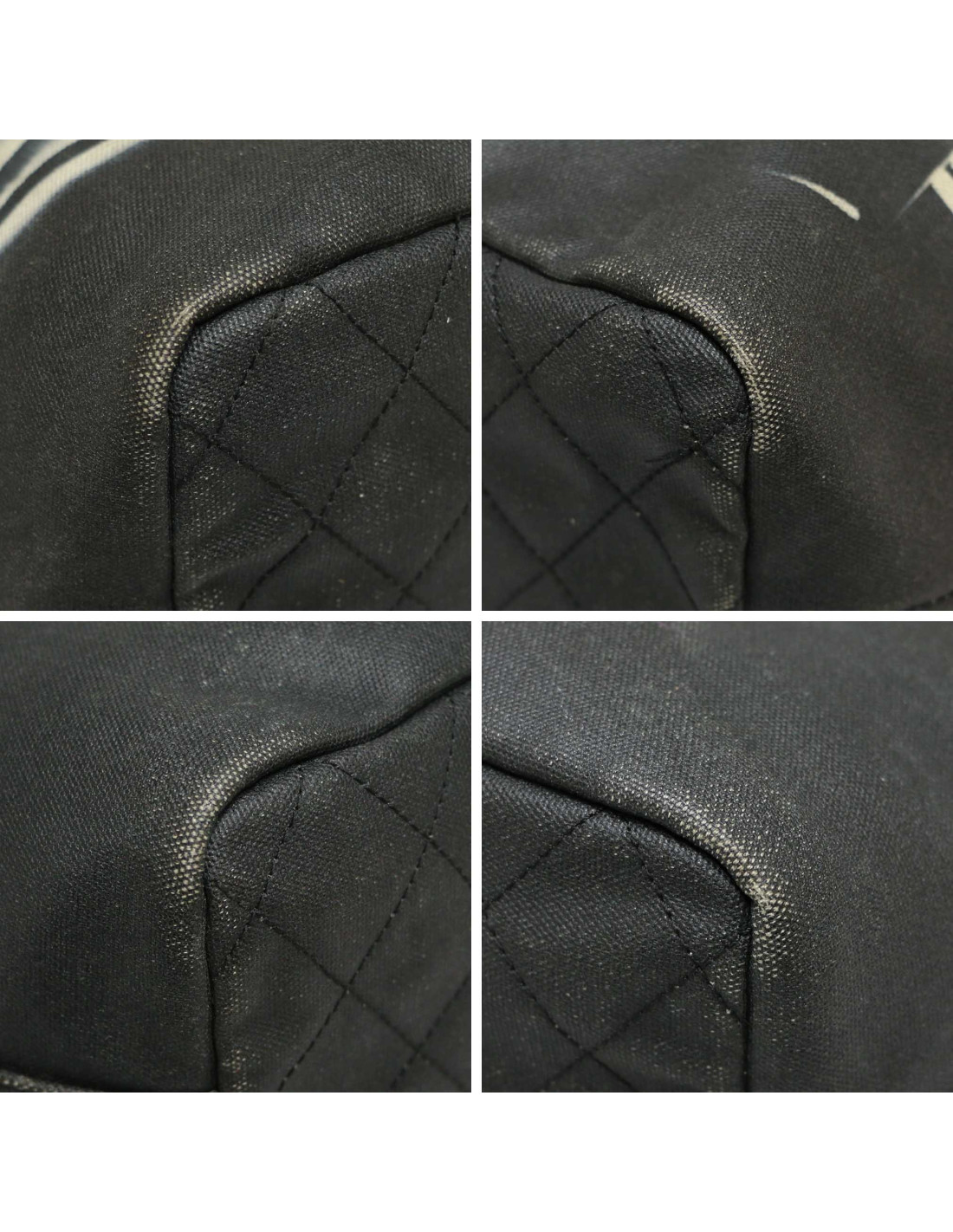 Détails : Édition limitée dessinée par Karl Lagerfeld en hommage au projet d'art mobile de Chanel avec l'architecte Zaha Hadid. Toile à motif imprimé gris, présentant des décolorations par endroits (voir photo bas du sac) et deux taches visibles sur l'avant. Il se porte à l'épaule et est agrémenté d'un charm porte-étiquette. Une poche zippée intérieure.
