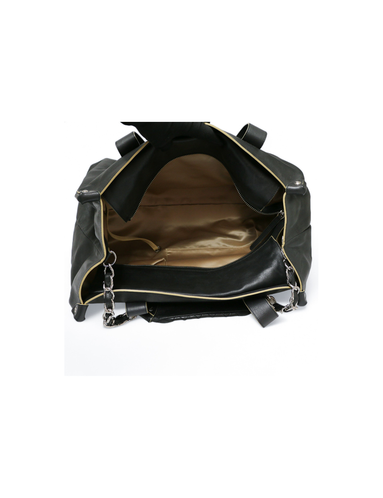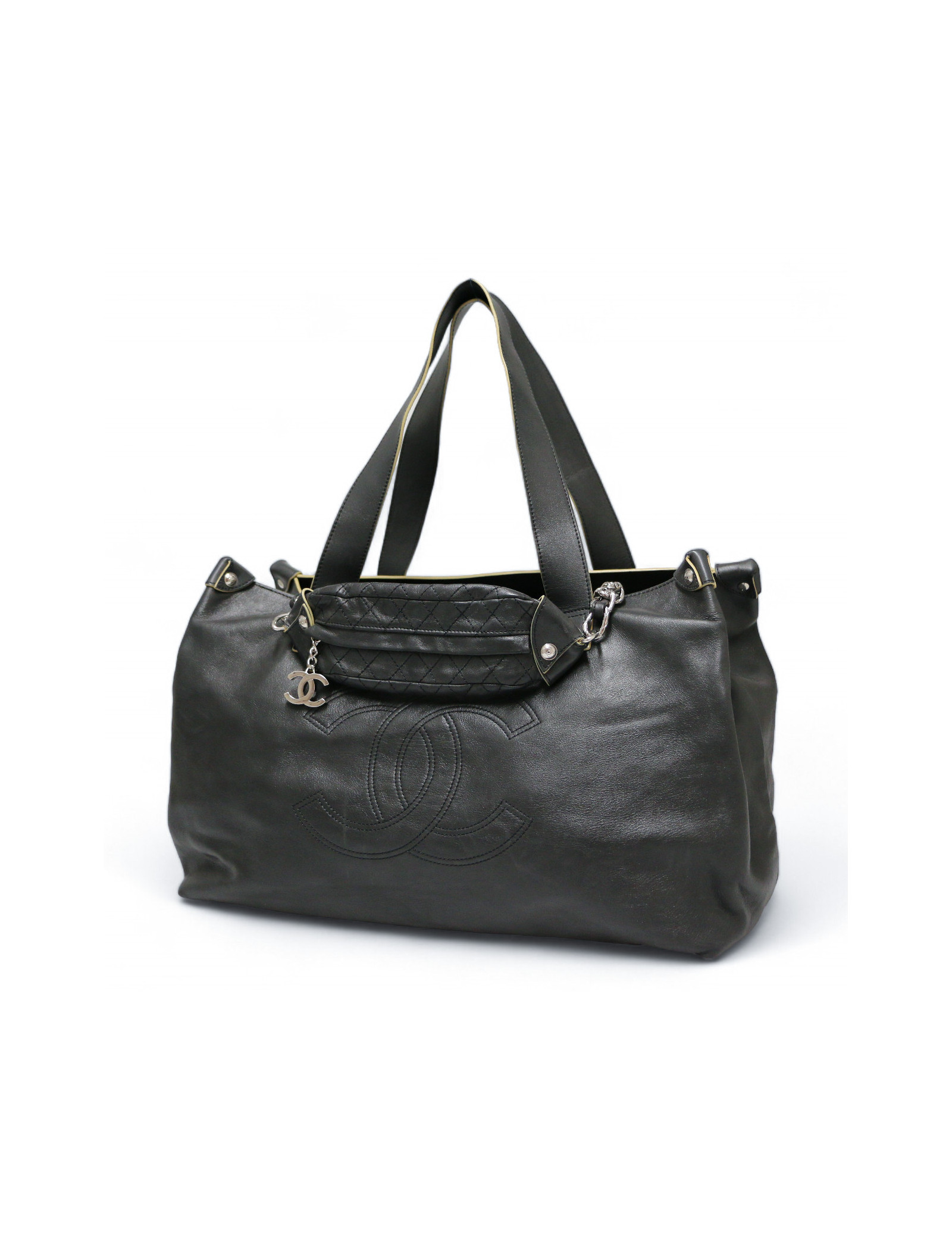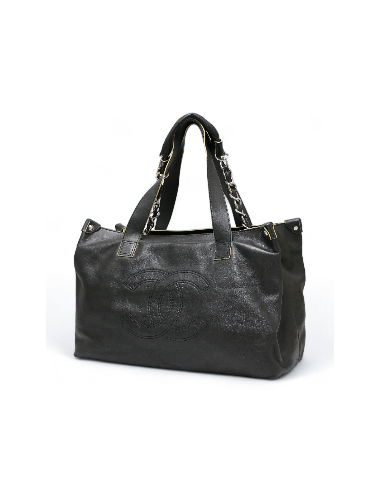 Détails : fermeture zippée, trois petites poches intérieures dont une zippée. Deux anses en cuir et une anse en chaîne argenté et cuir comportement une petite pochette zippée matelassée agrémentée d'un charms CC. Gros logo CC sur le devant. Bon état, quelques traces sur le cuir, peu visibles