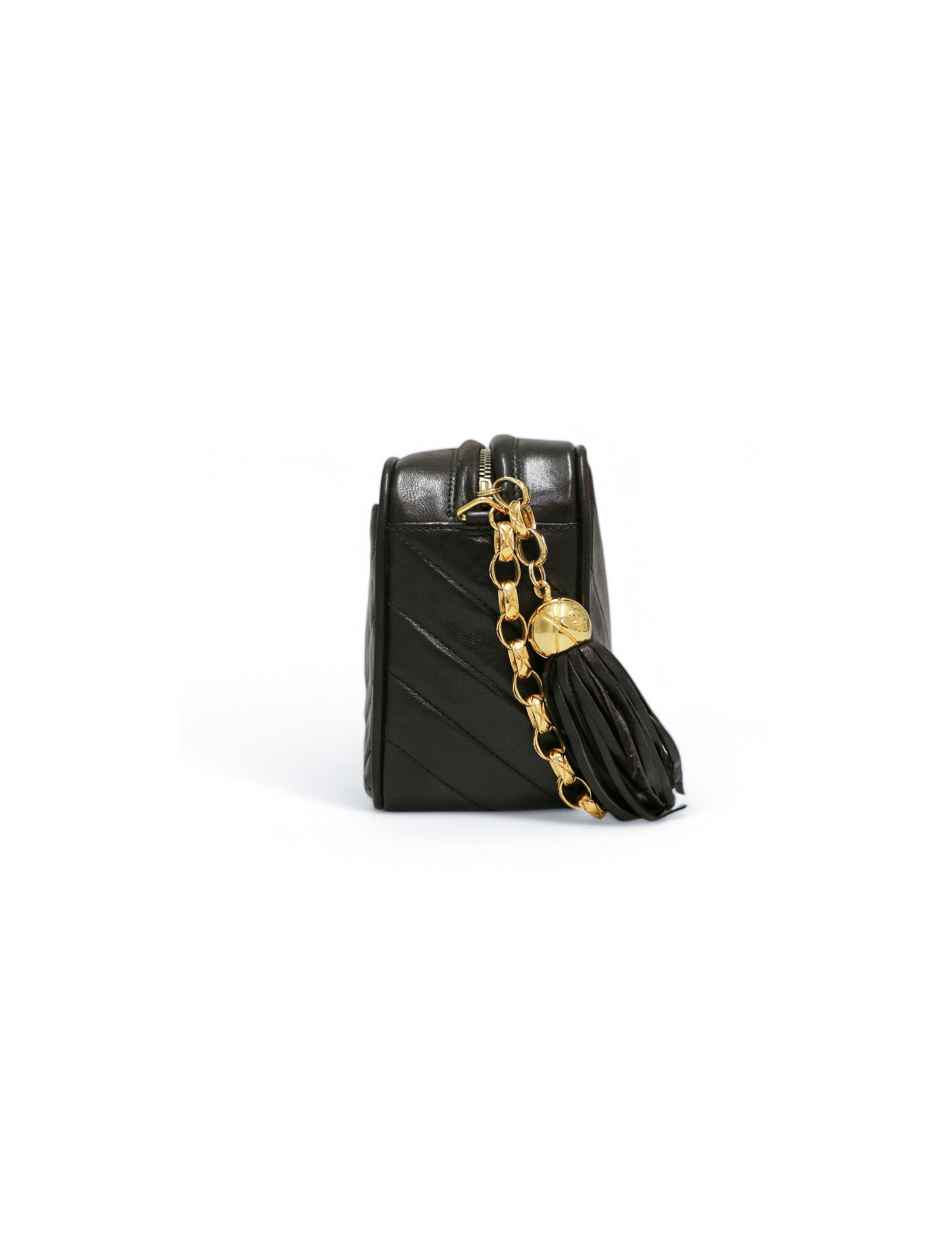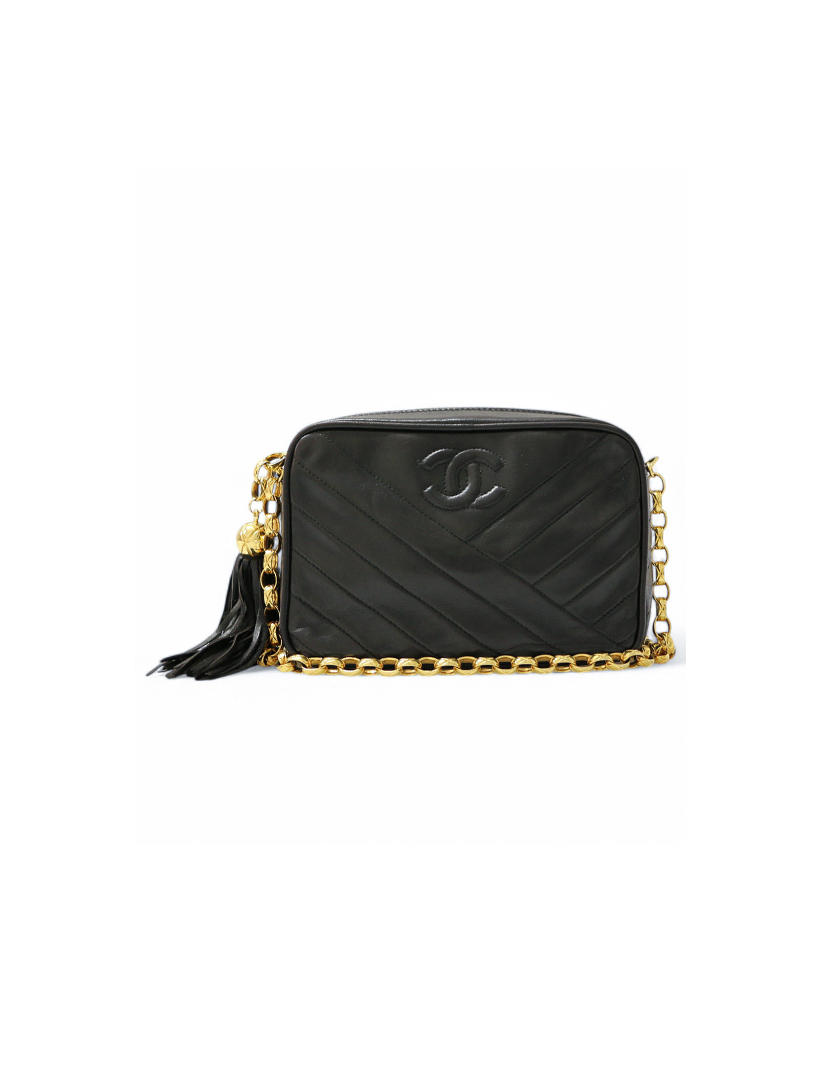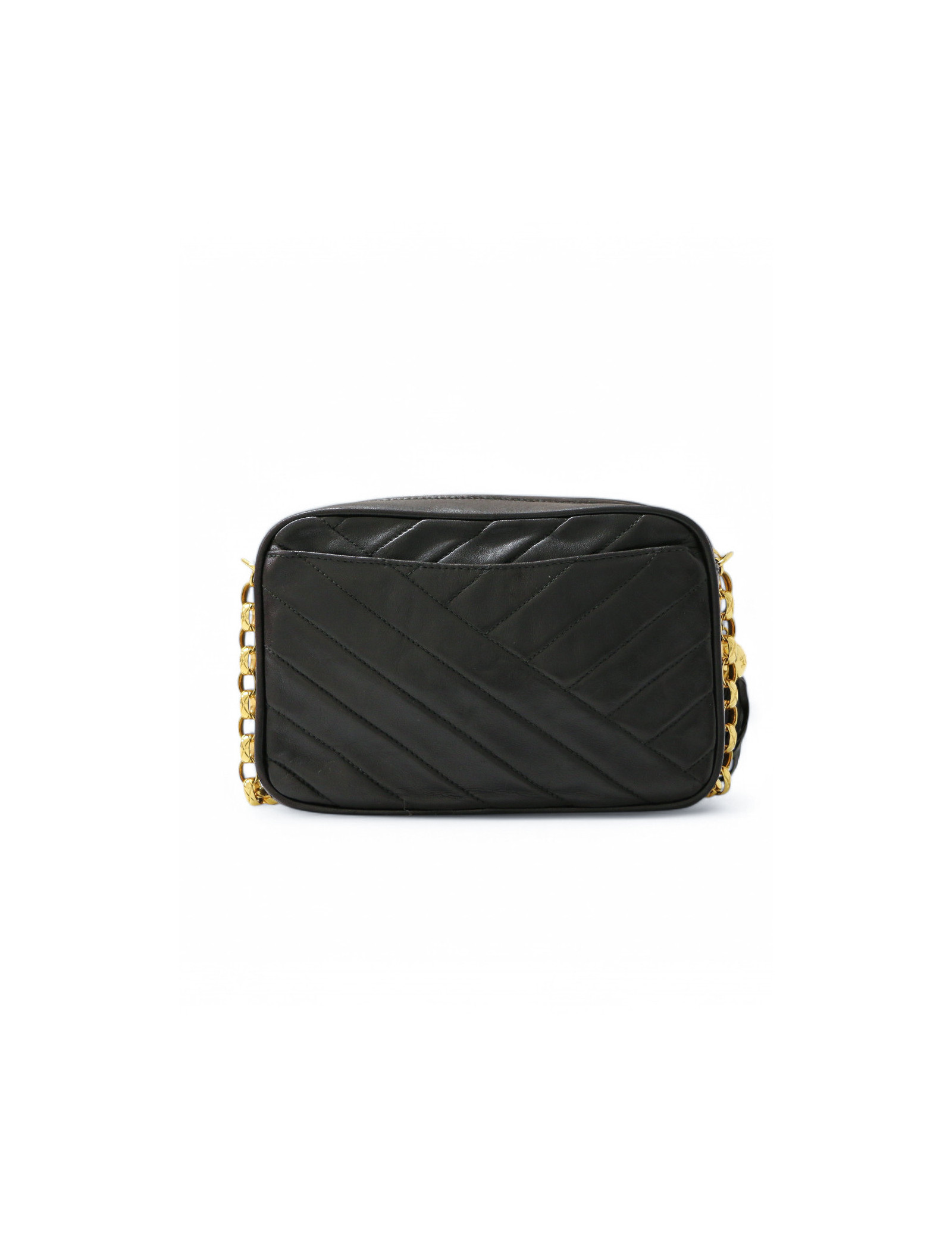 Mini Caméra CHANEL chevron cuir d'agneau noir