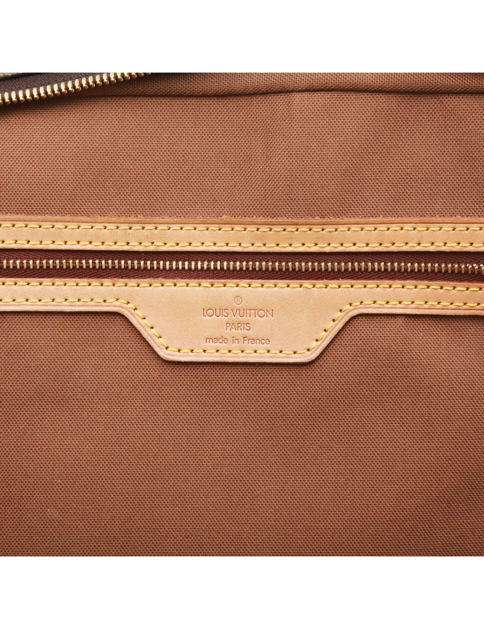 Vintage. Cartable Louis Vuitton en toile monogram marron. Bijouterie dorée. Fermeture zippée. L'intérieur est en toile marron. Made in France. Cadenas mais pas de tirette, ni de clochette. En très bon état. Le cuir naturel est patiné.