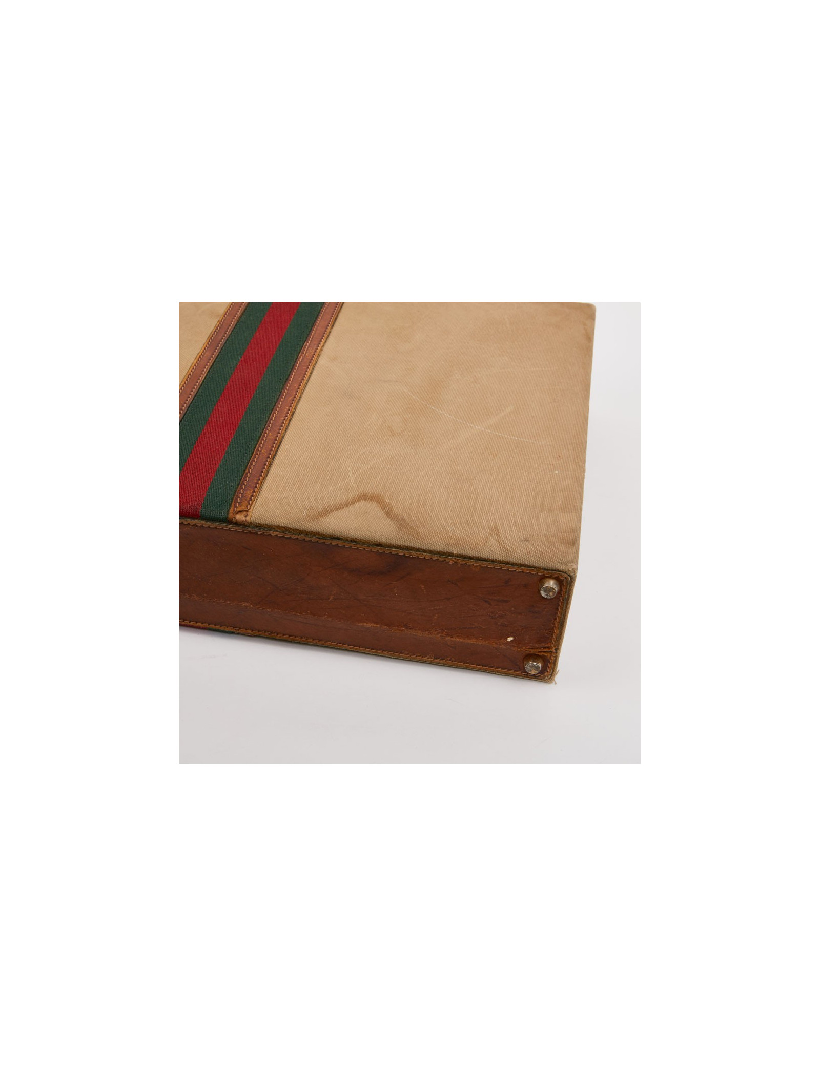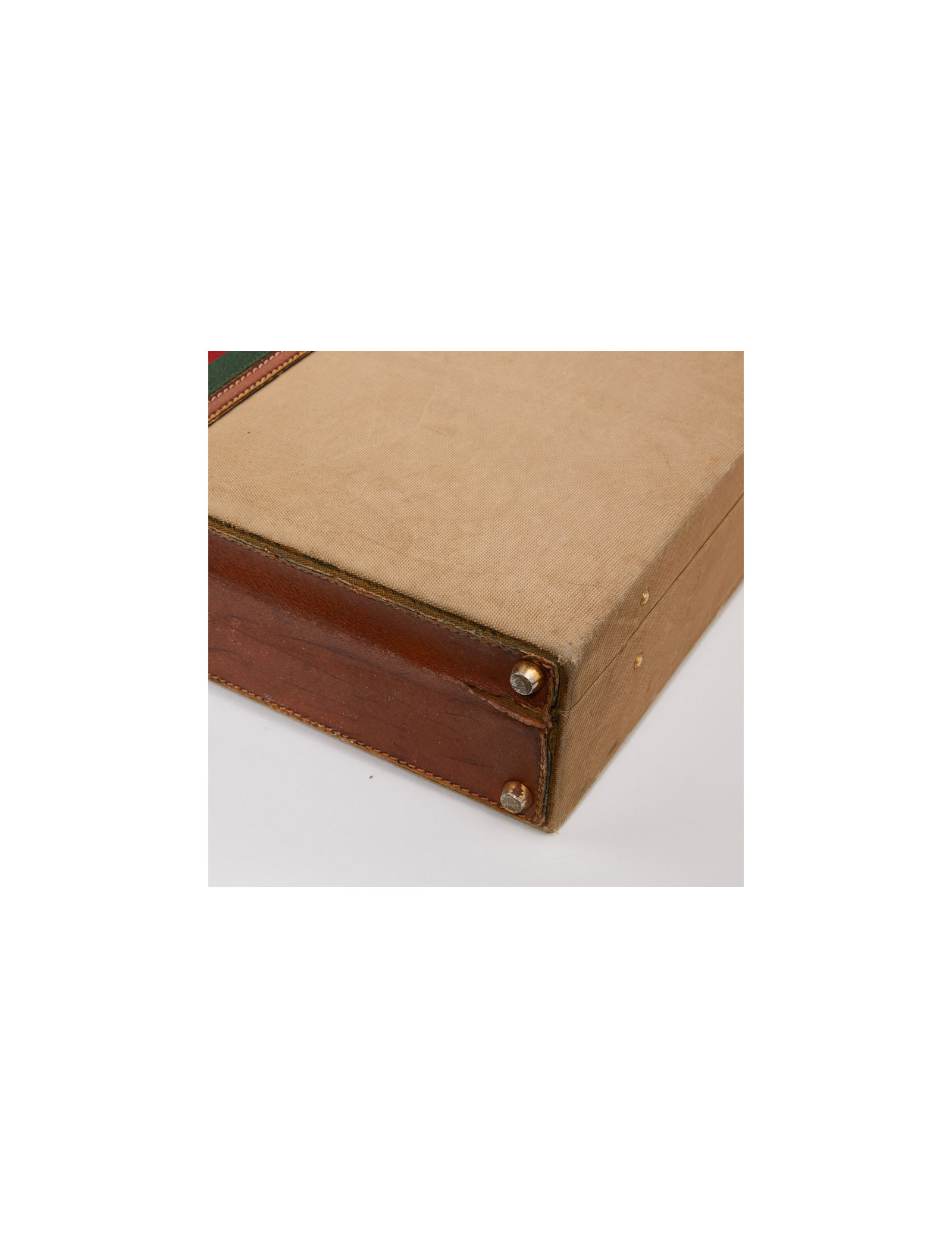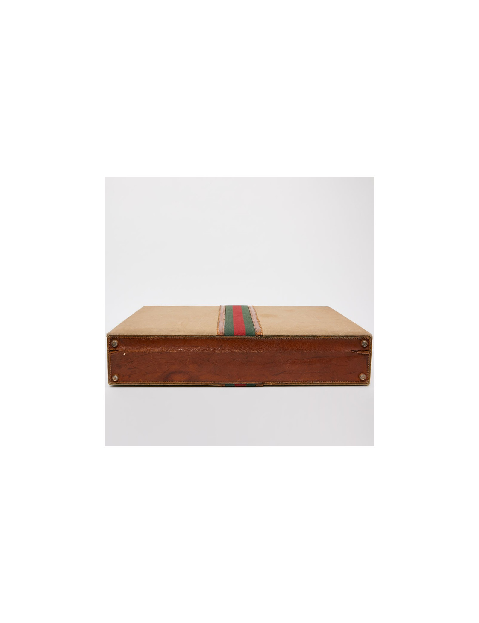 Attaché case GUCCI vintage beige avec bande web - détails :
