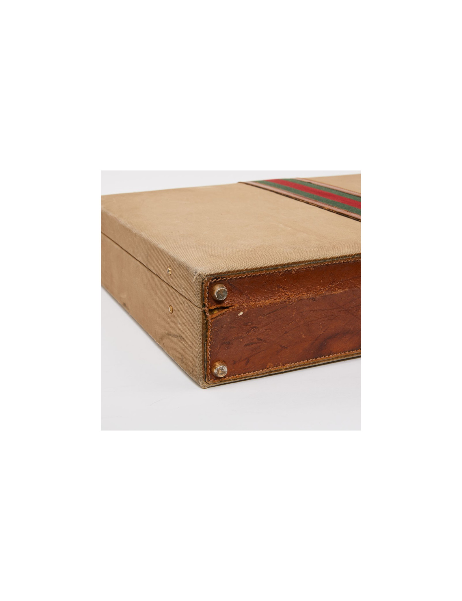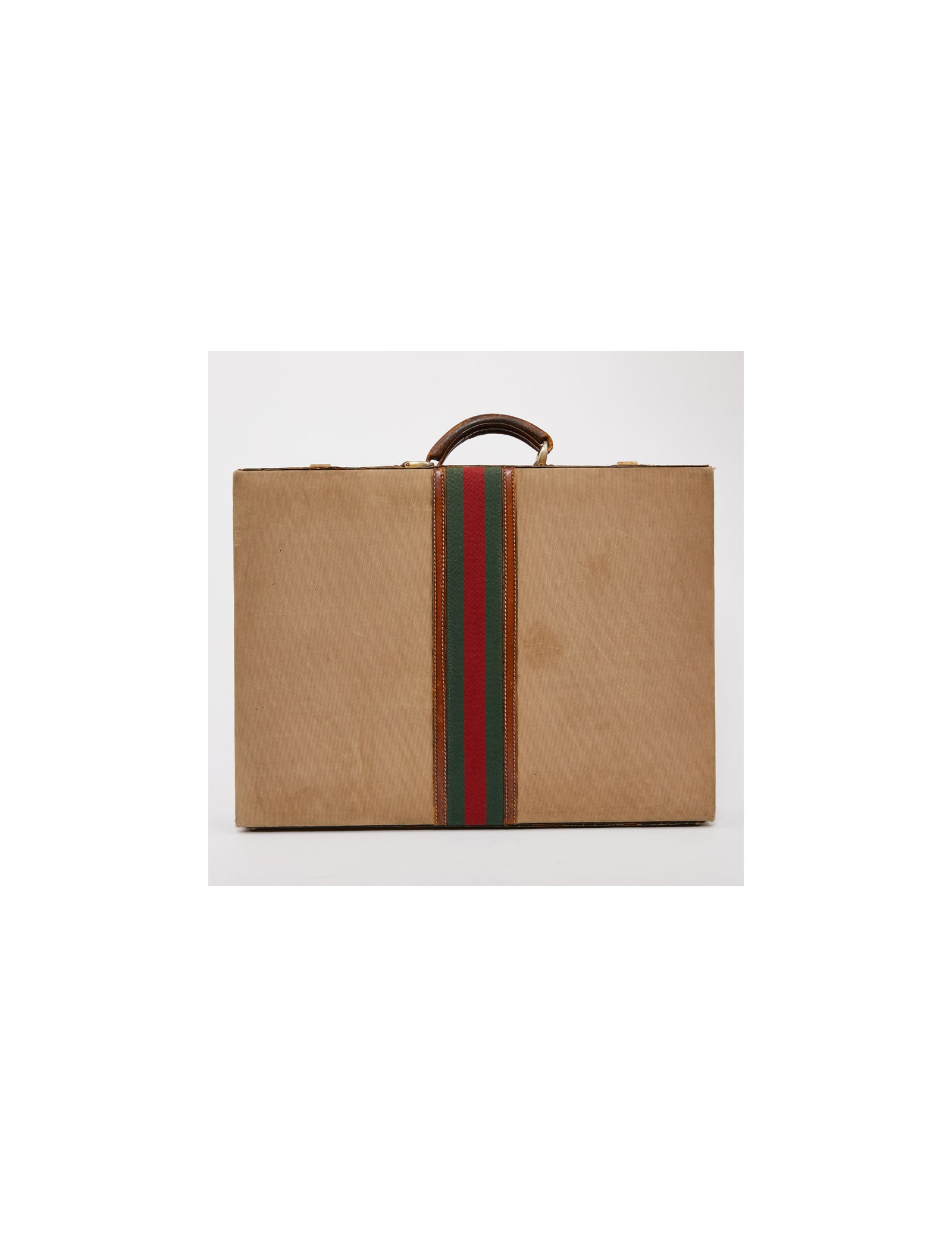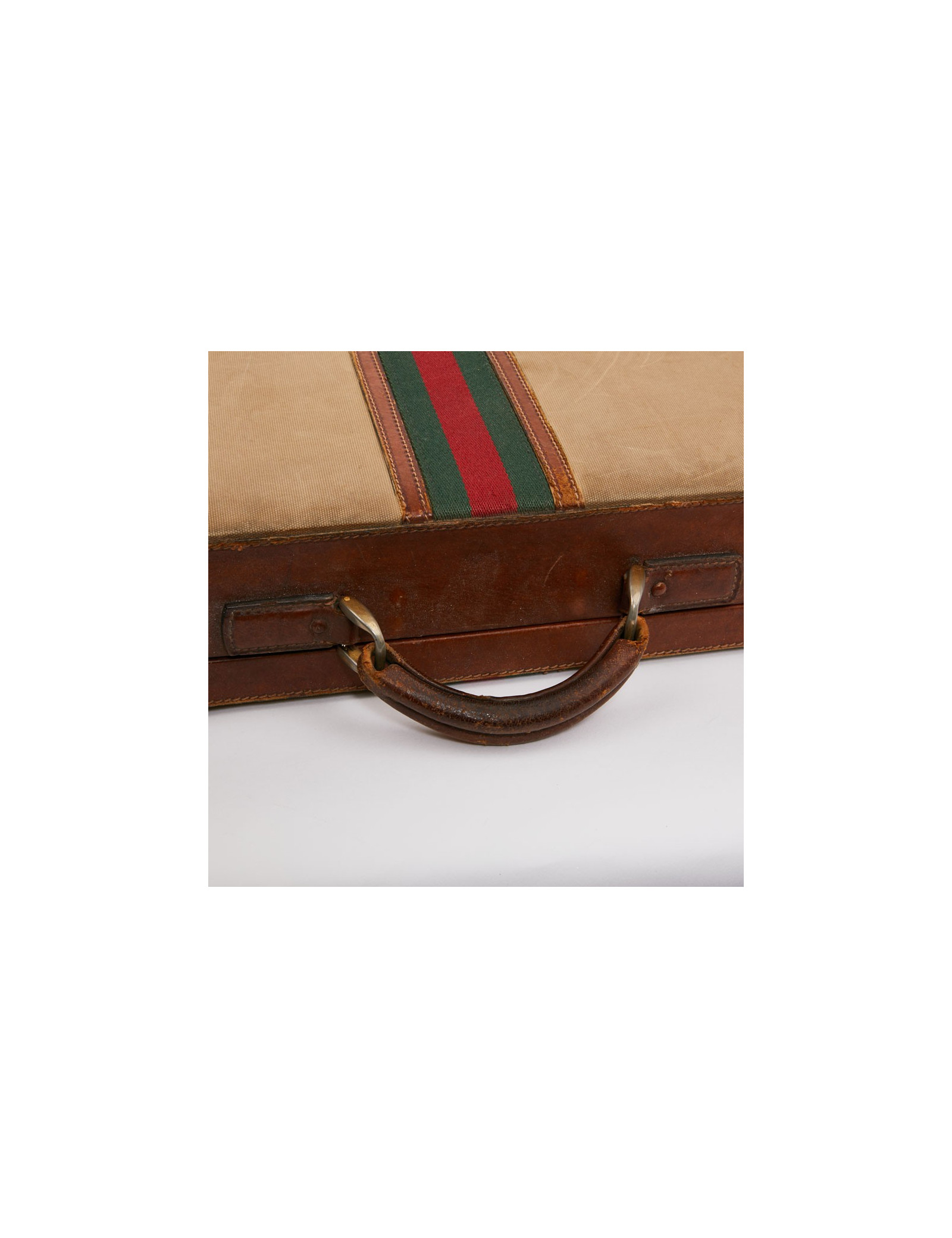 Attaché case GUCCI vintage beige avec bande web - détails :