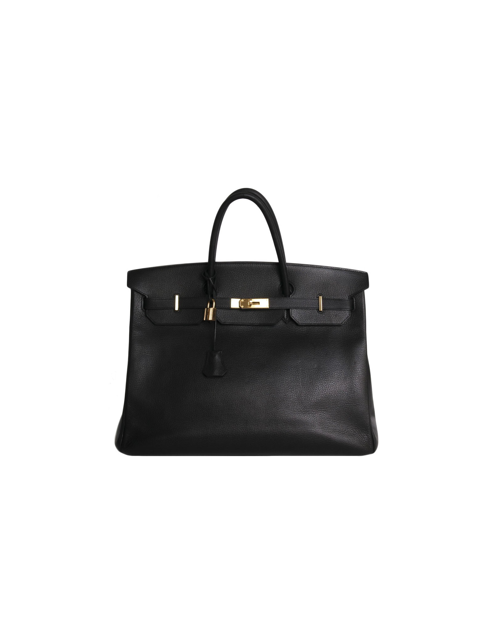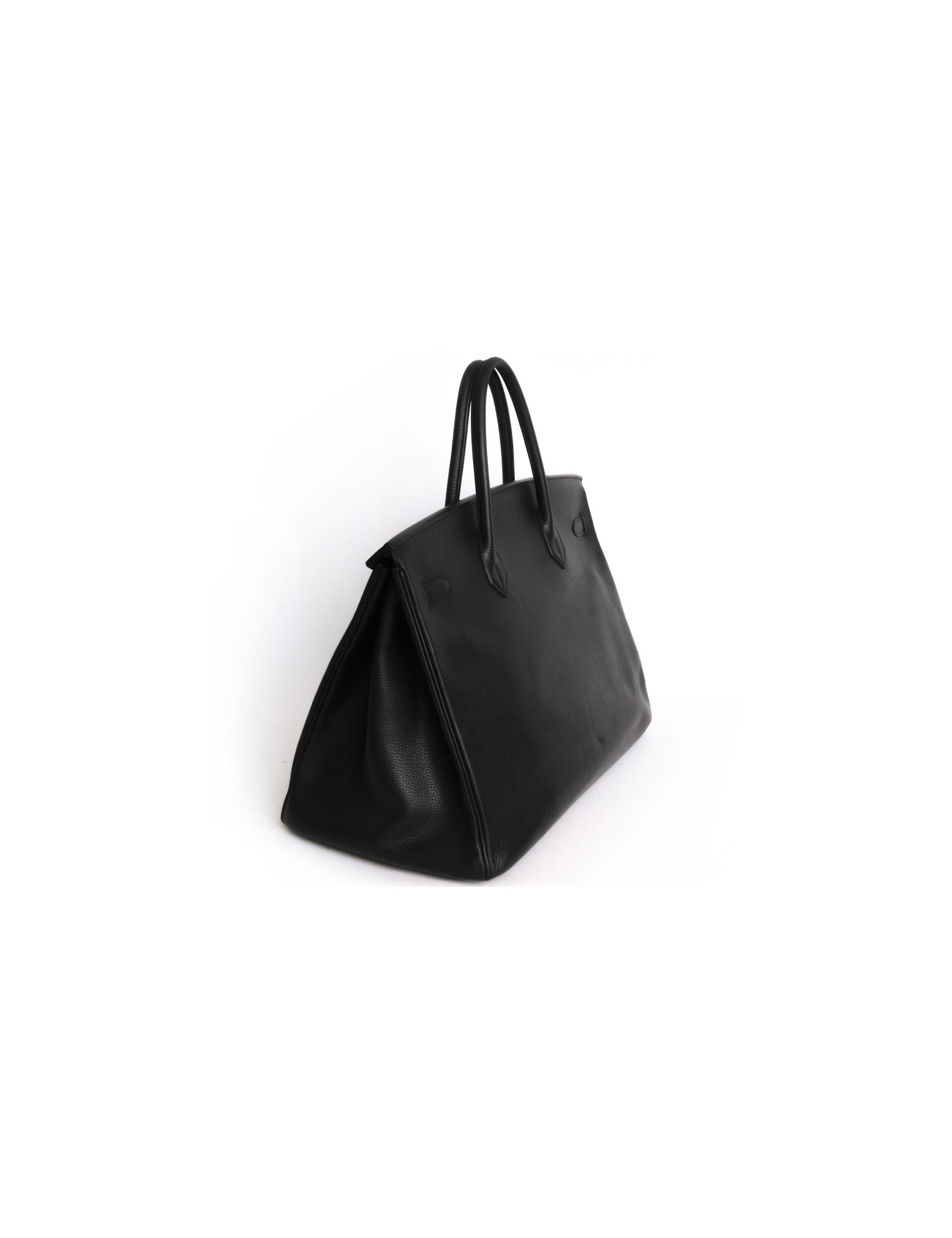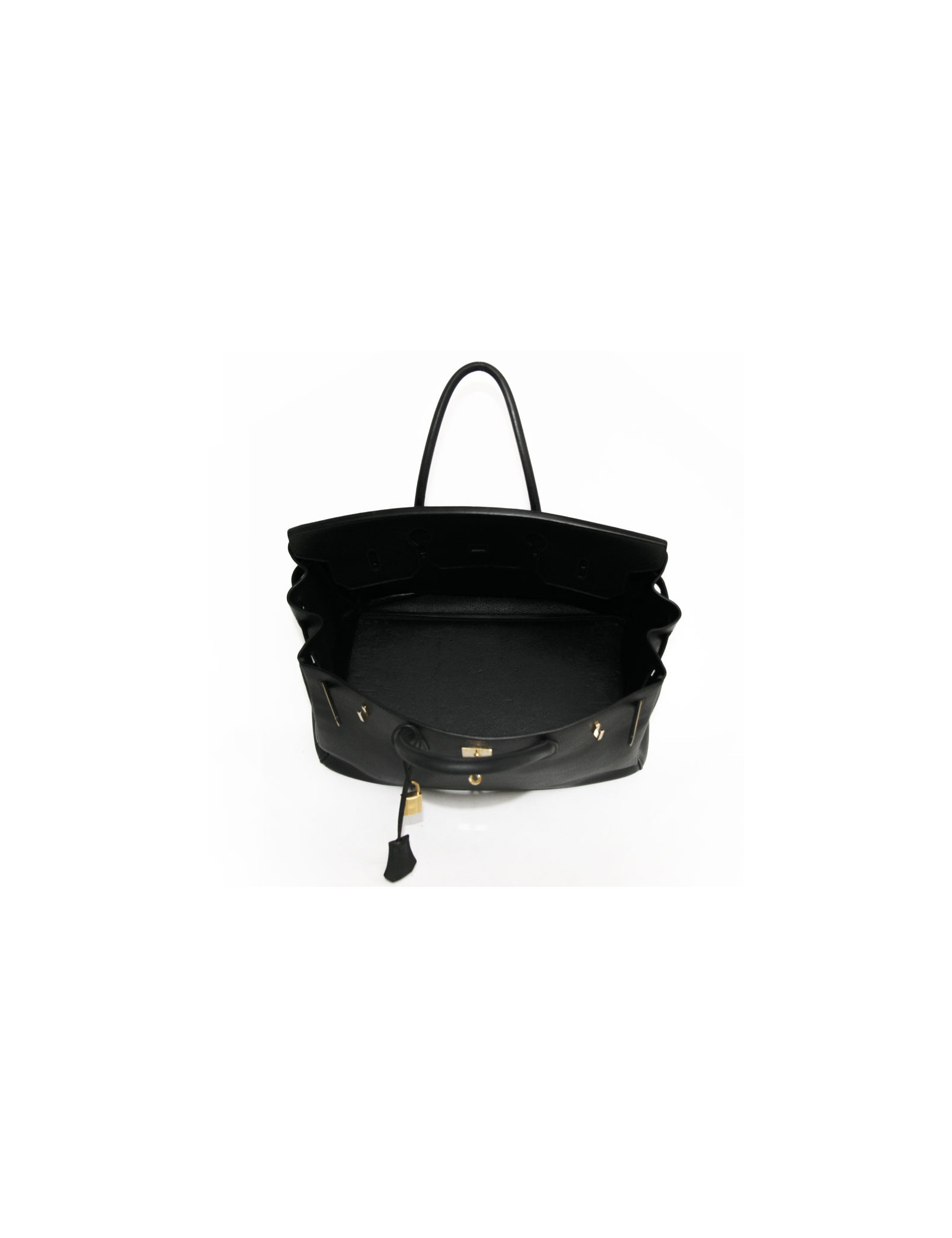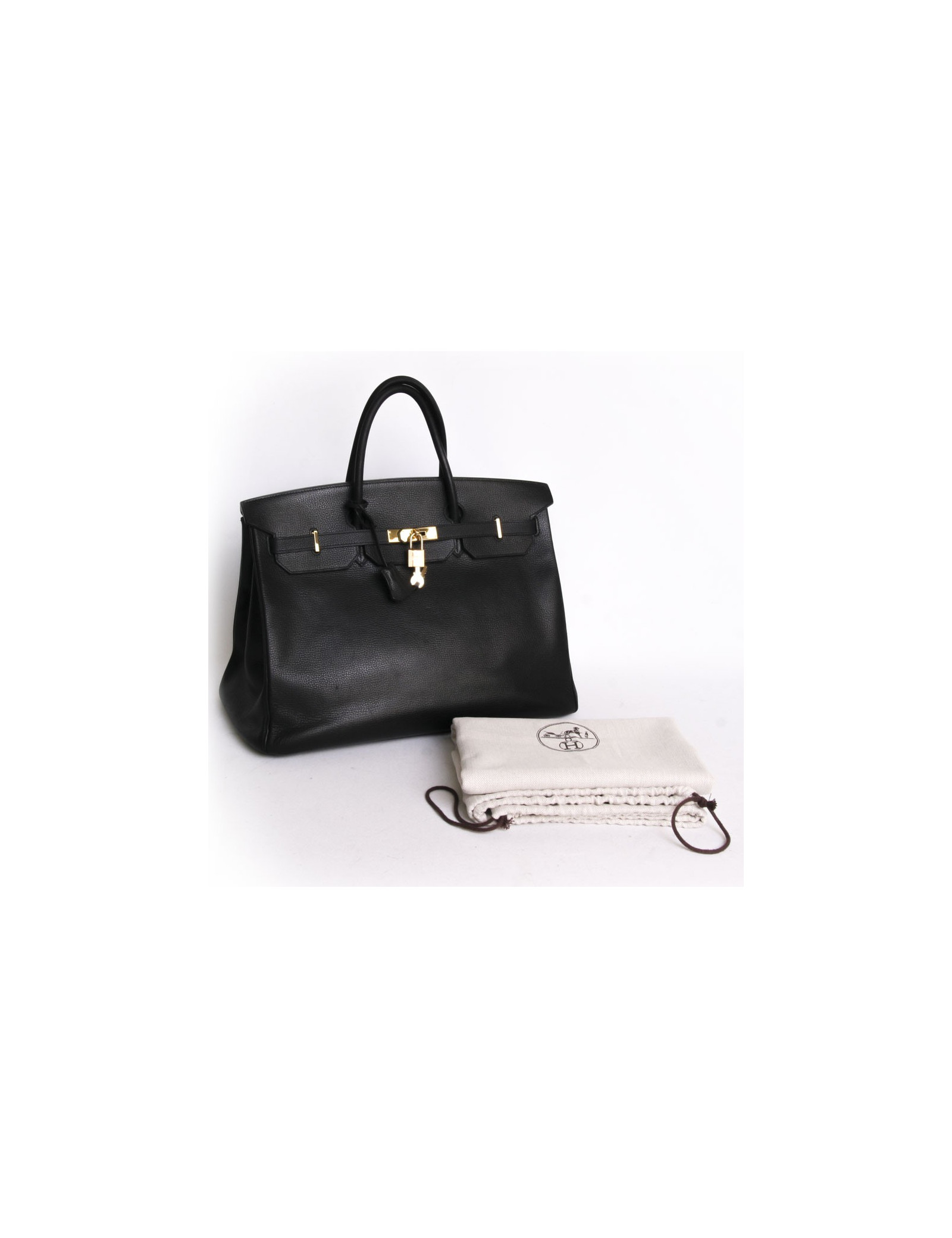 Birkin 40 Hermès, en cuir de veau epsom noir, ce qui le rend plus léger. Toute la bijouterie dorée a été changé (car il y a avait trop de micro rayures).