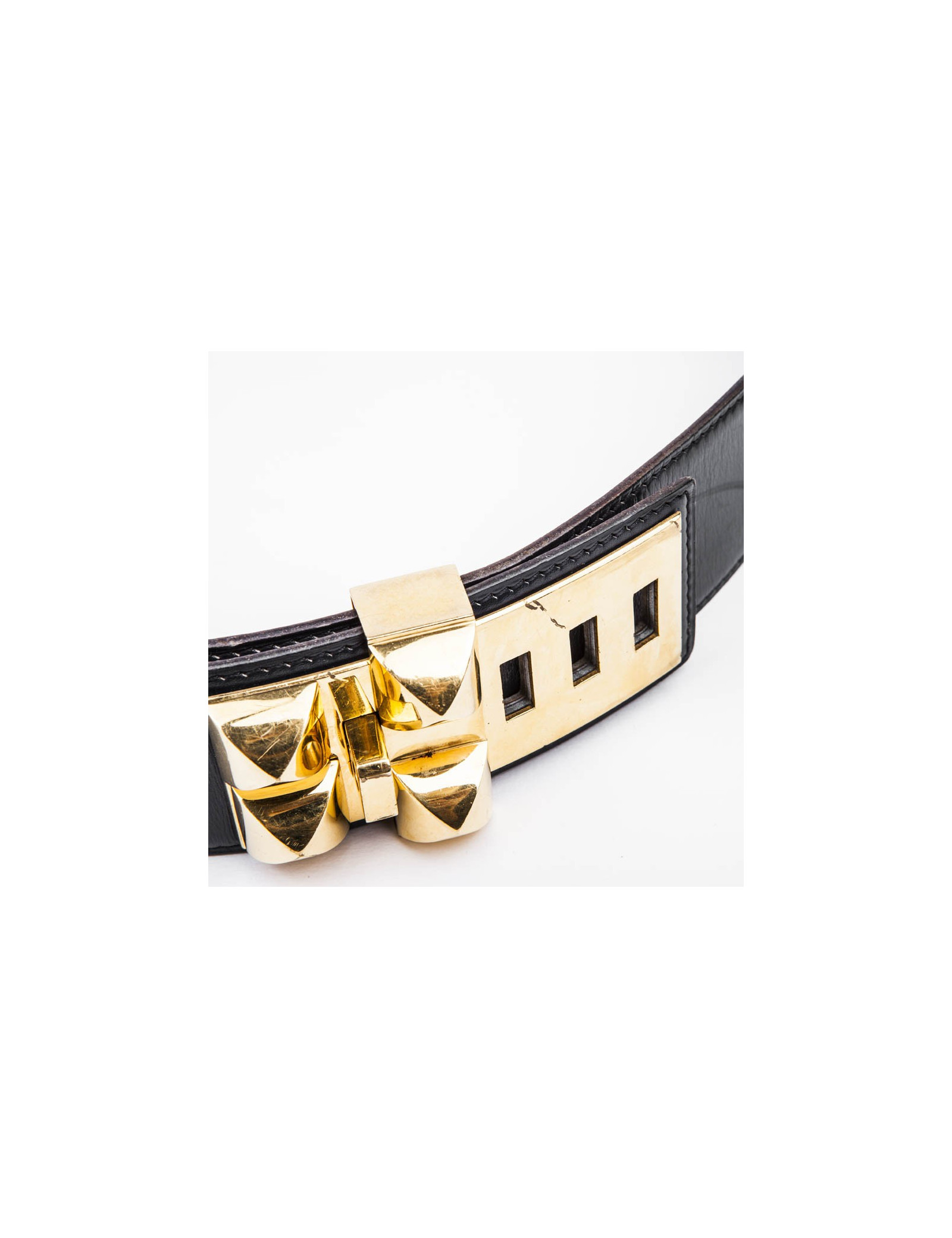 Ceinture t 81/87 HERMES médor cuir box bleu nuit accastillage doré