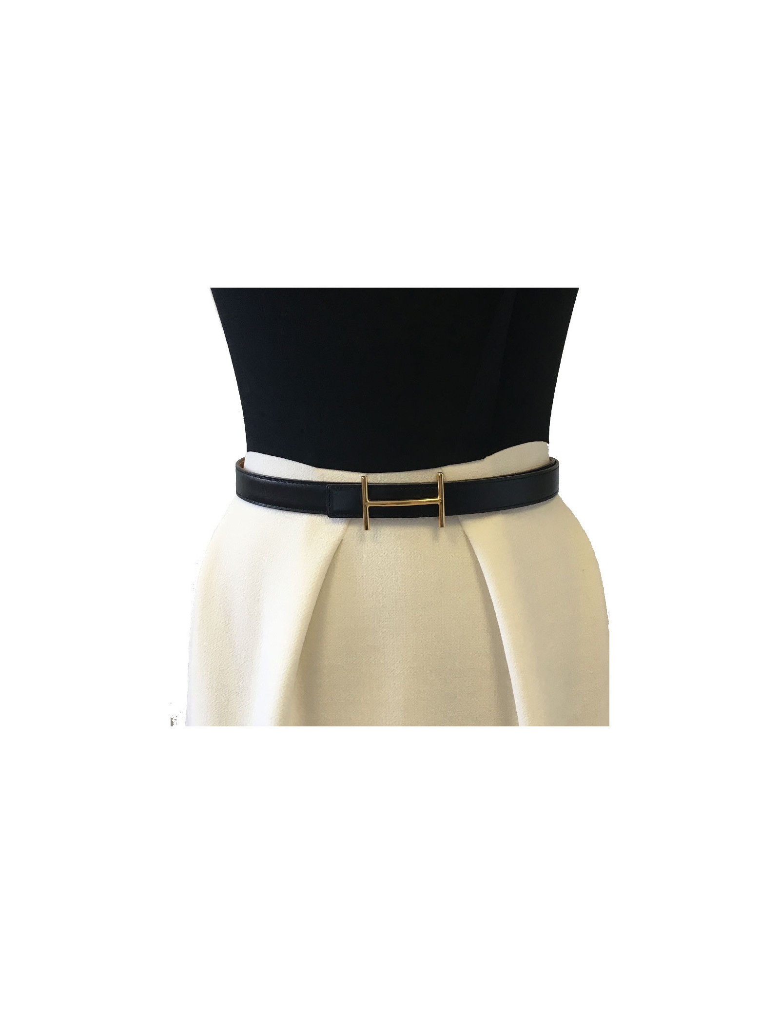 Ceinture HERMES T78 réversible cuir box noir et cuir epsom gold
