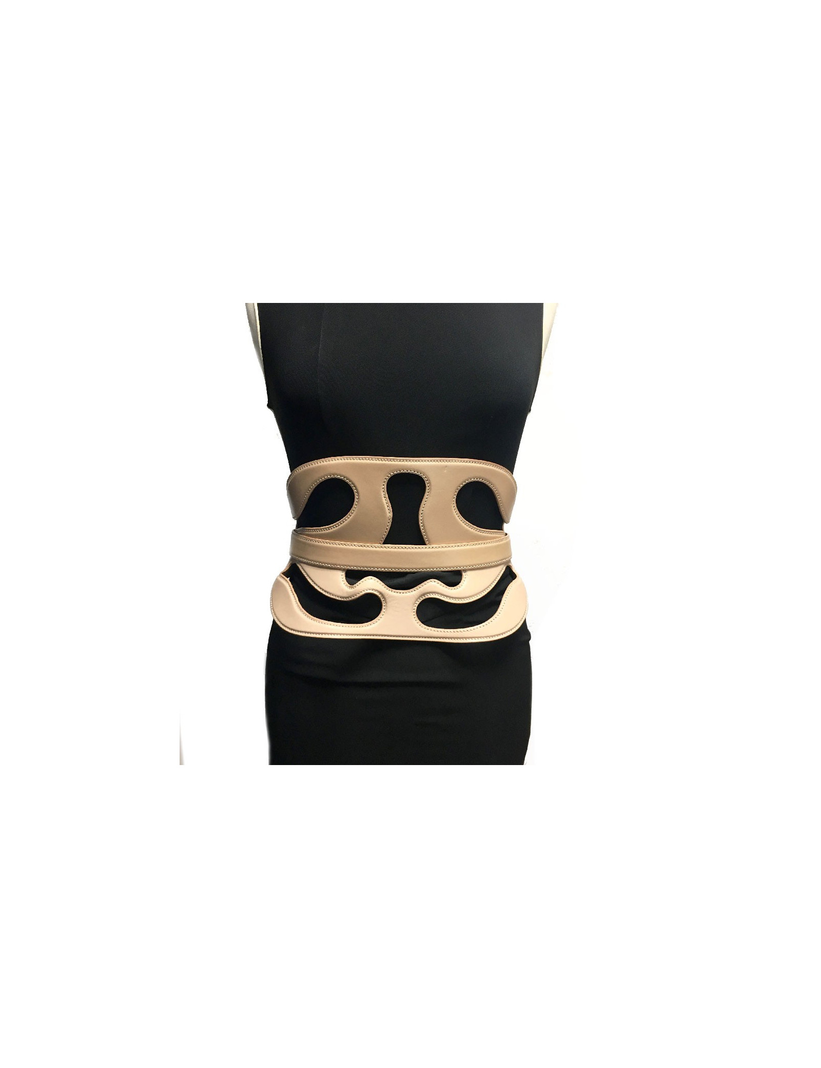 Coup de coeur! Ceinture corset Alexander McQueen, en cuir nude , elle se ferme par l’arrière.