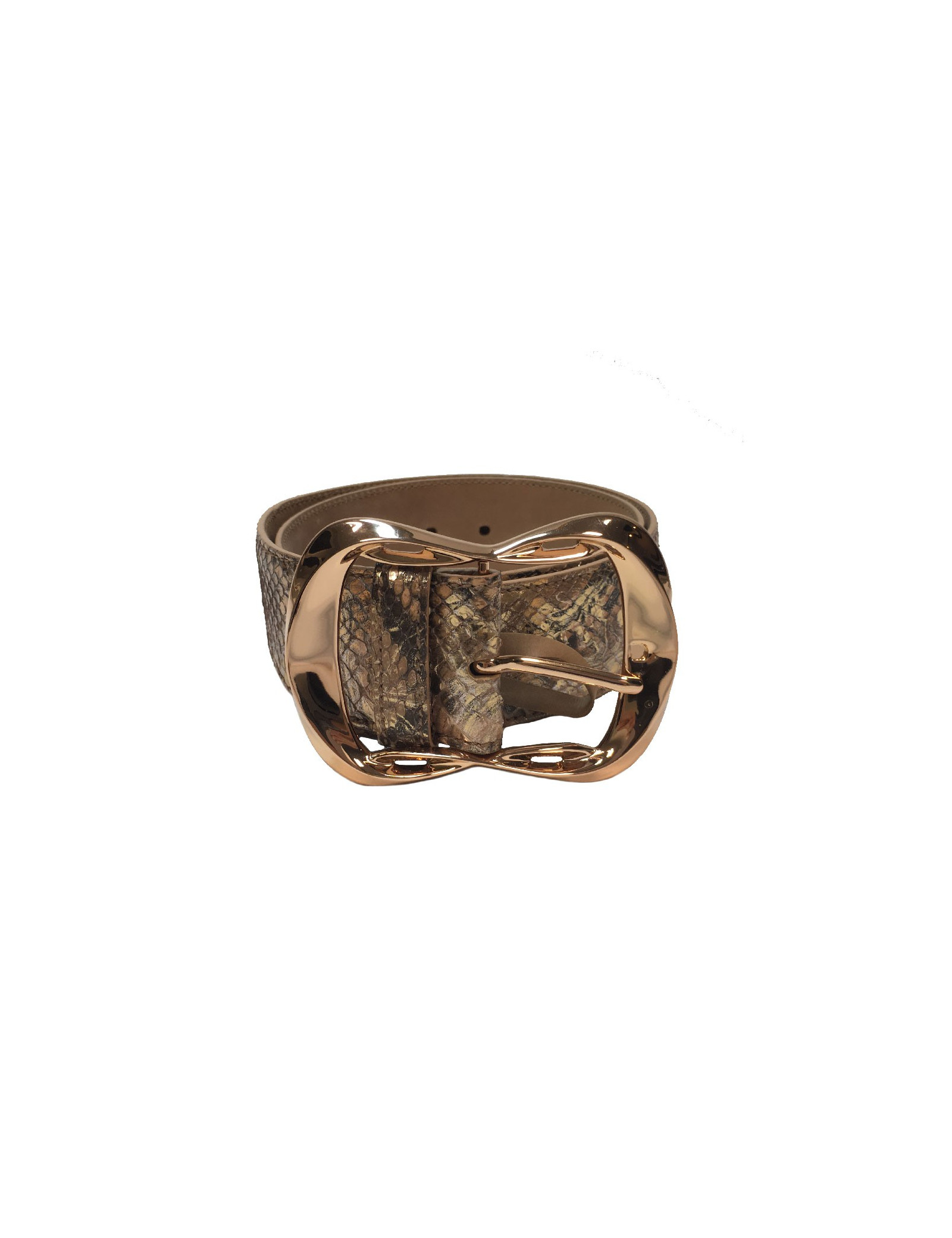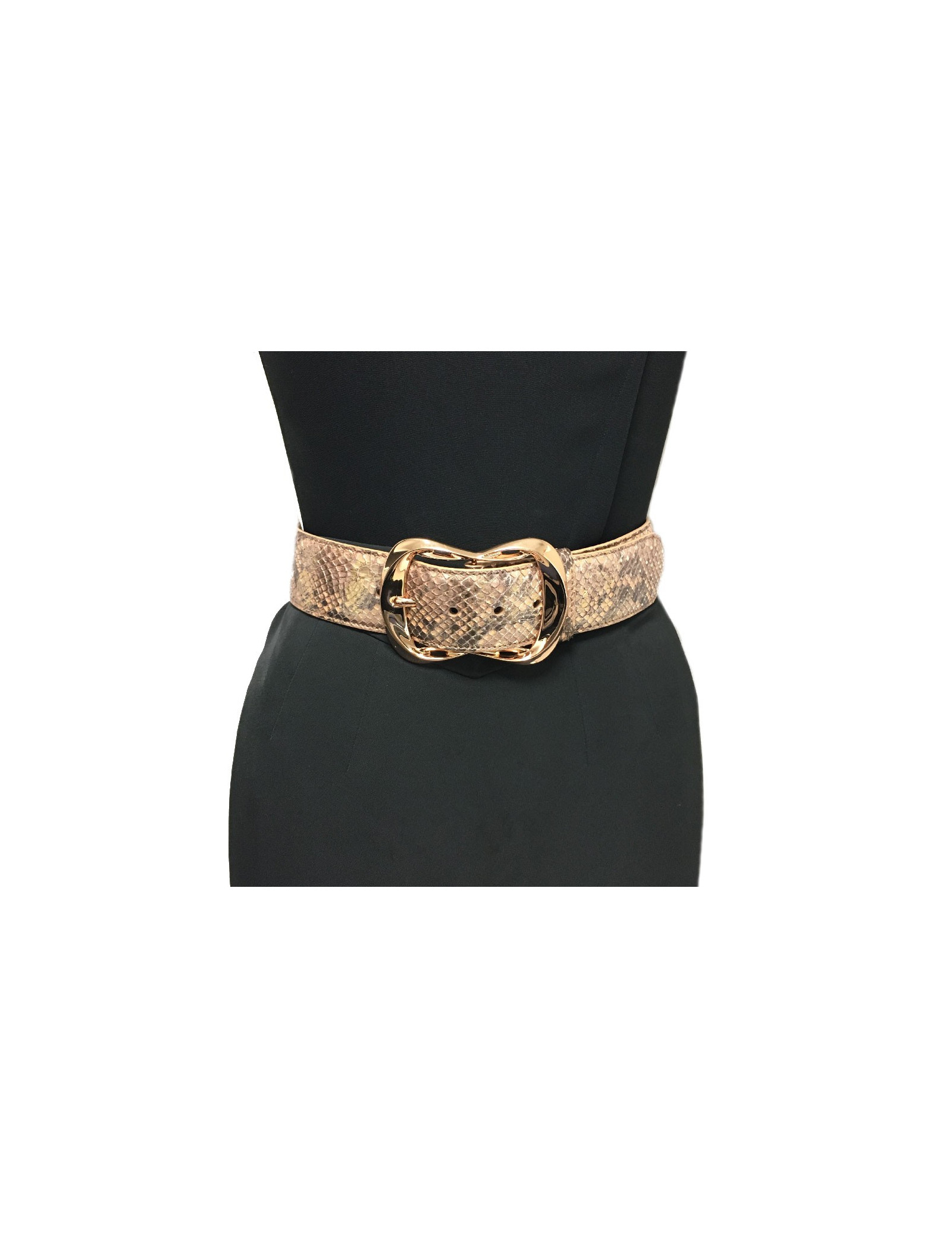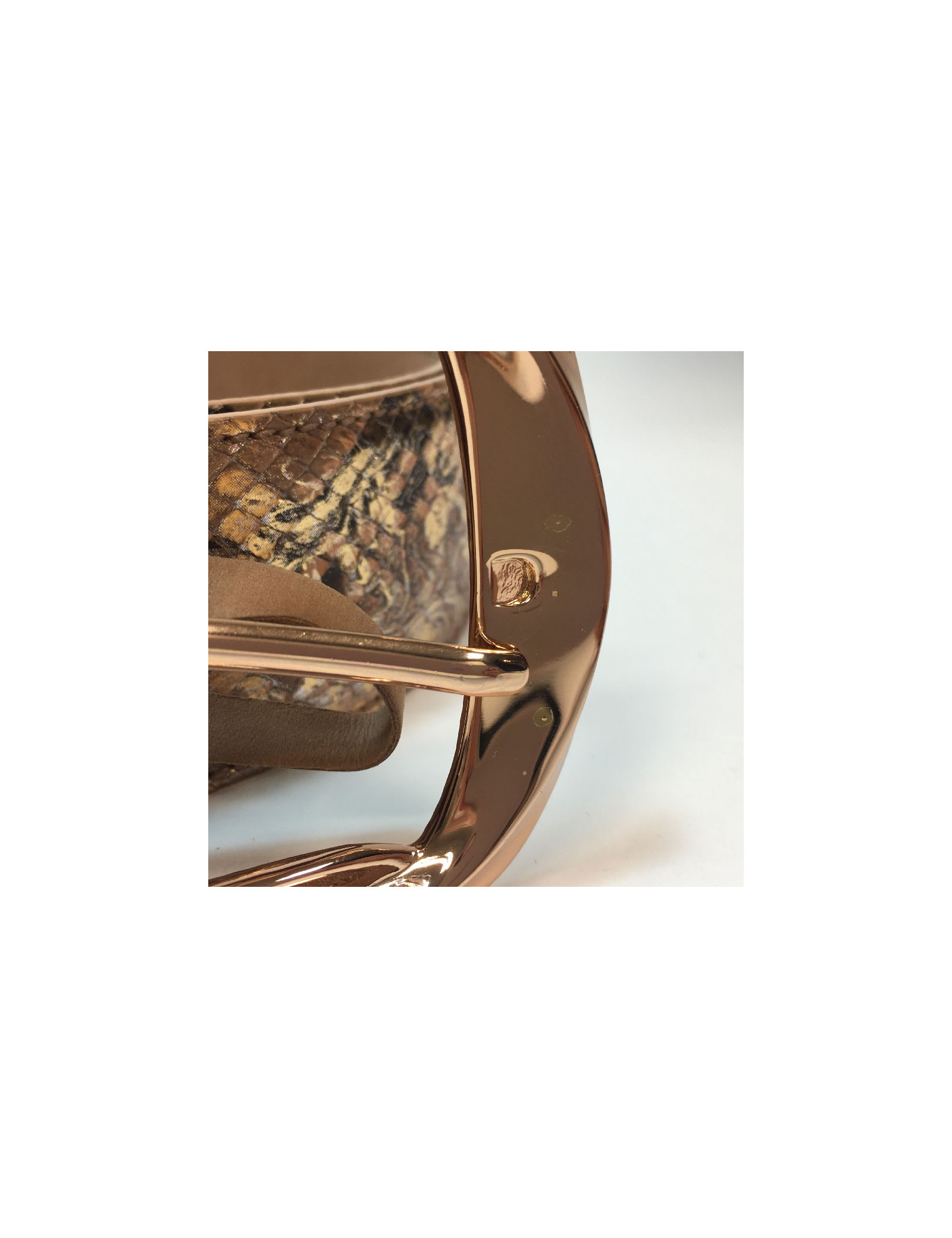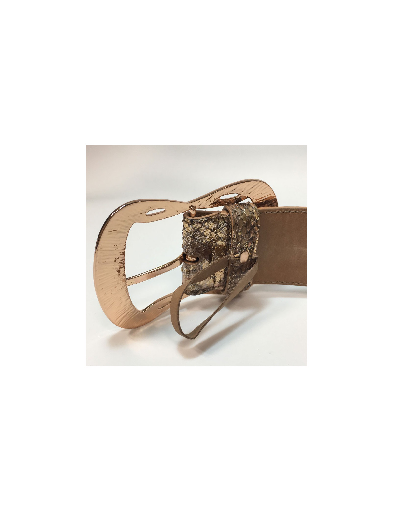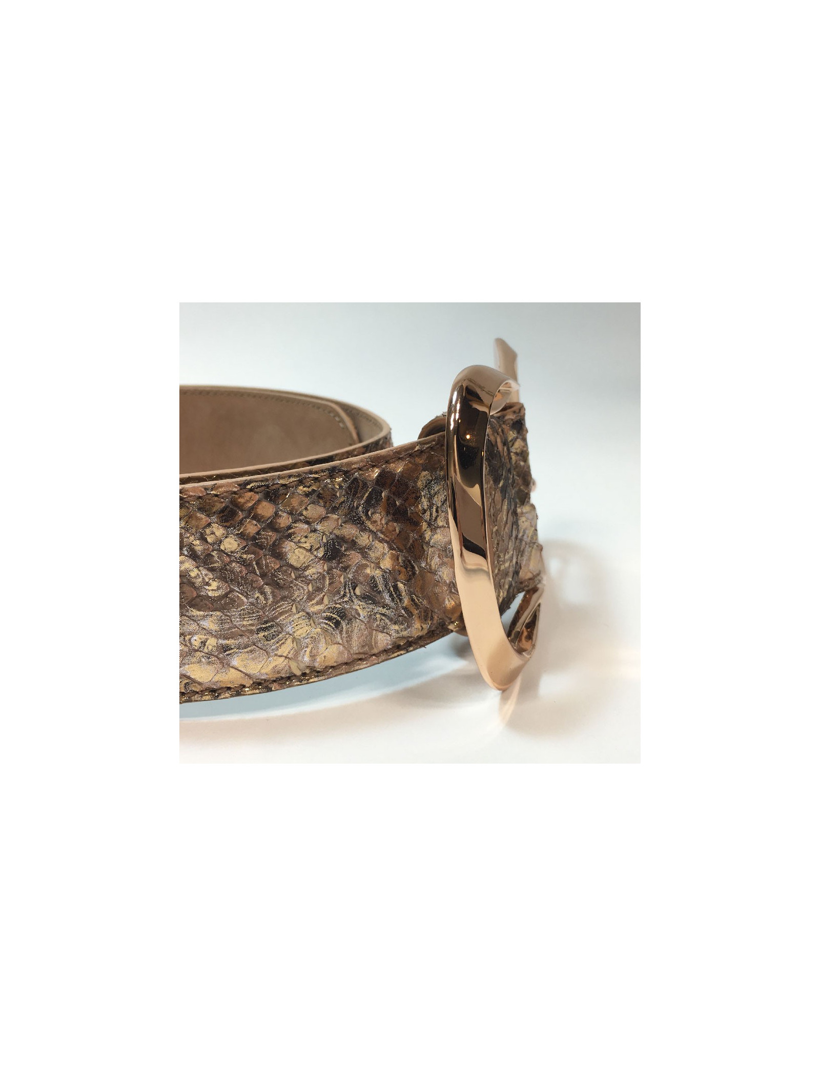 Très belle ceinture en python rose irisé. Boucle en métal couleur or rose. Taille 75.